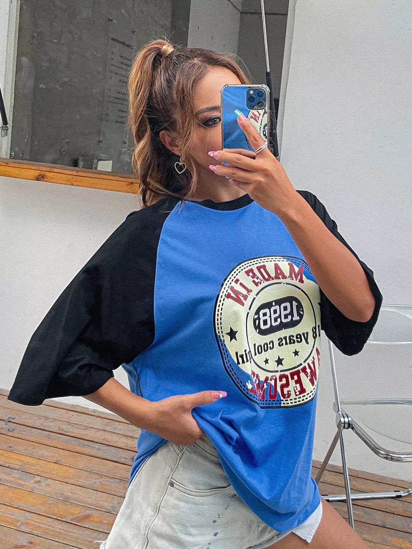Letter Graphic Raglan Sleeve Tee