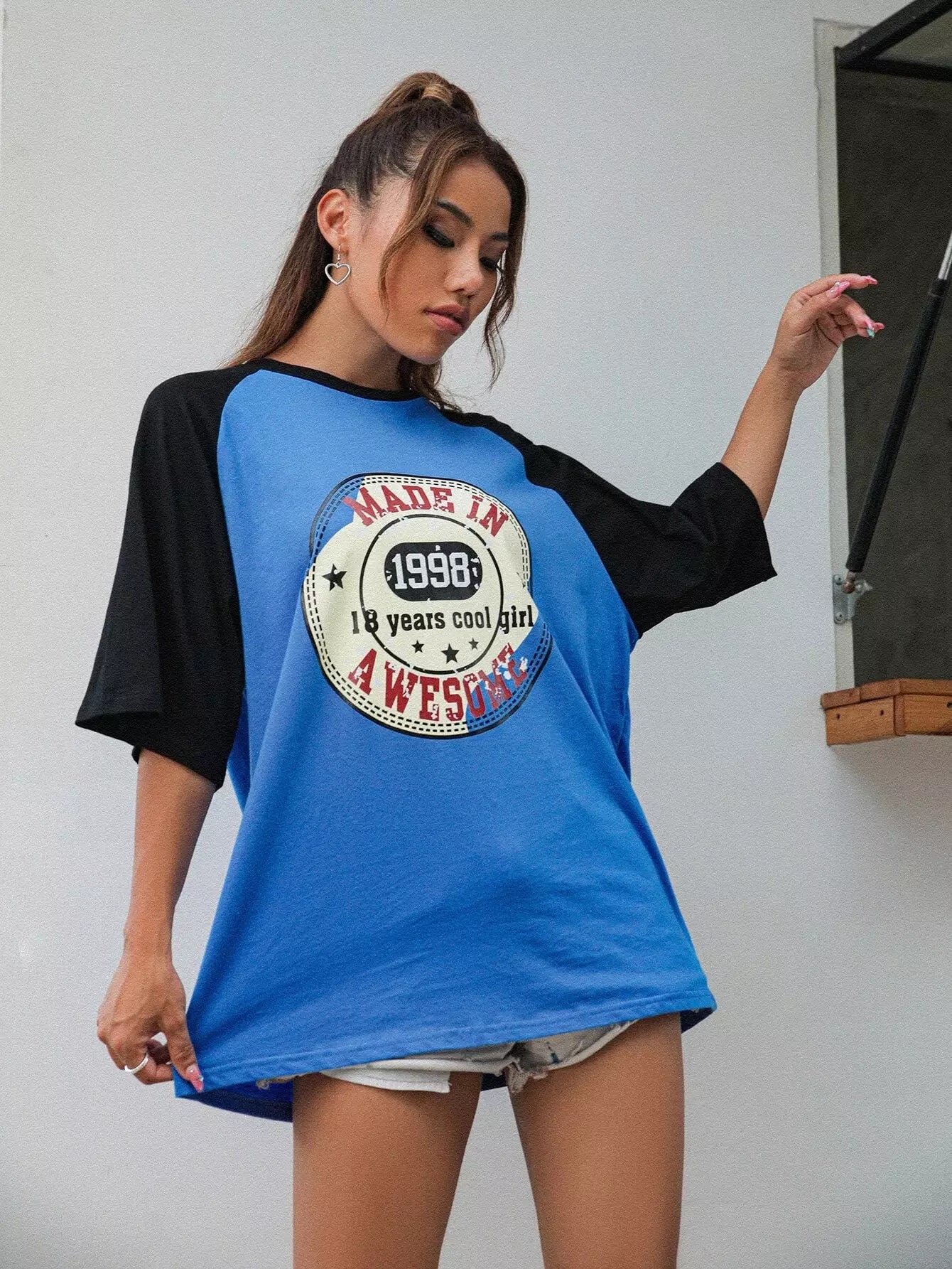 Women - Letter Graphic Raglan Sleeve Tee