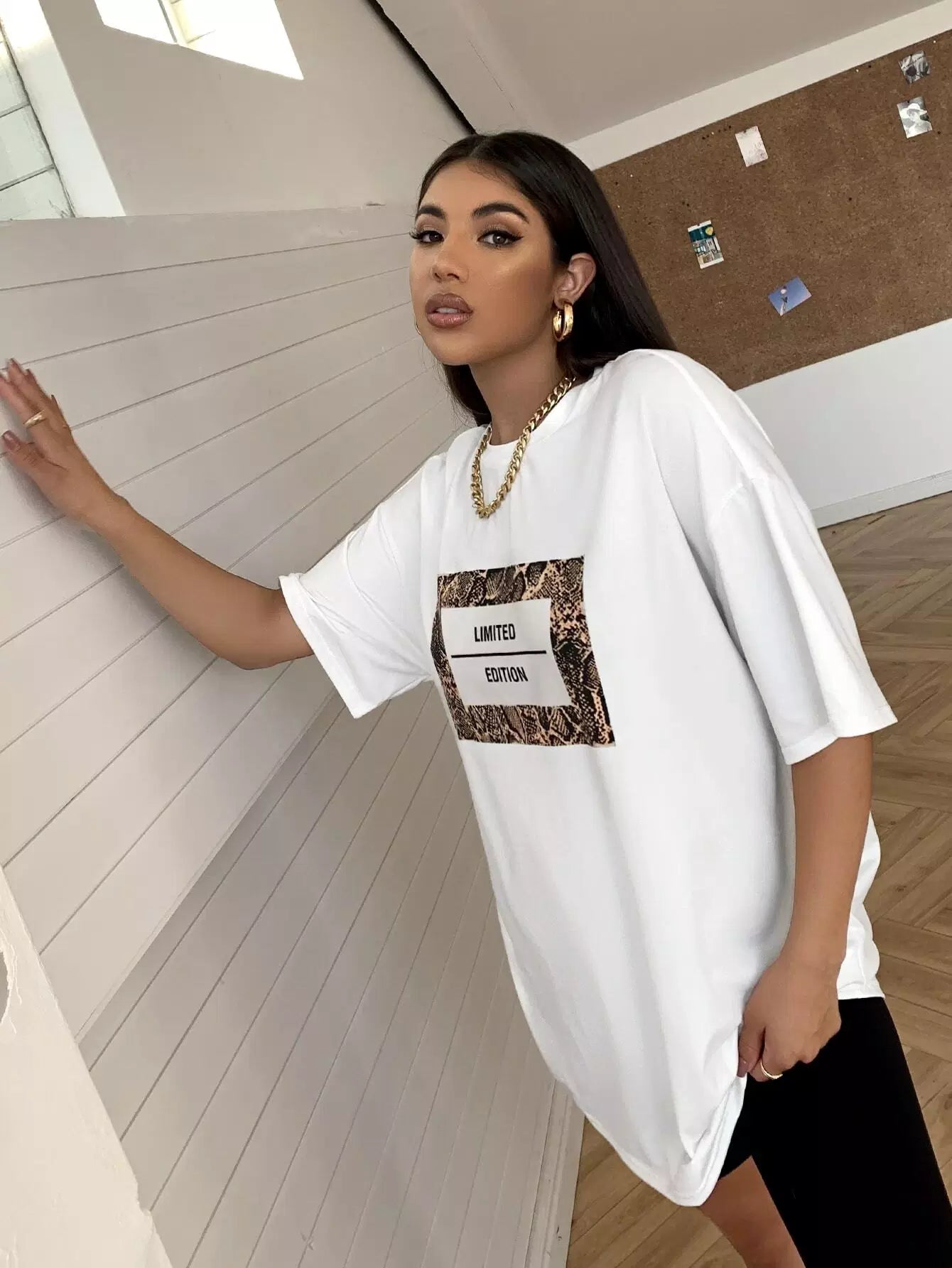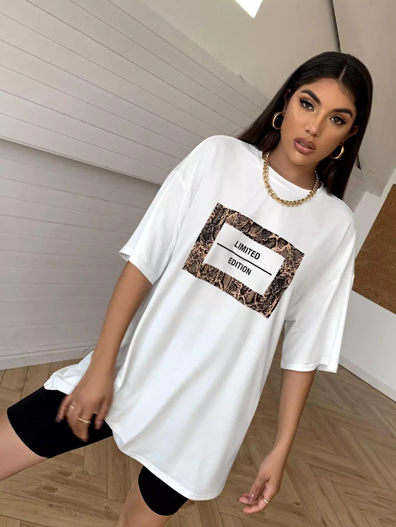 Letter & Snakeskin Graphic Drop Shoulder Longline Tee
