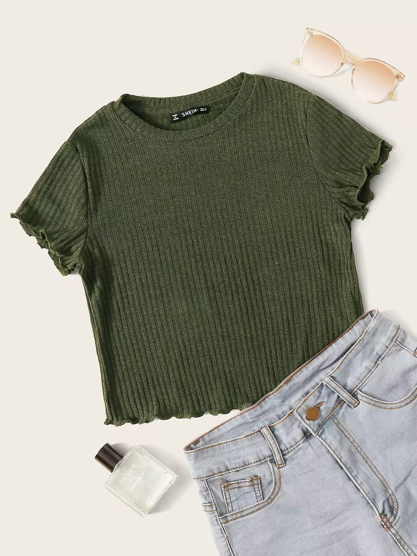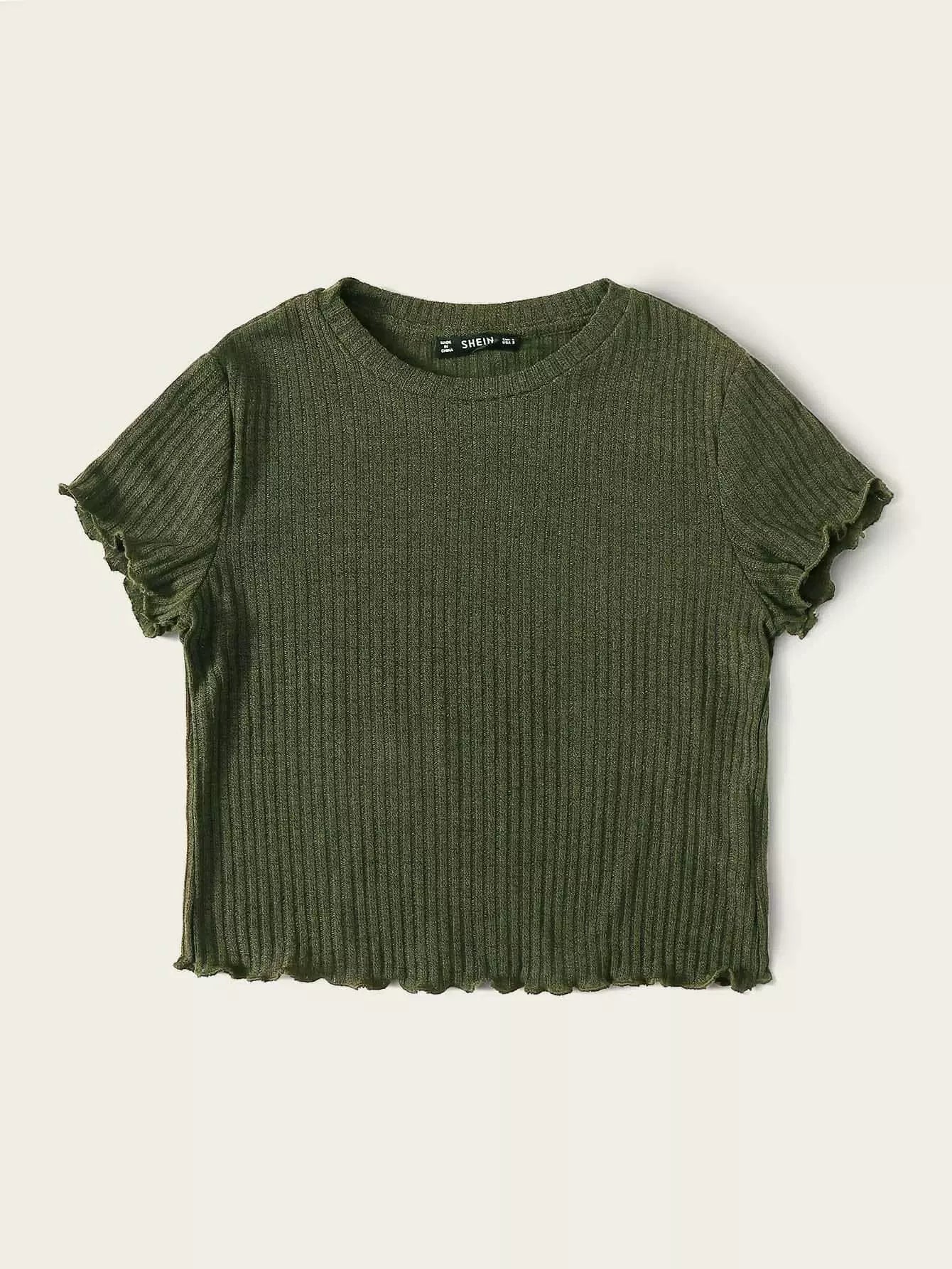 Lettuce Edge Rib-knit Crop Tee