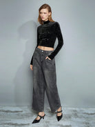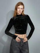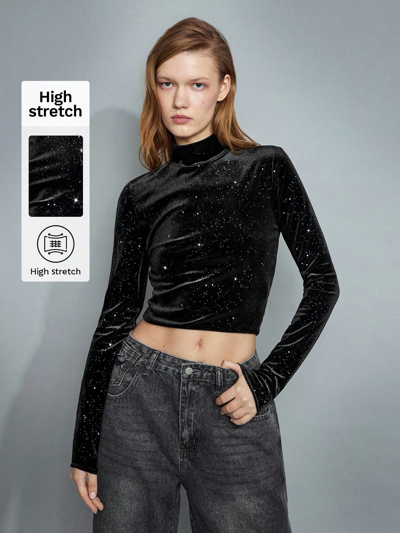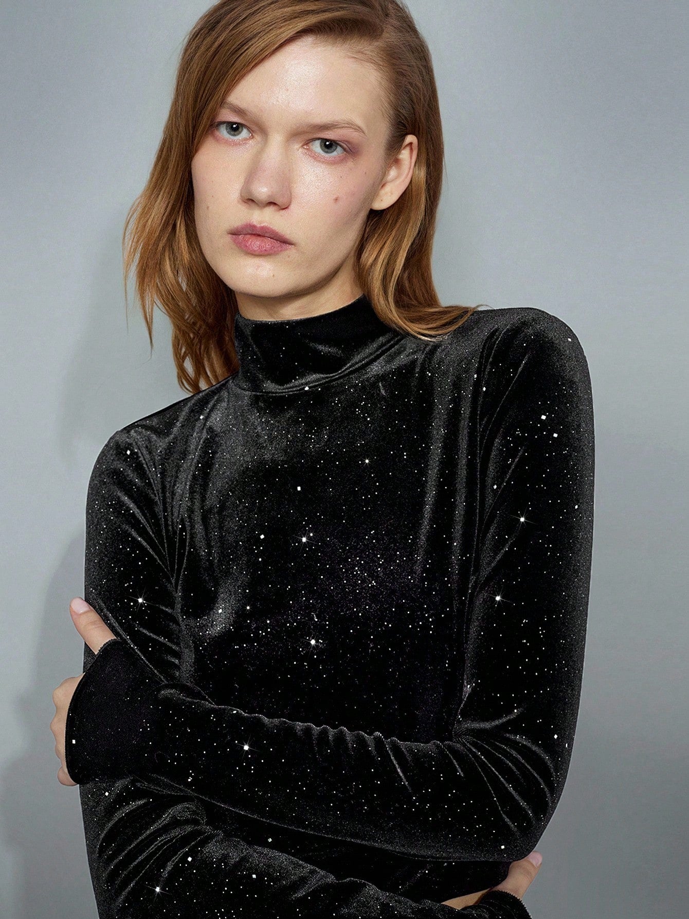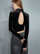 Maija Women's Backless High Neck Sequin Long Sleeve Blouse, Urban Chic Versatile For New Year Party Valentines