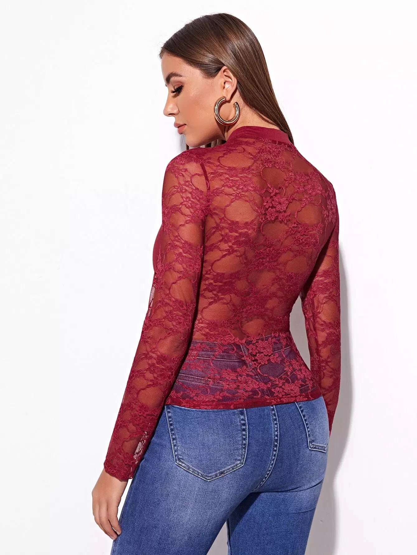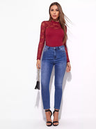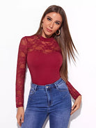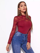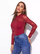 Mock-neck Lace Yoke Fitted Tee
