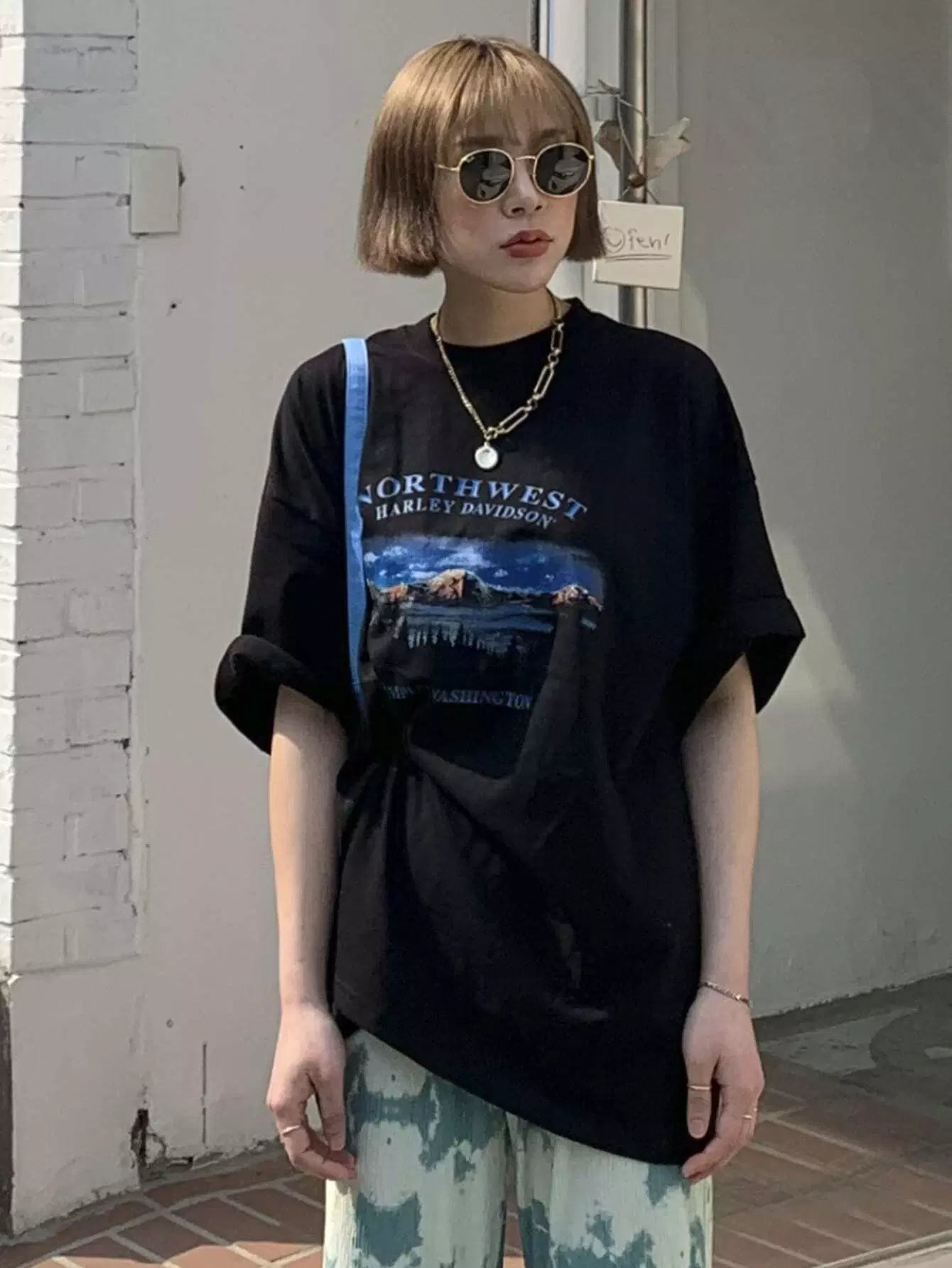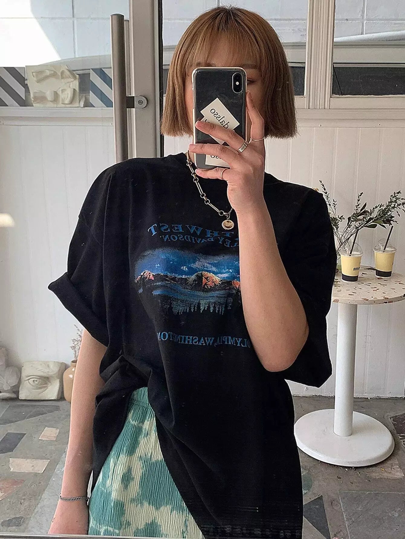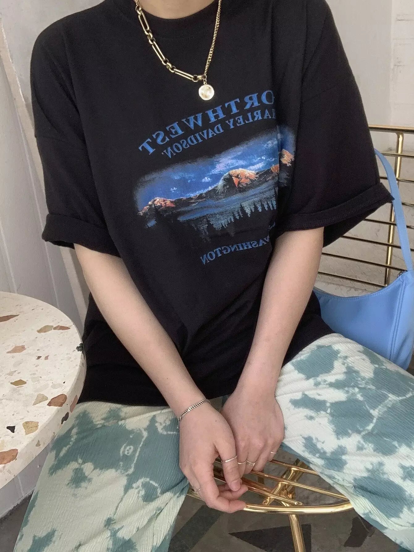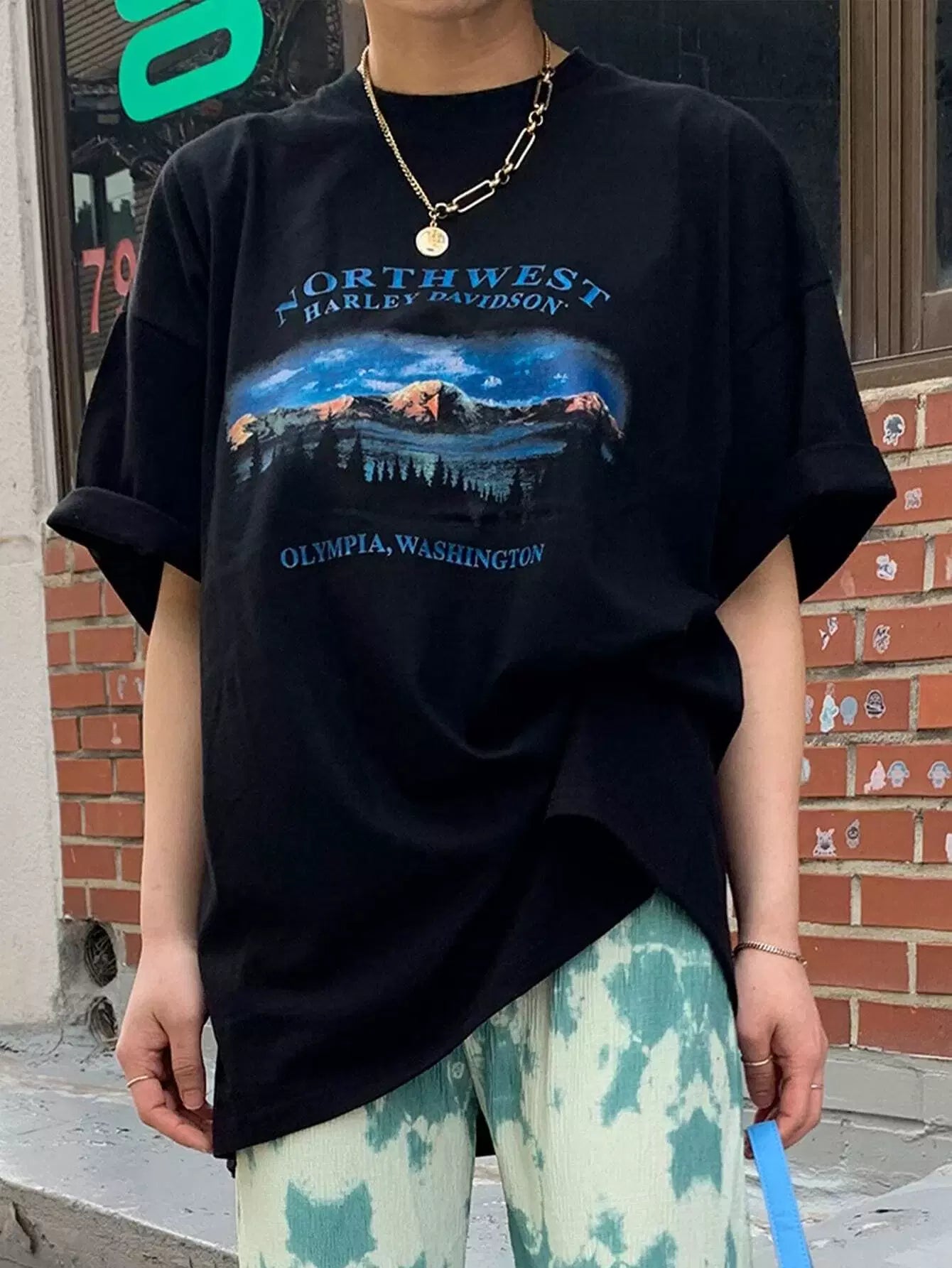 Mountain & Letter Graphic Oversized Tee