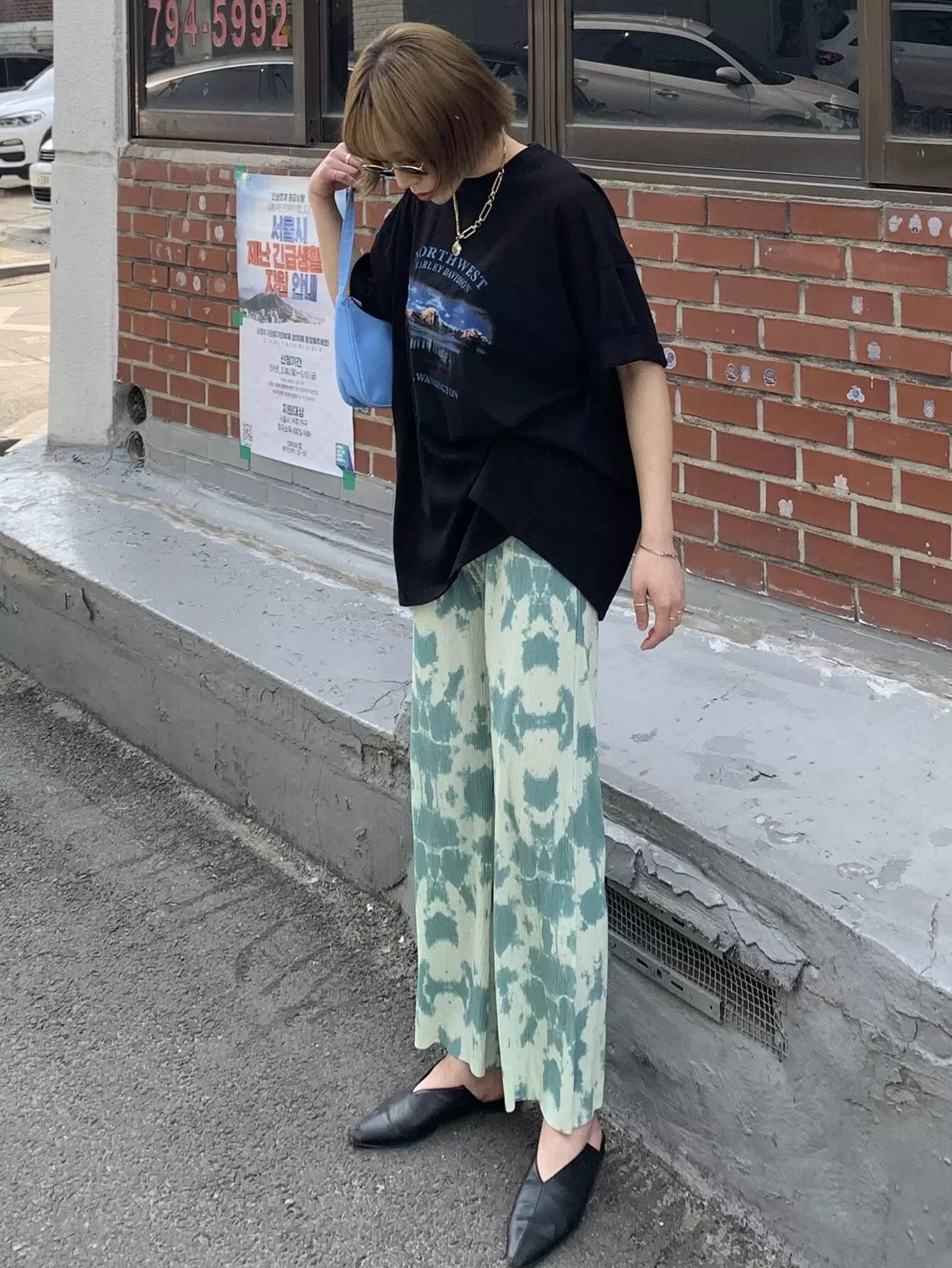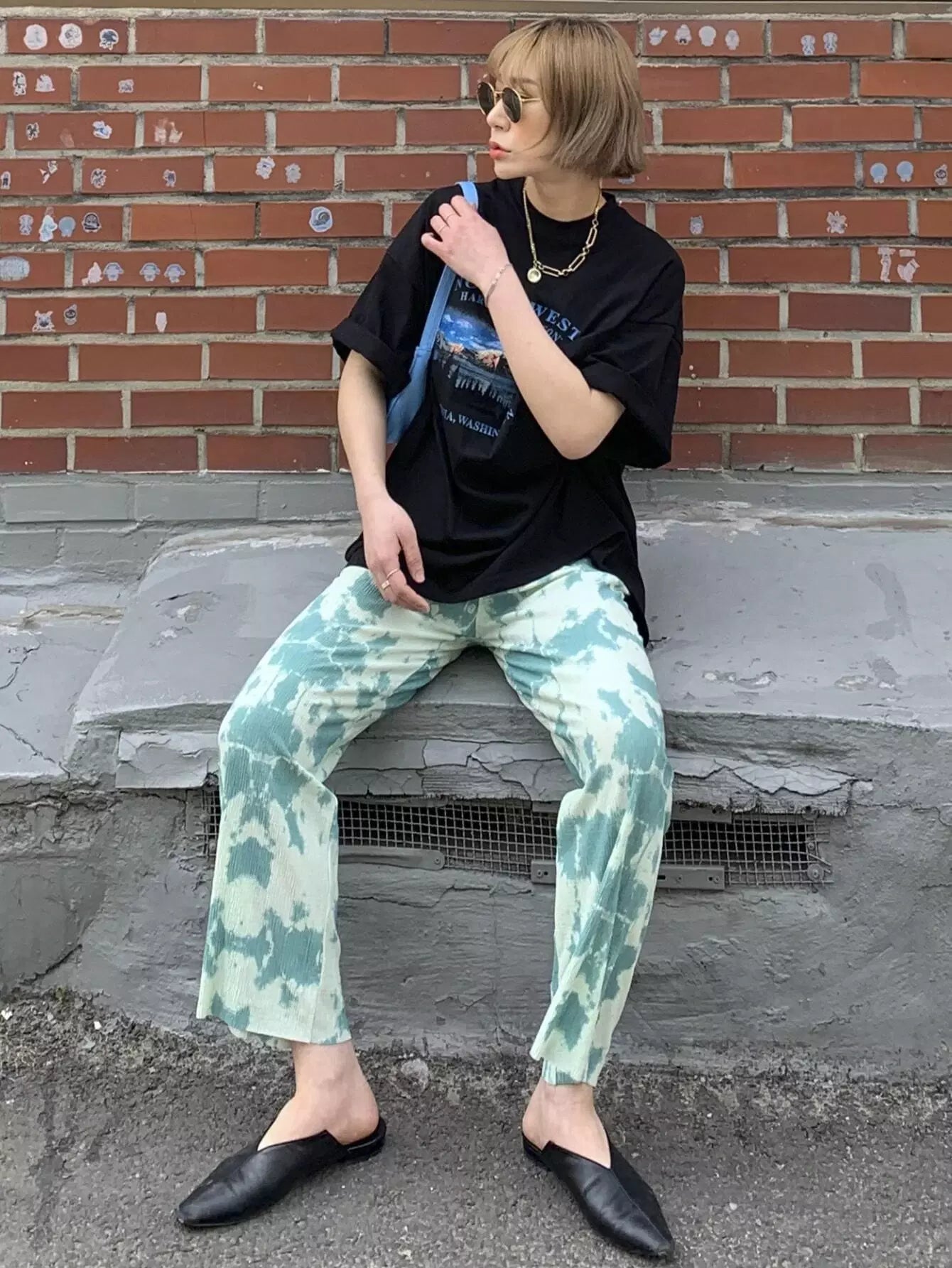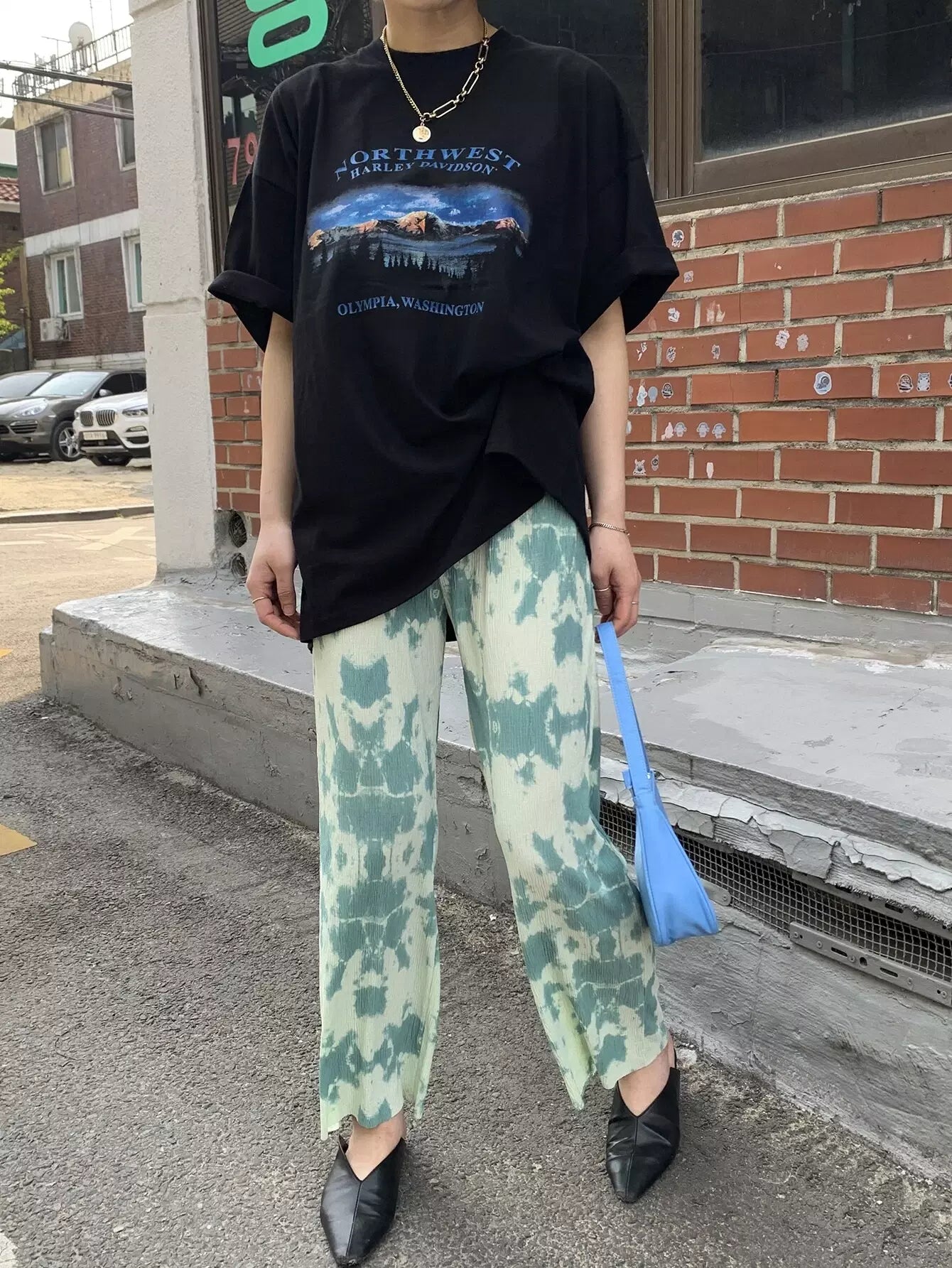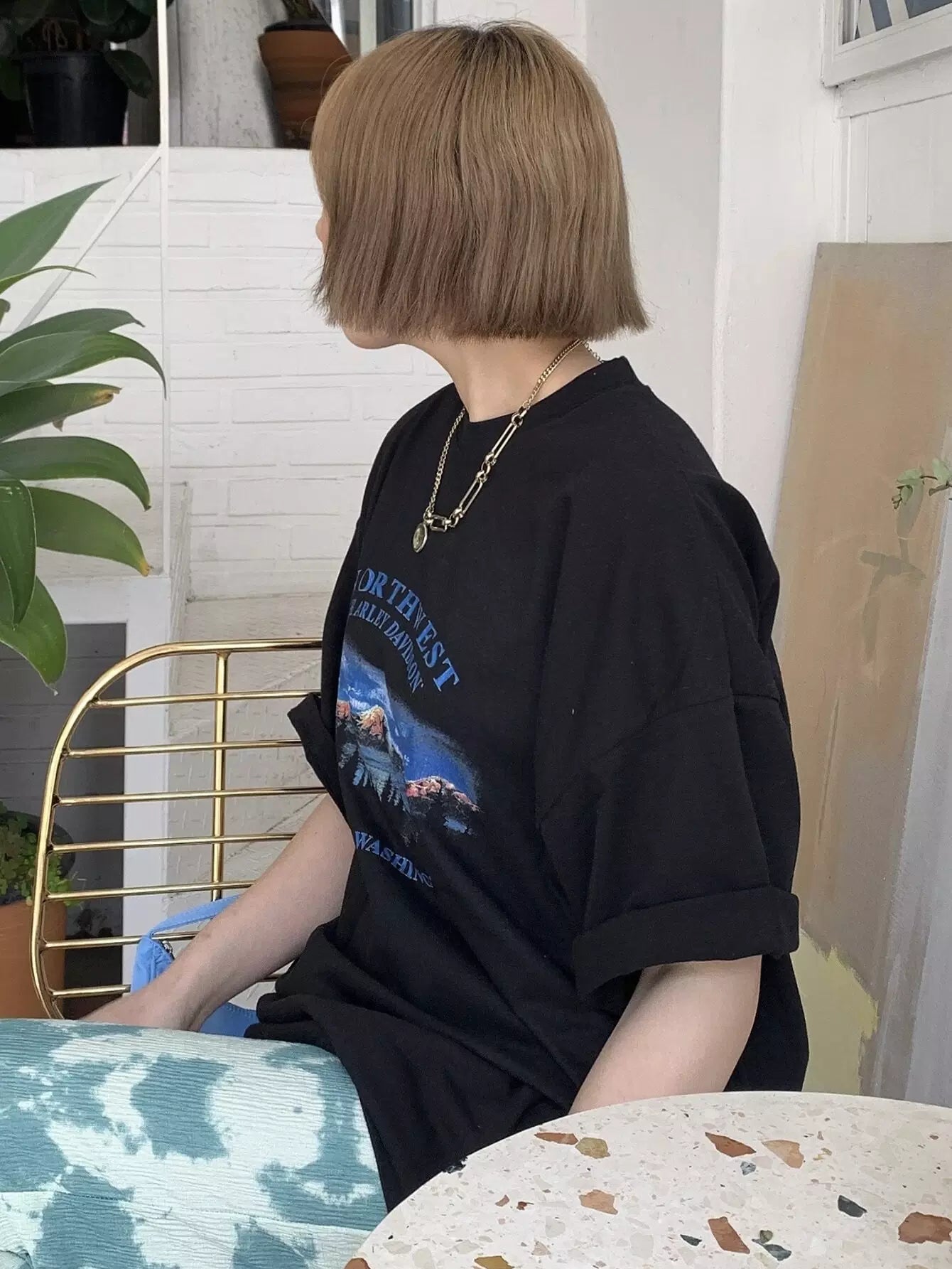 Mountain & Letter Graphic Oversized Tee
