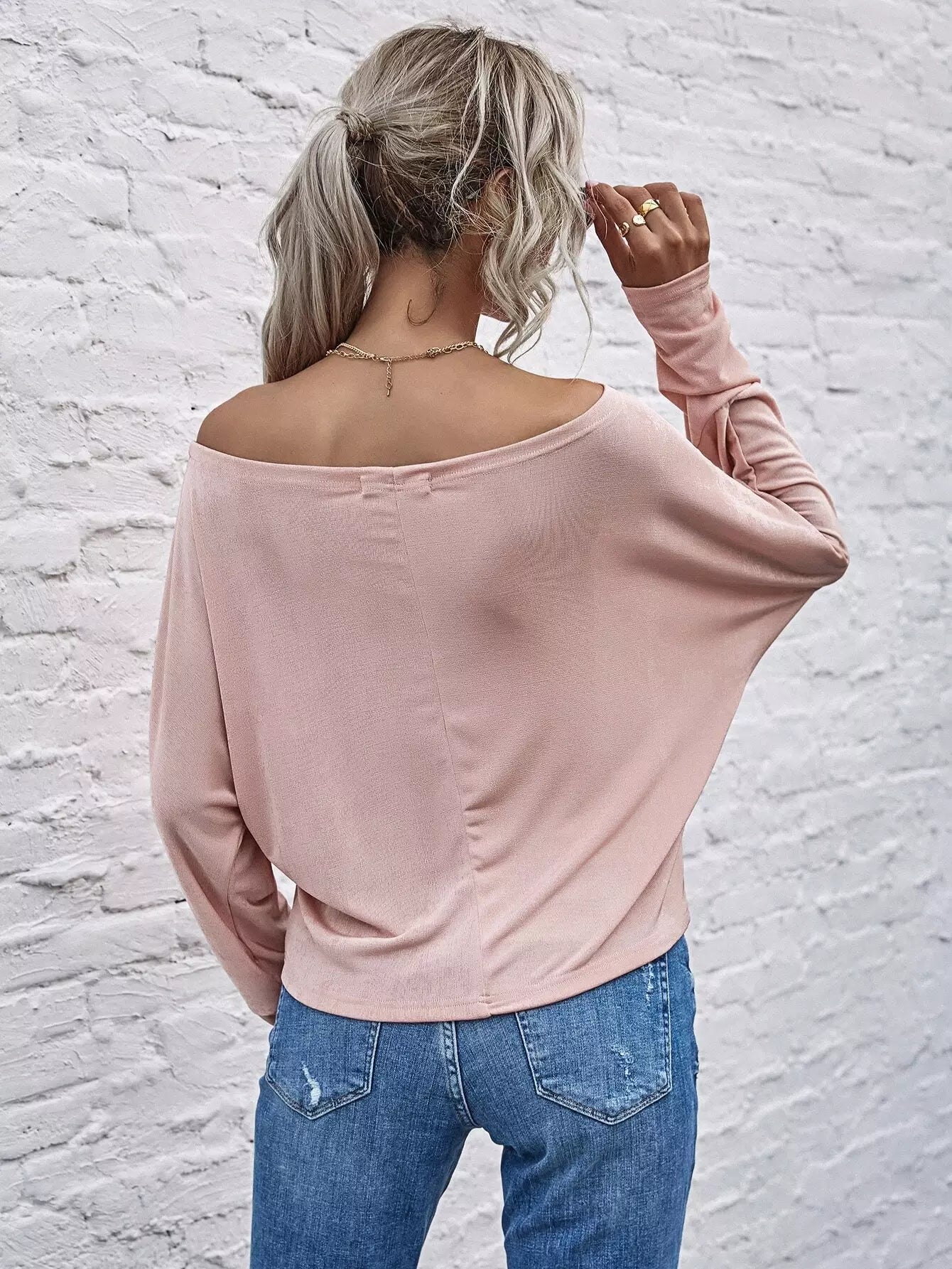 Off Shoulder Batwing Sleeve Tee
