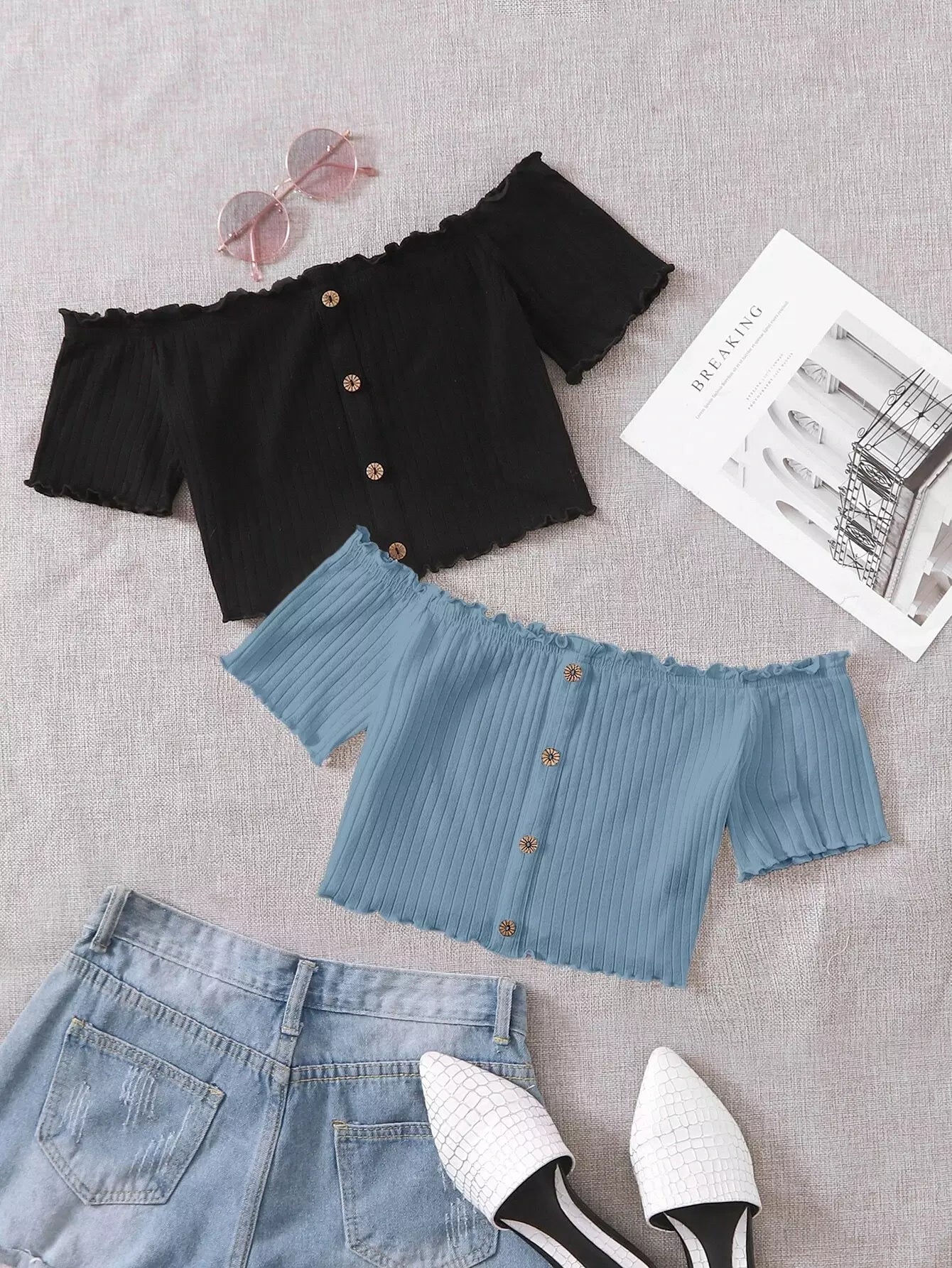 Off Shoulder Lettuce Trim Tee