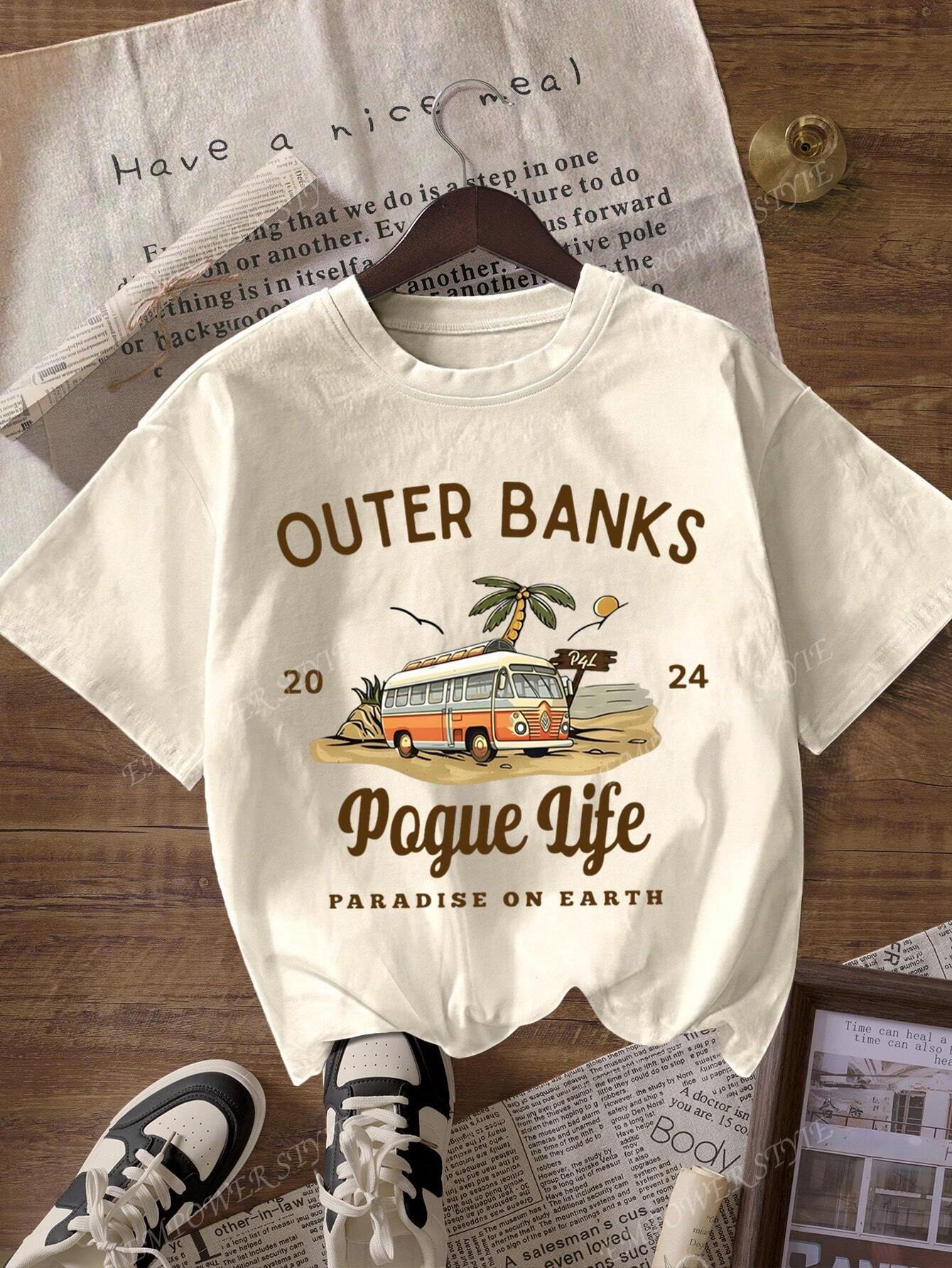 Outer Bank Graphic Print Casual Round Neck Short Sleeve Minimalist T-Shirt