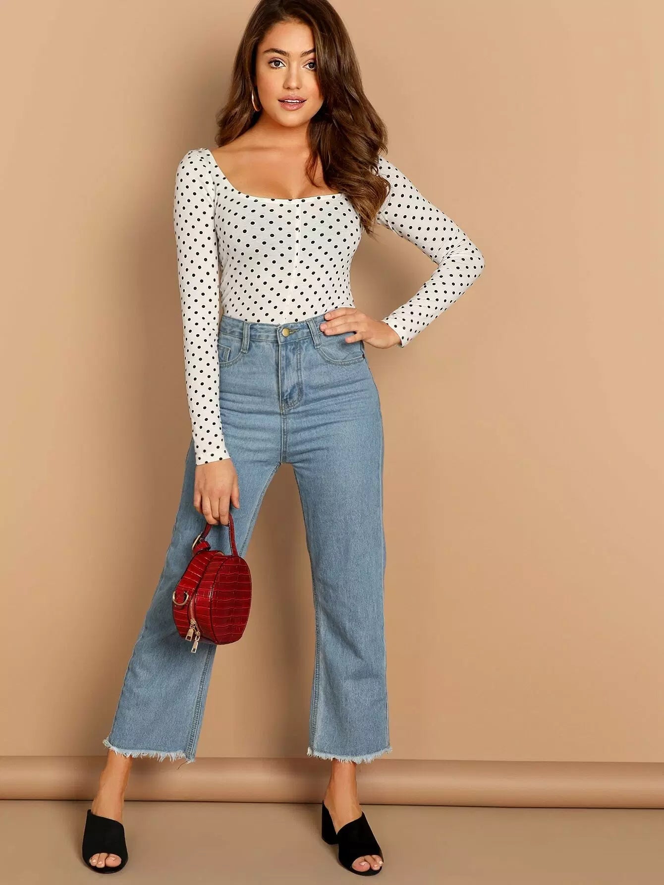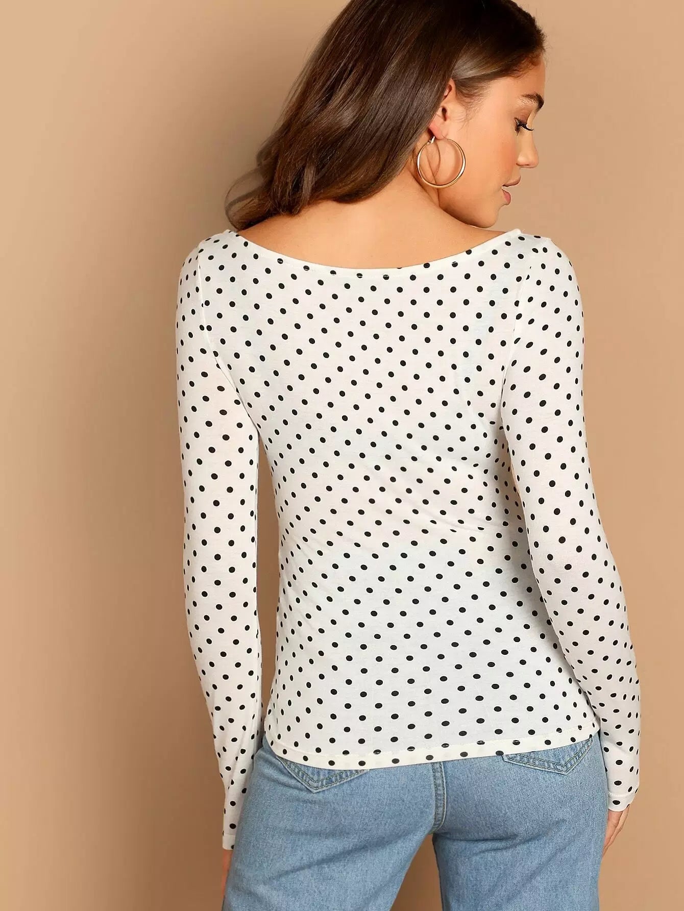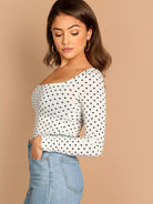 Polka Dot Print Square Neck Tee