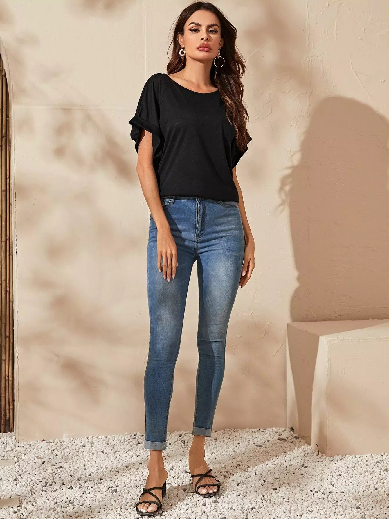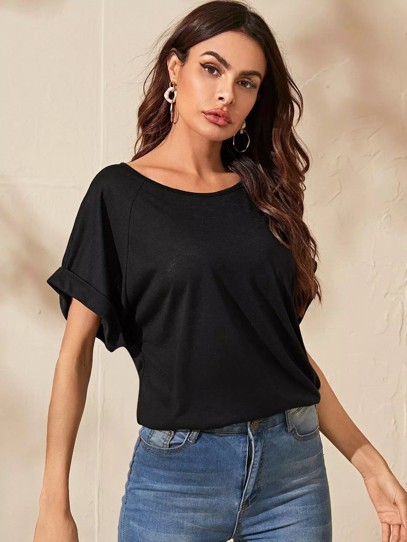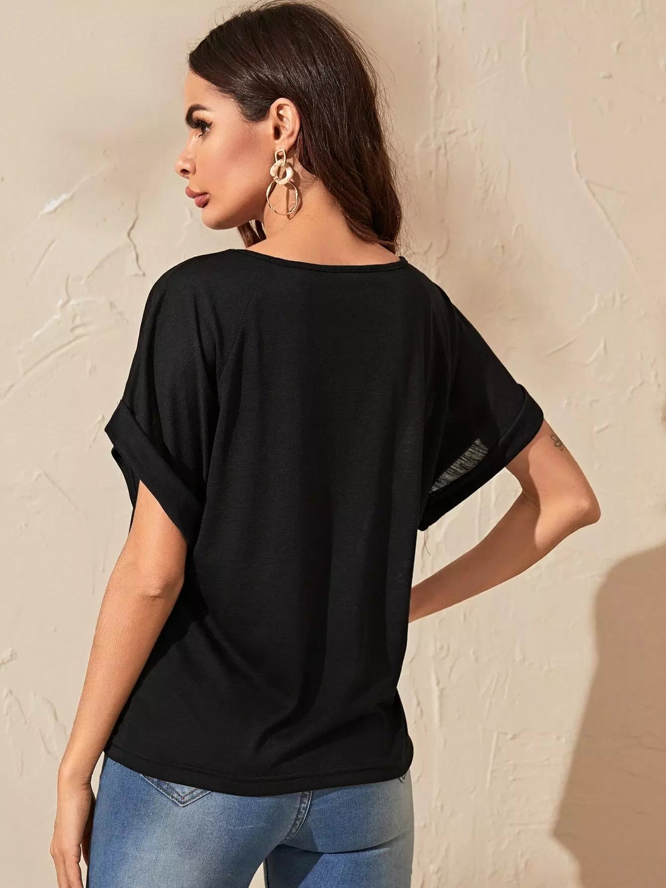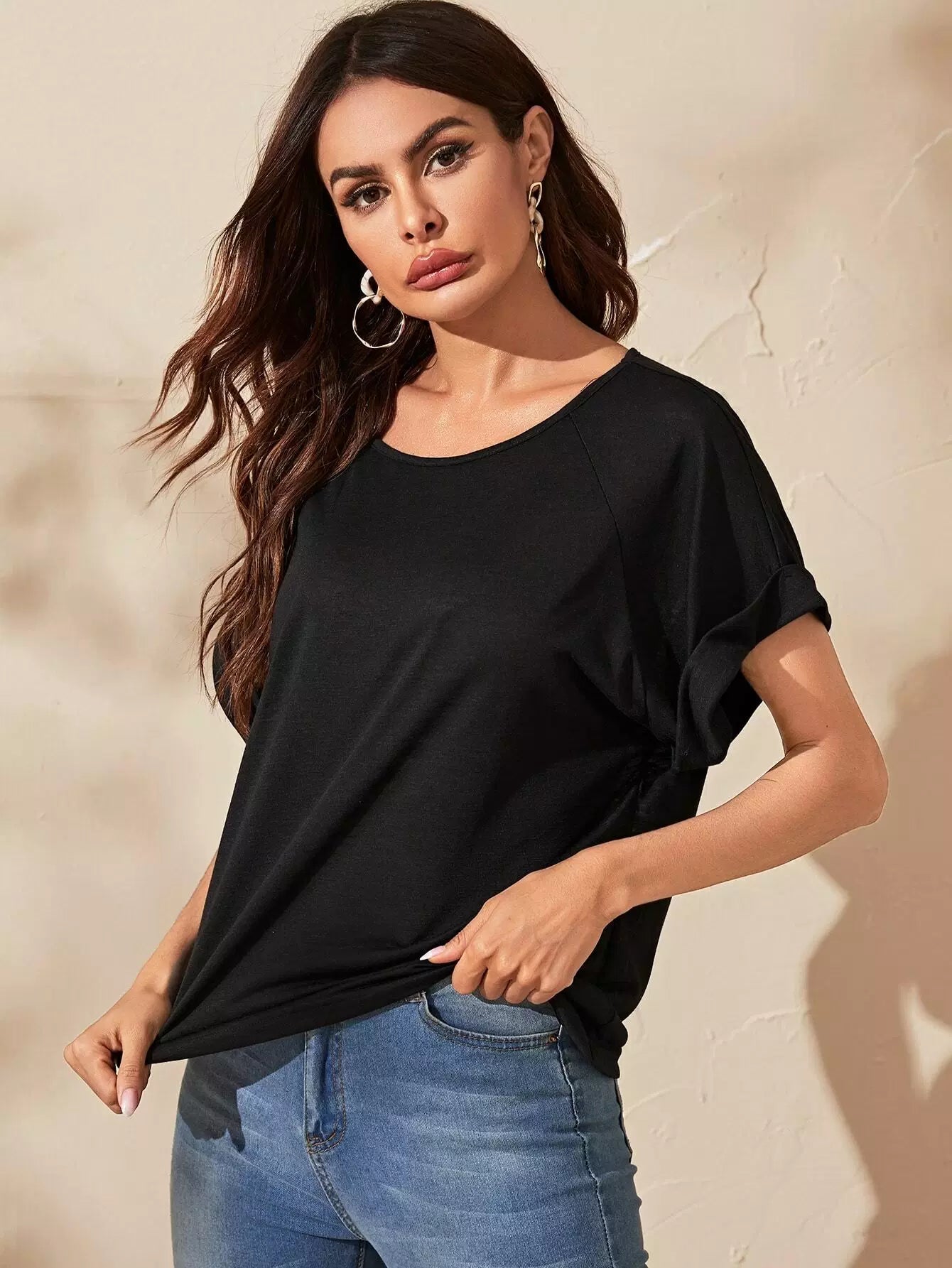 Raglan Sleeve Rolled Cuff Slub Tee