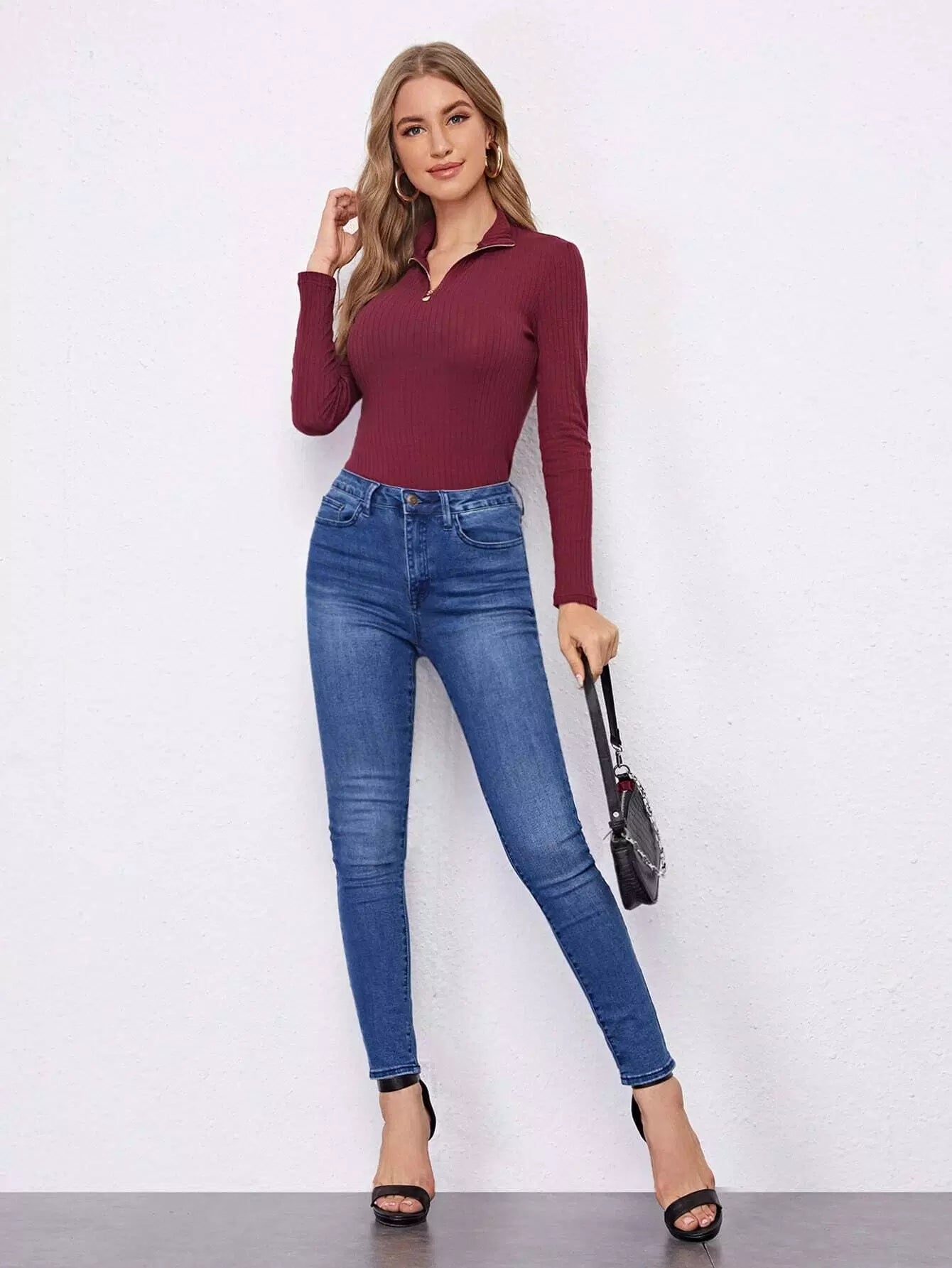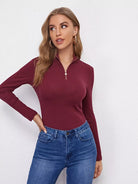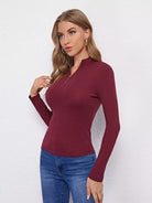 Rib-knit Solid Half Placket Tee