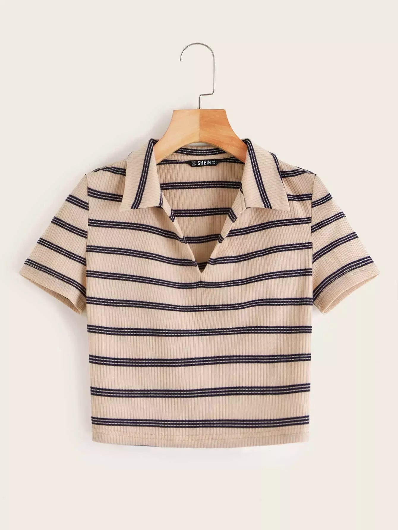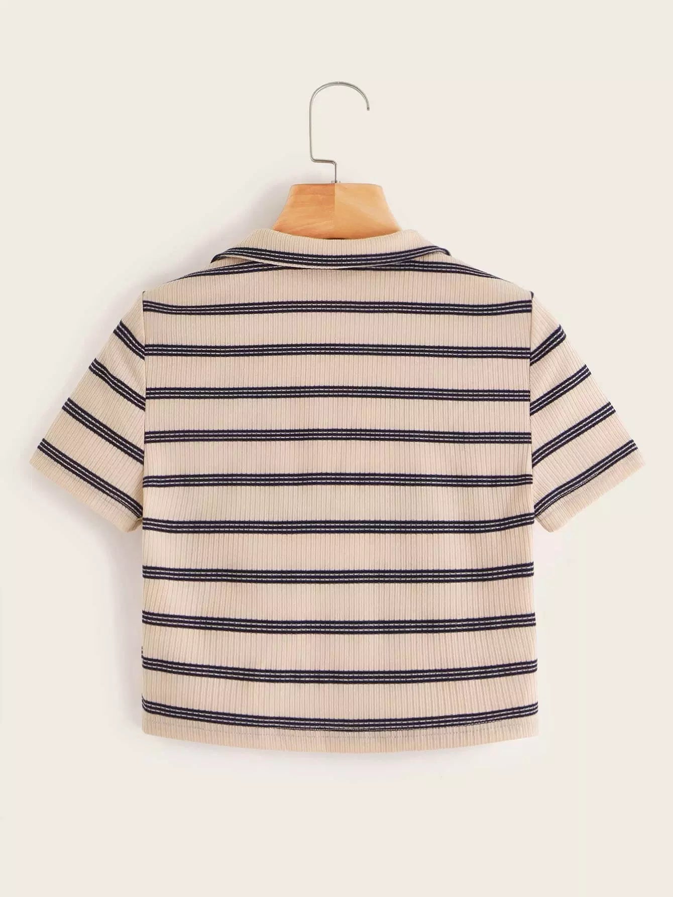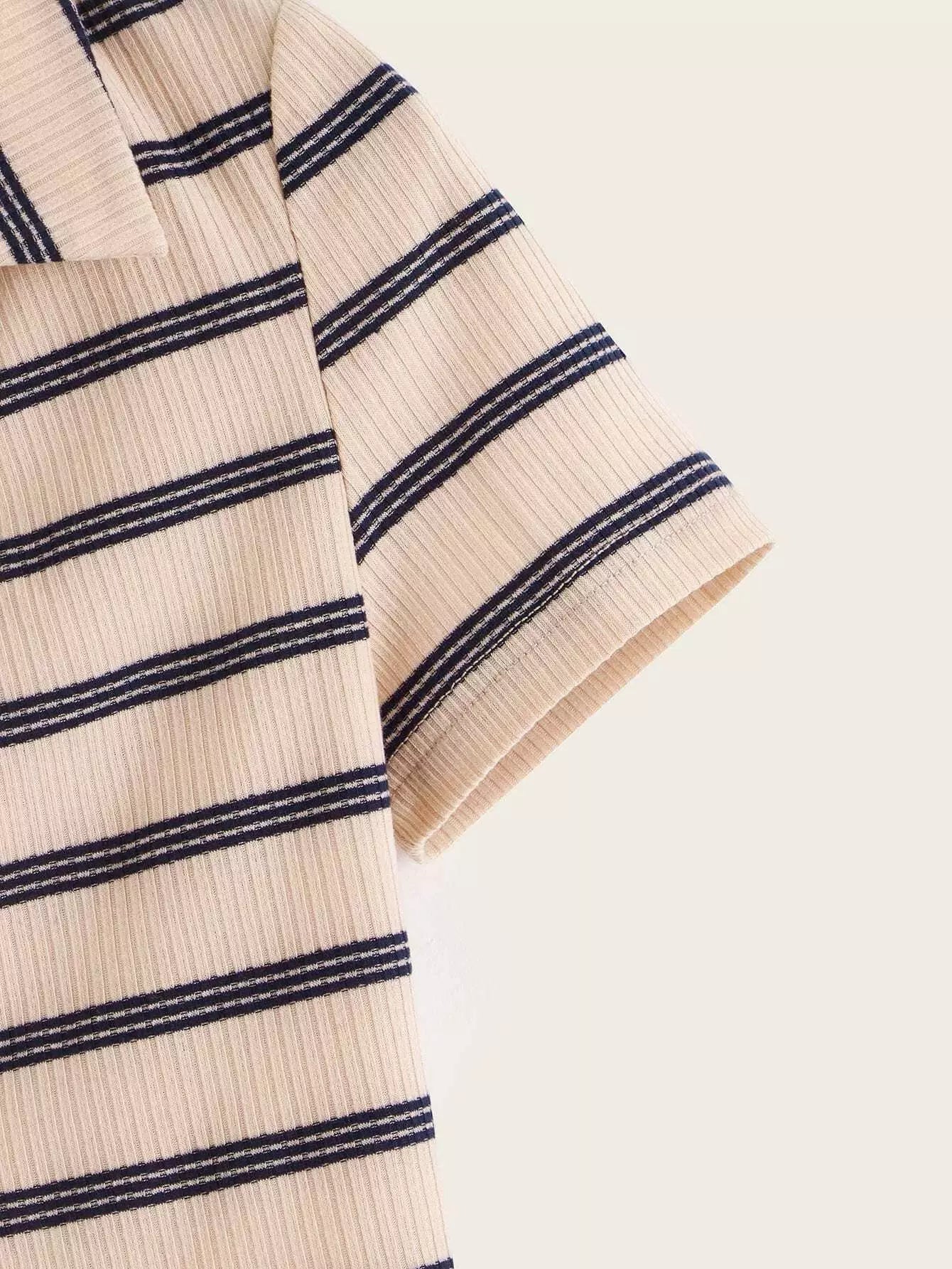Ribbed Striped Short Sleeve Crop Top