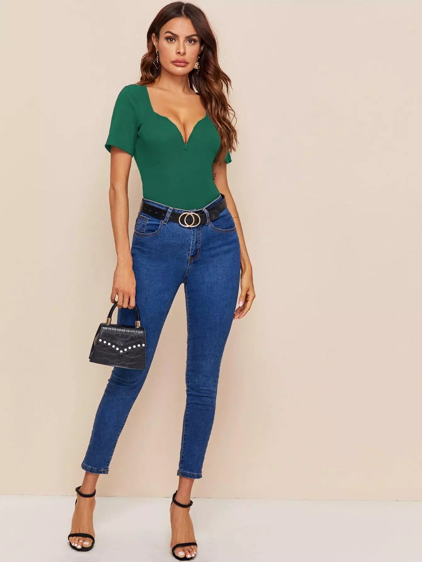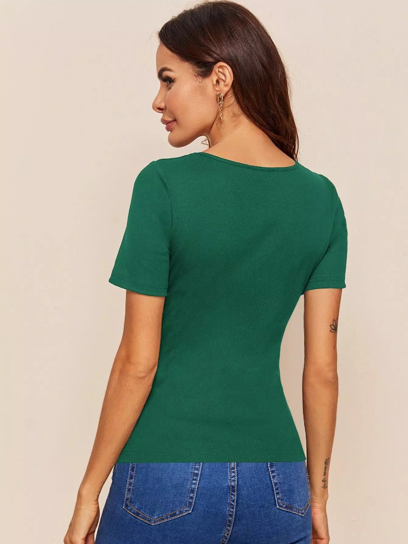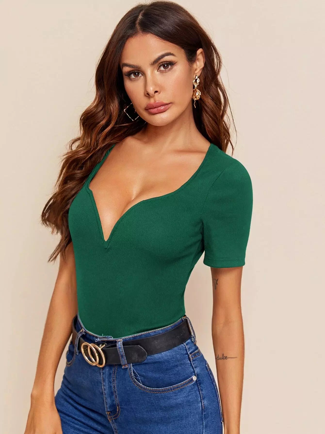 Women - Ribbed Sweetheart Neck Form-Fitting Top