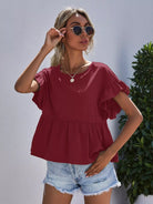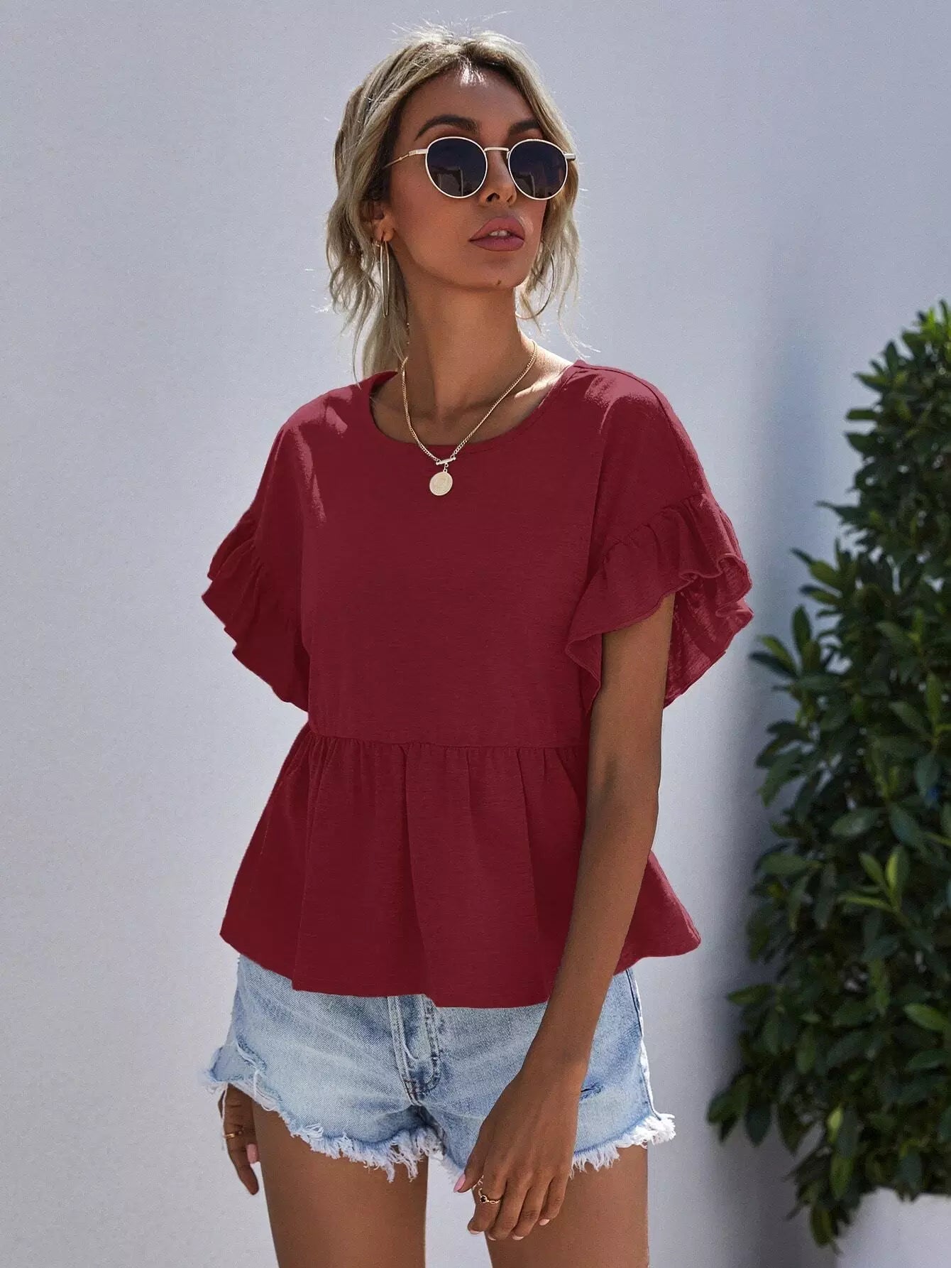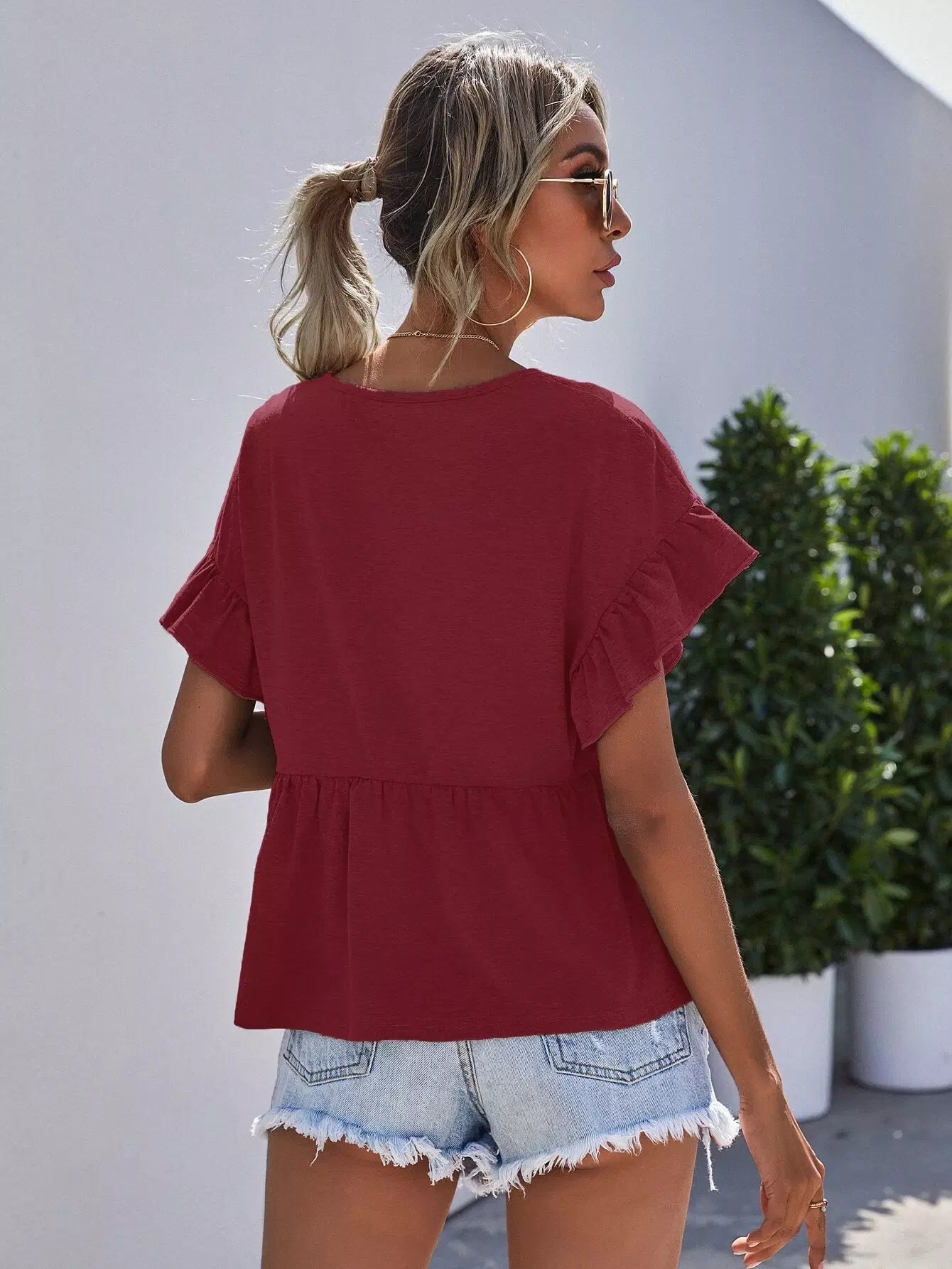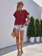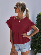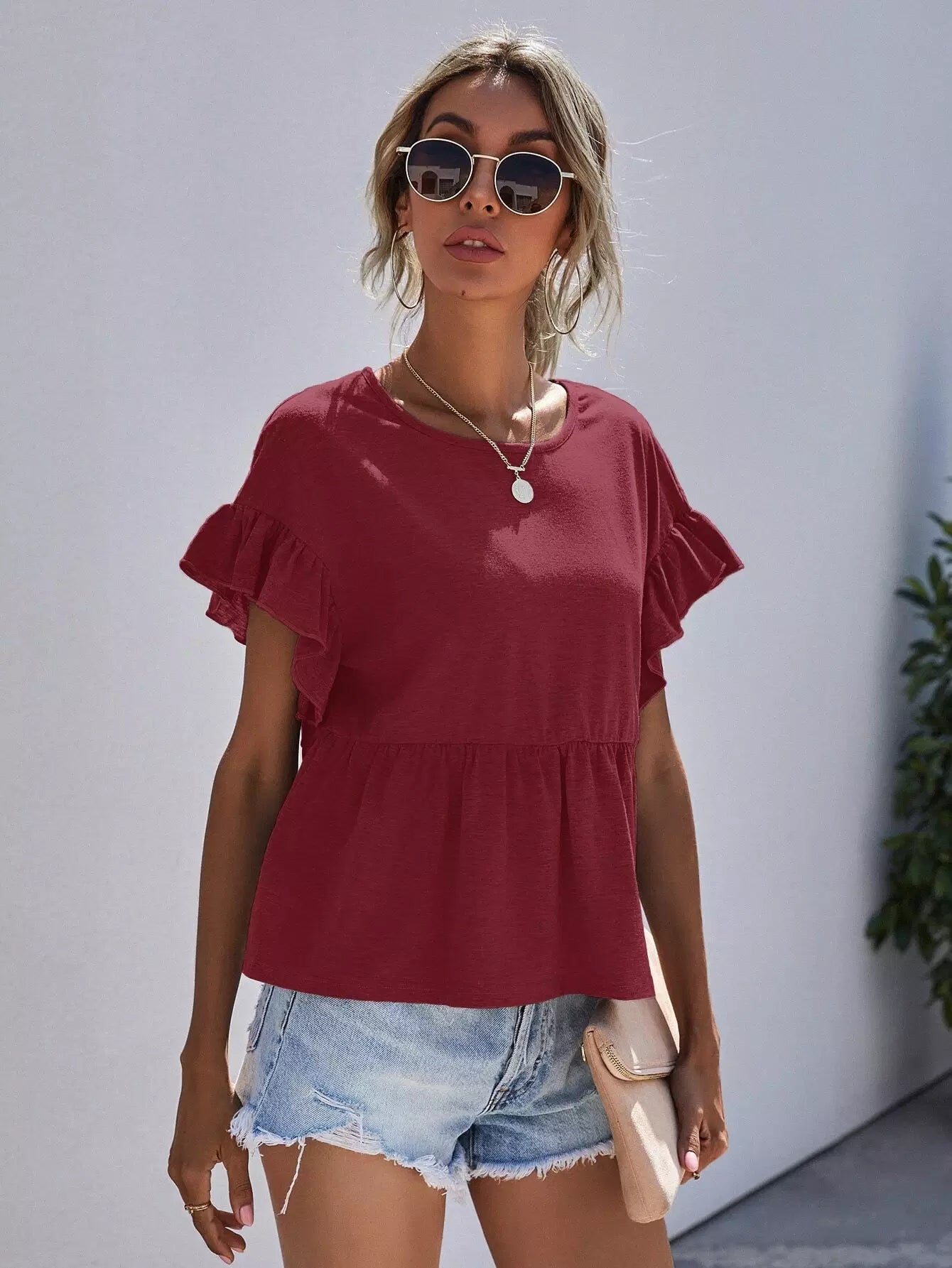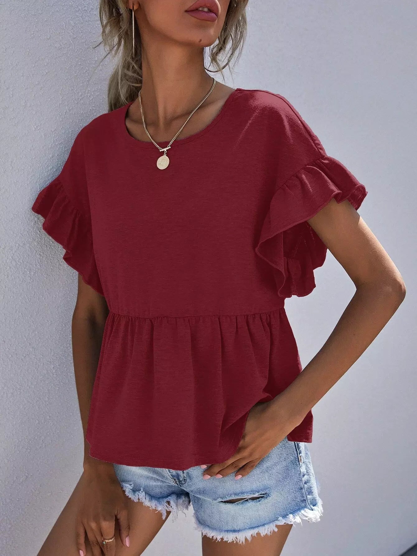 Ruffle Cuff Solid Peplum Tee