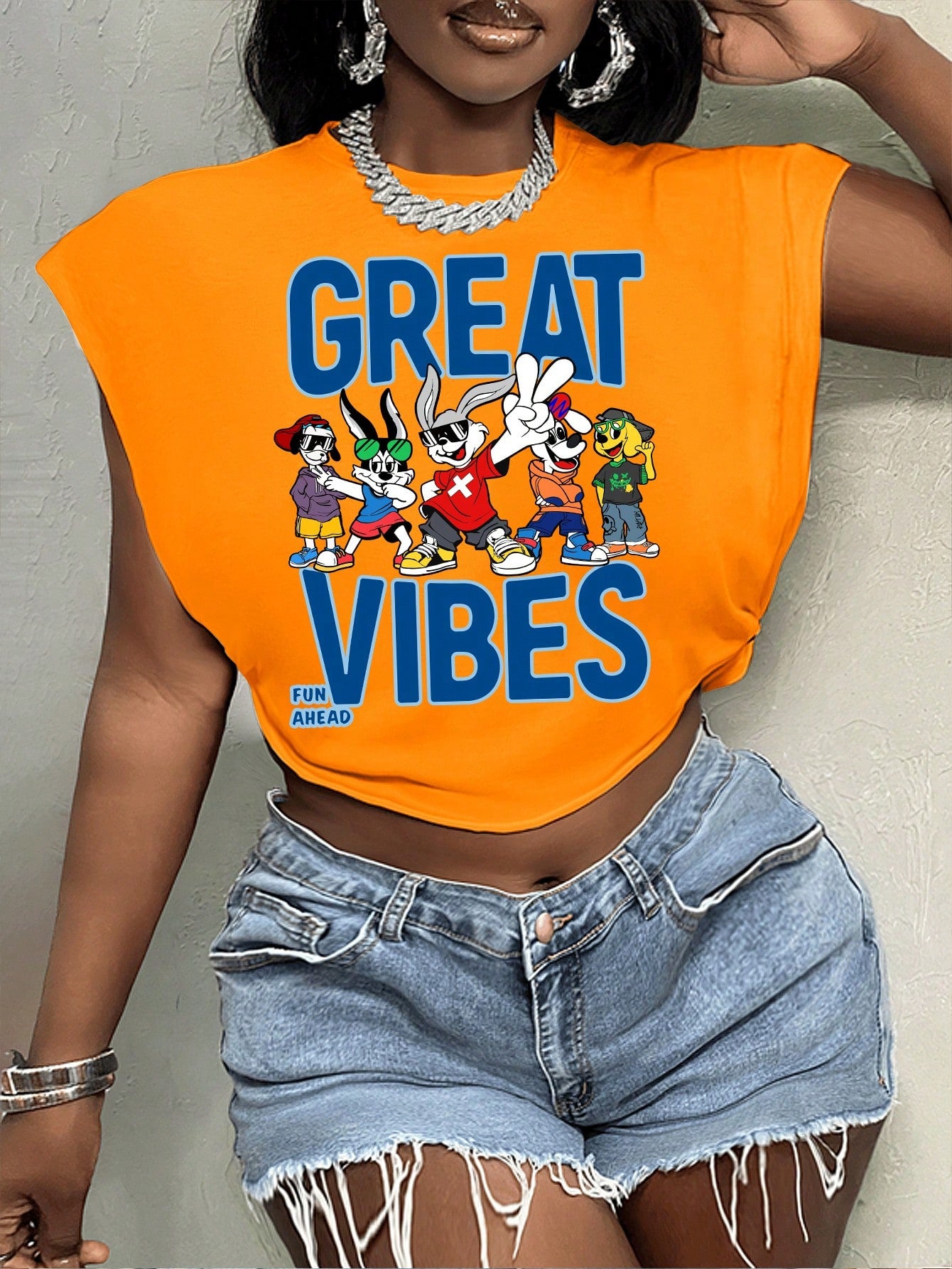 Slaydiva Casual Cute Rabbit Print Round Neck Short Sleeve Loose Crop Top T-Shirt For Women, Suitable
