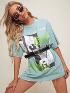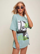 Slogan and Figure Graphic Longline Oversized Tee Without Belt