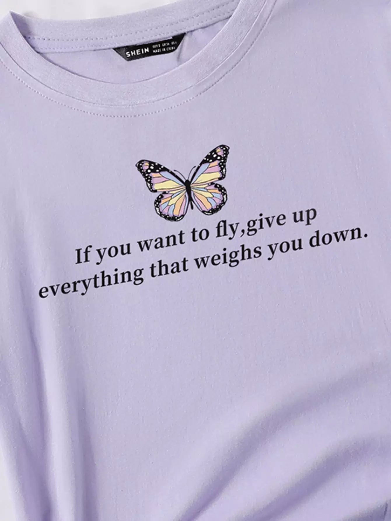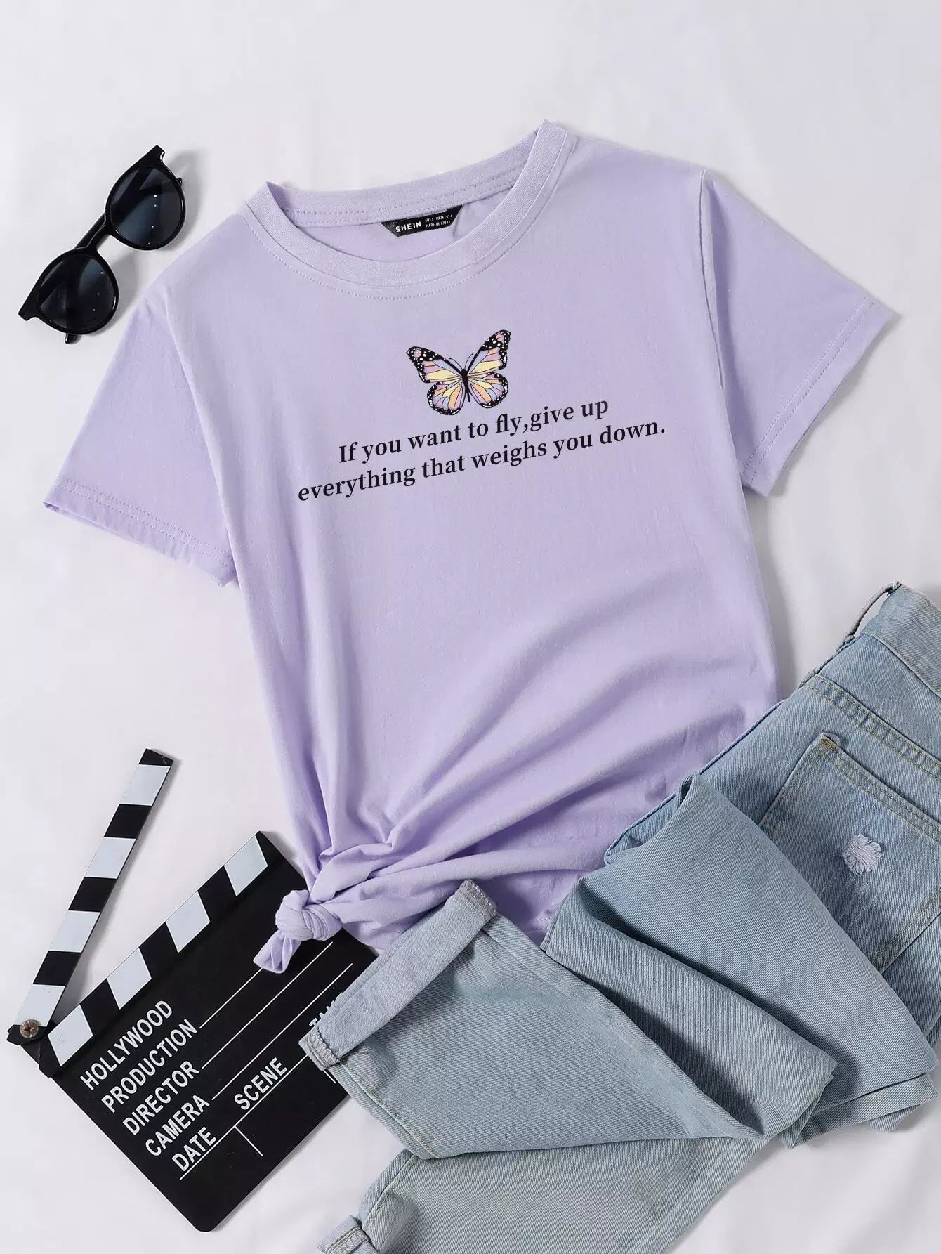 Slogan & Butterfly Print Short Sleeve Tee