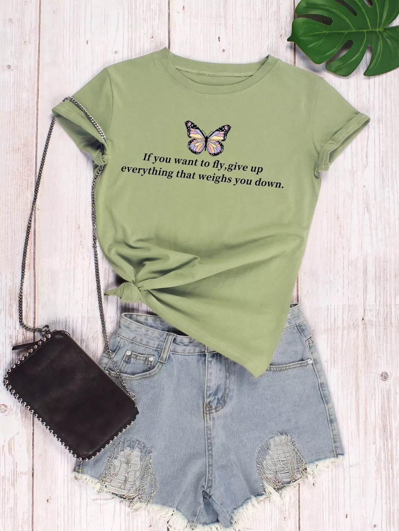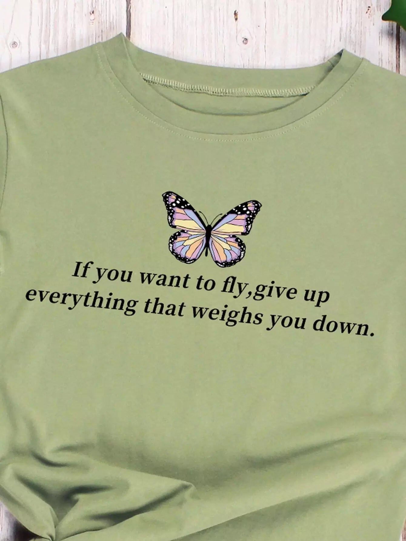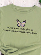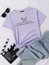 Women - Slogan & Butterfly Print Short Sleeve Tee