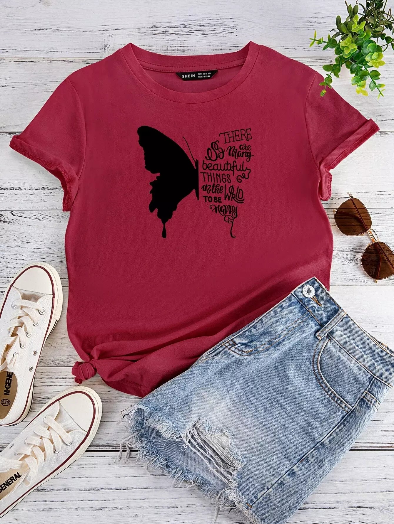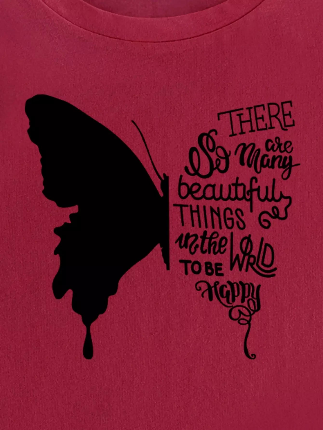 Slogan & Butterfly Print Tee