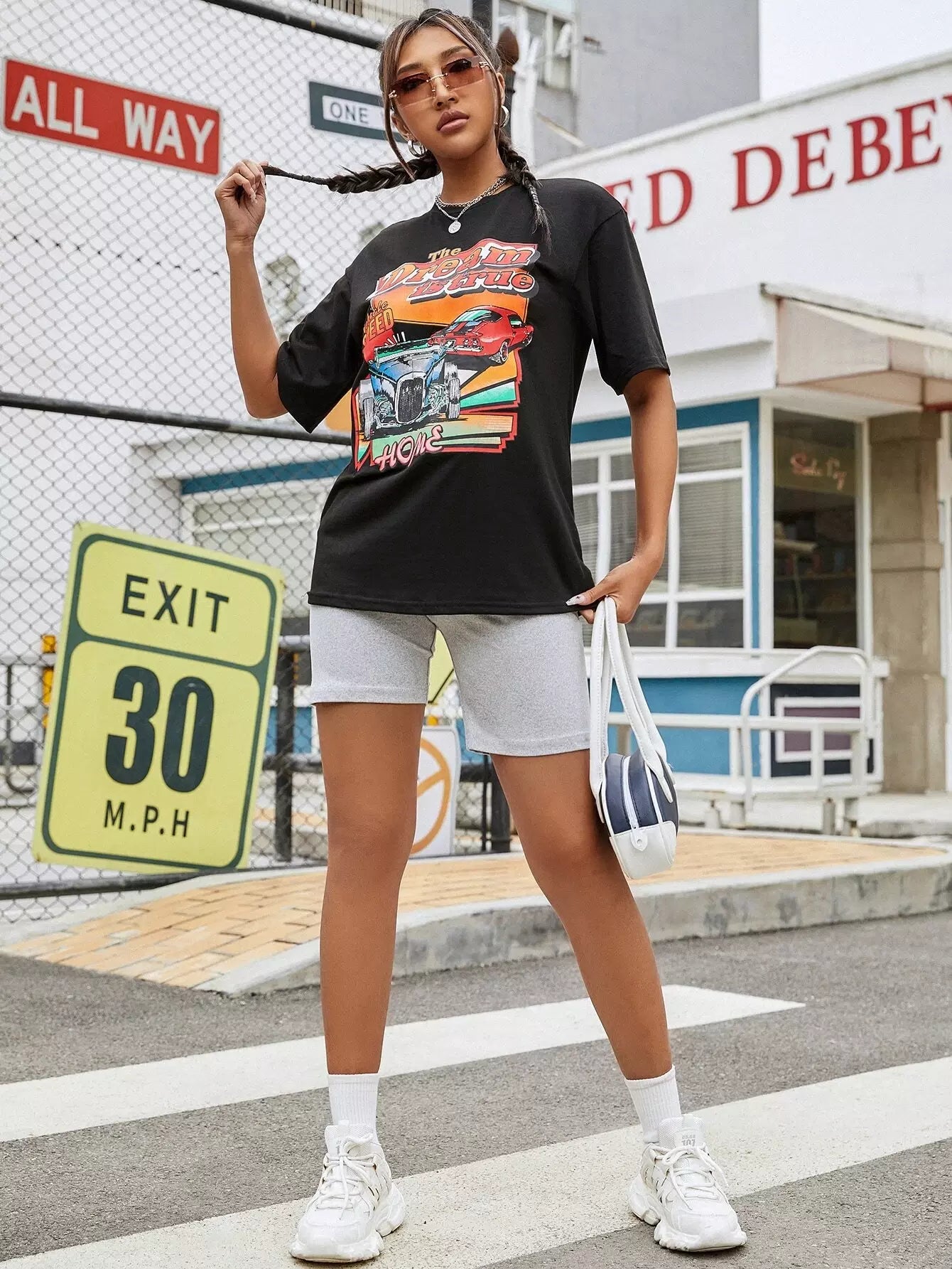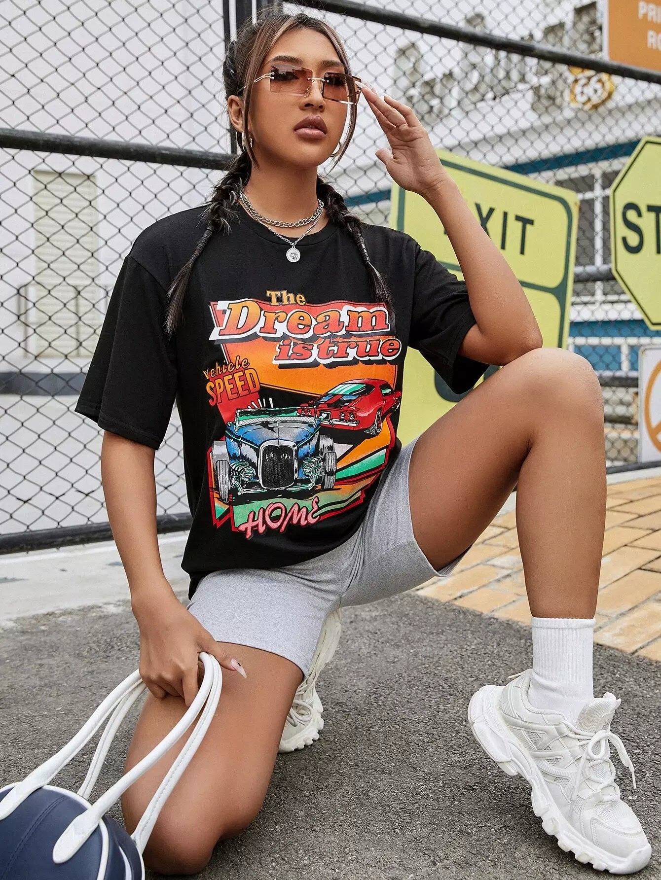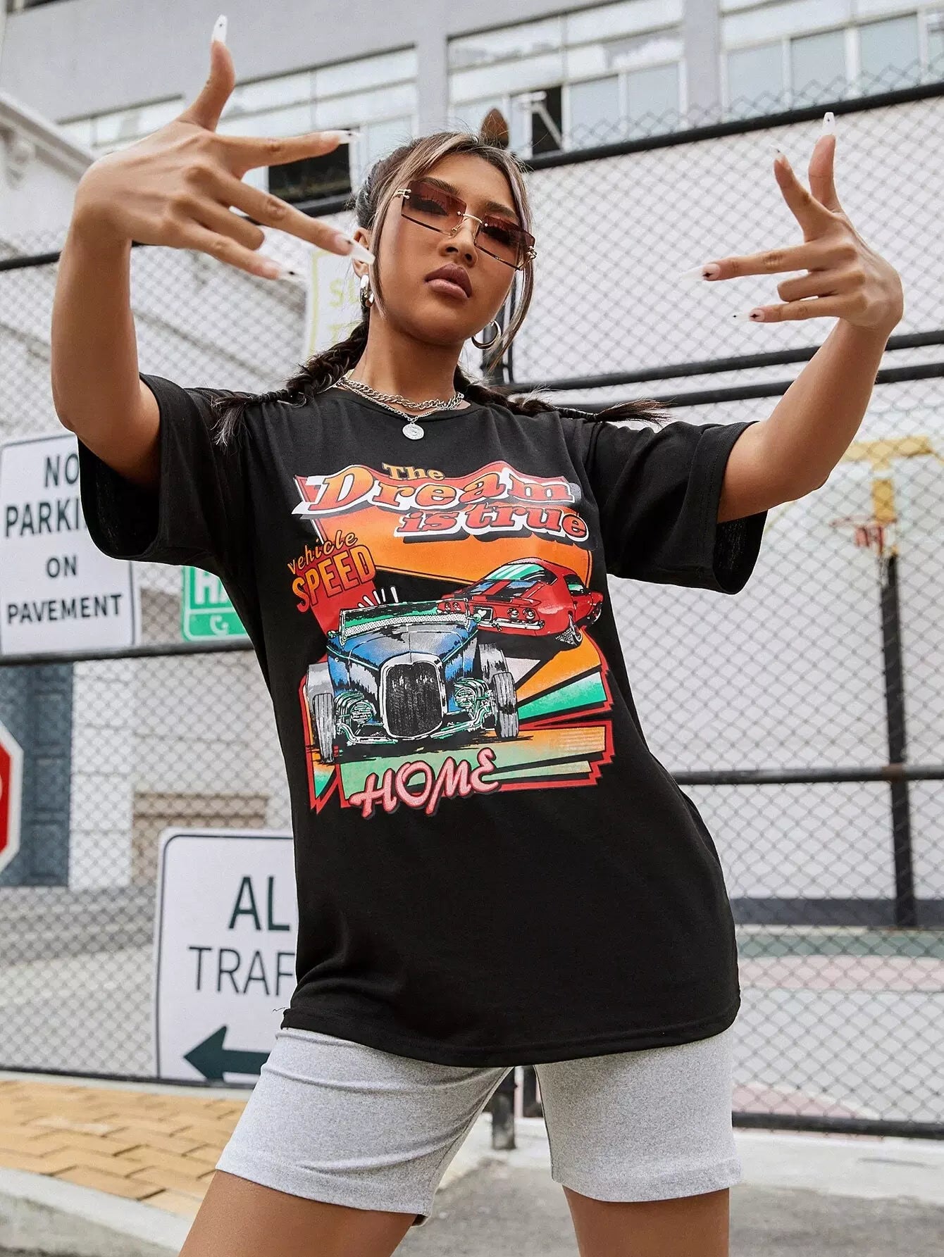 Slogan & Car Print Drop Shoulder Tee