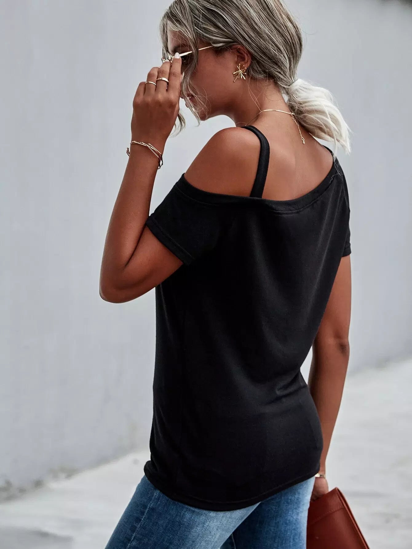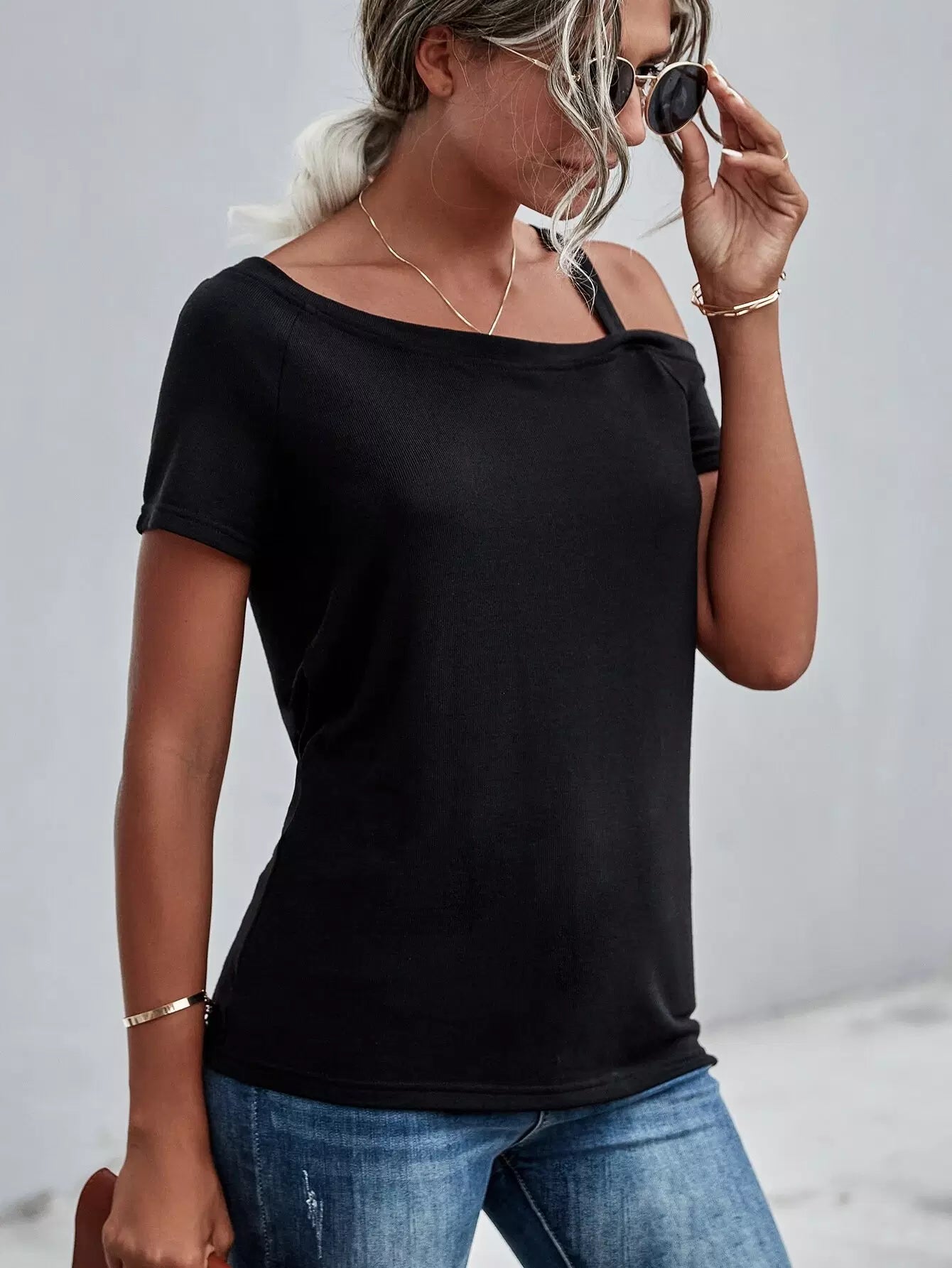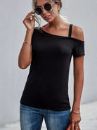 Solid Asymmetrical Neck Tee