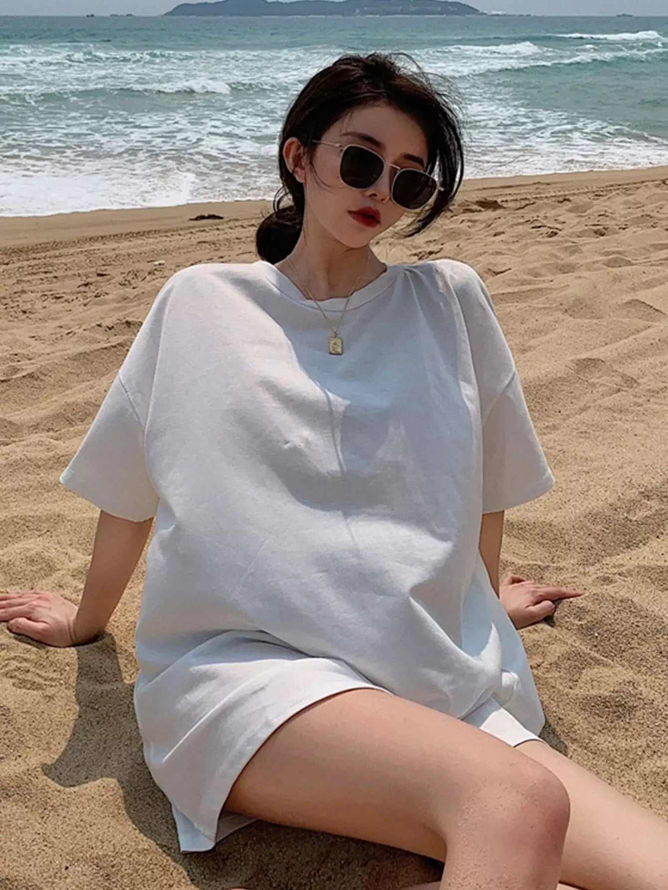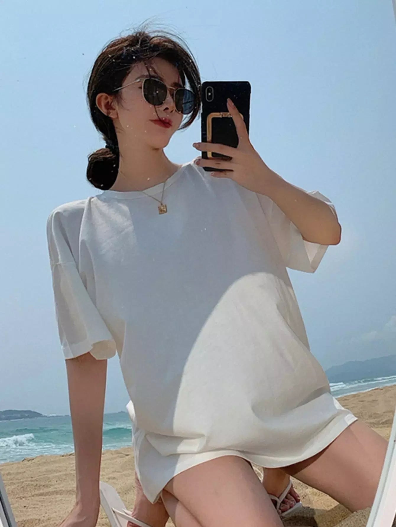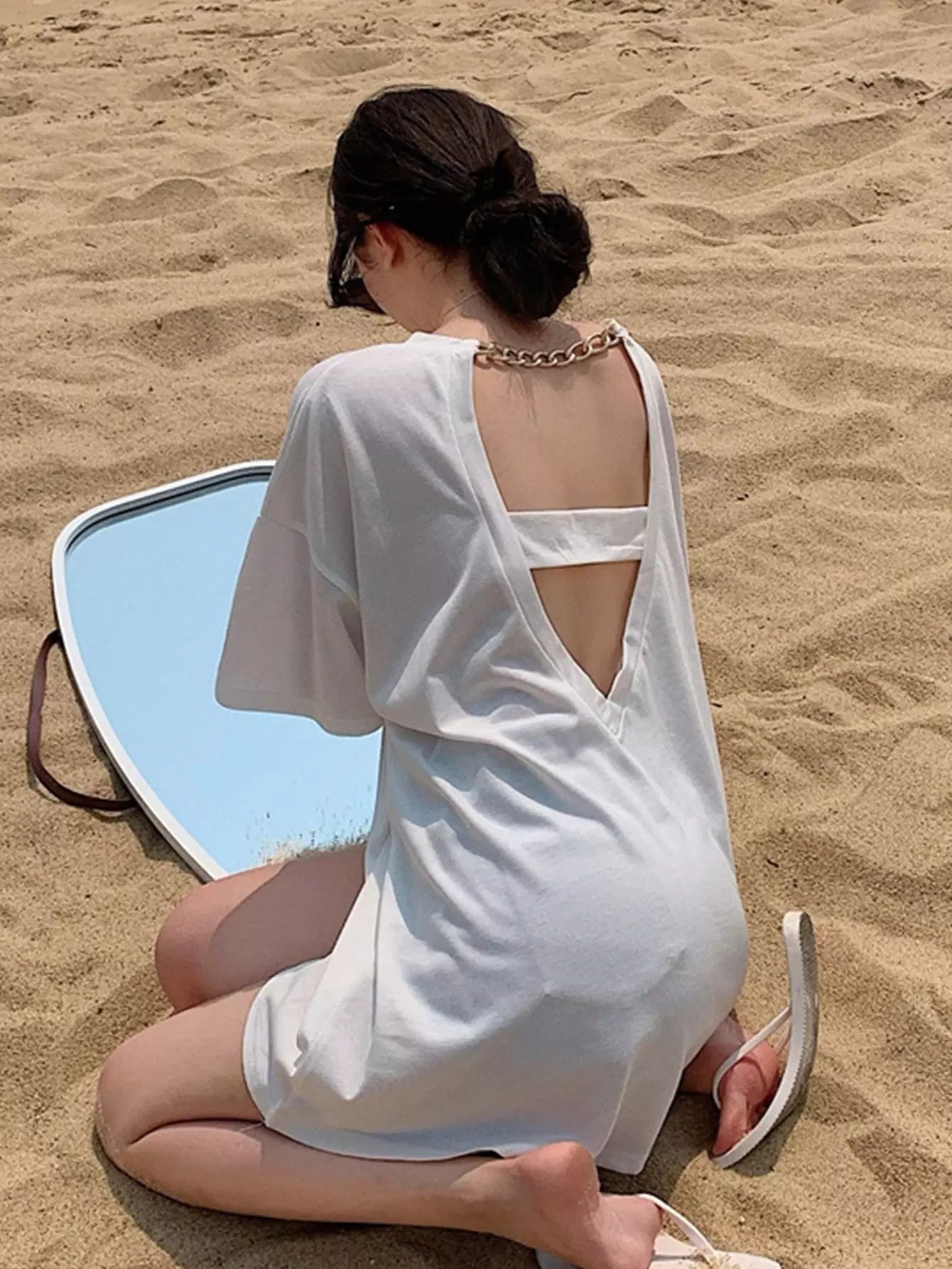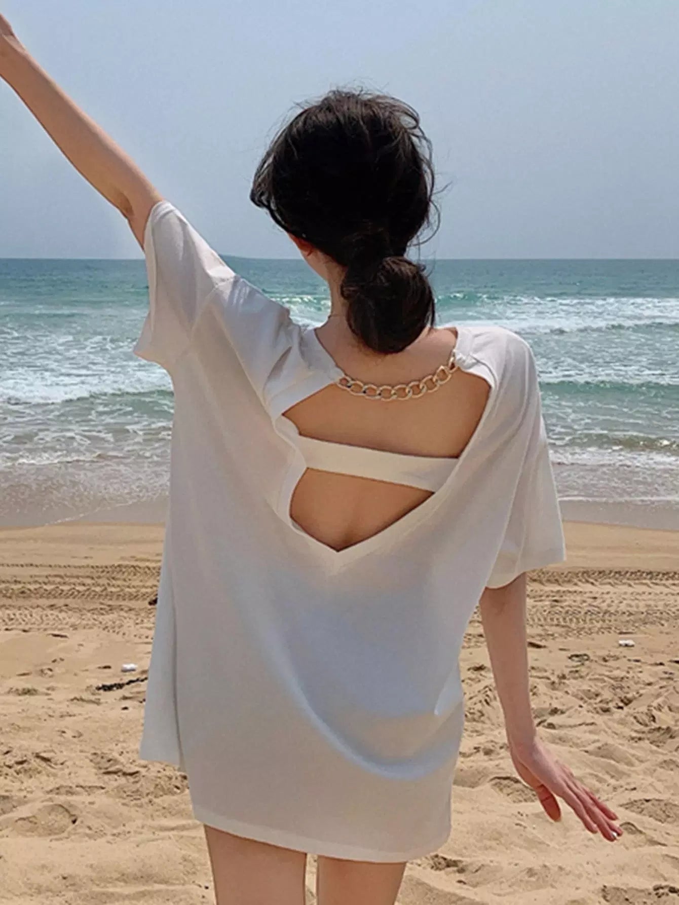 Solid Chain Detail Open Back Drop Shoulder Long Tee