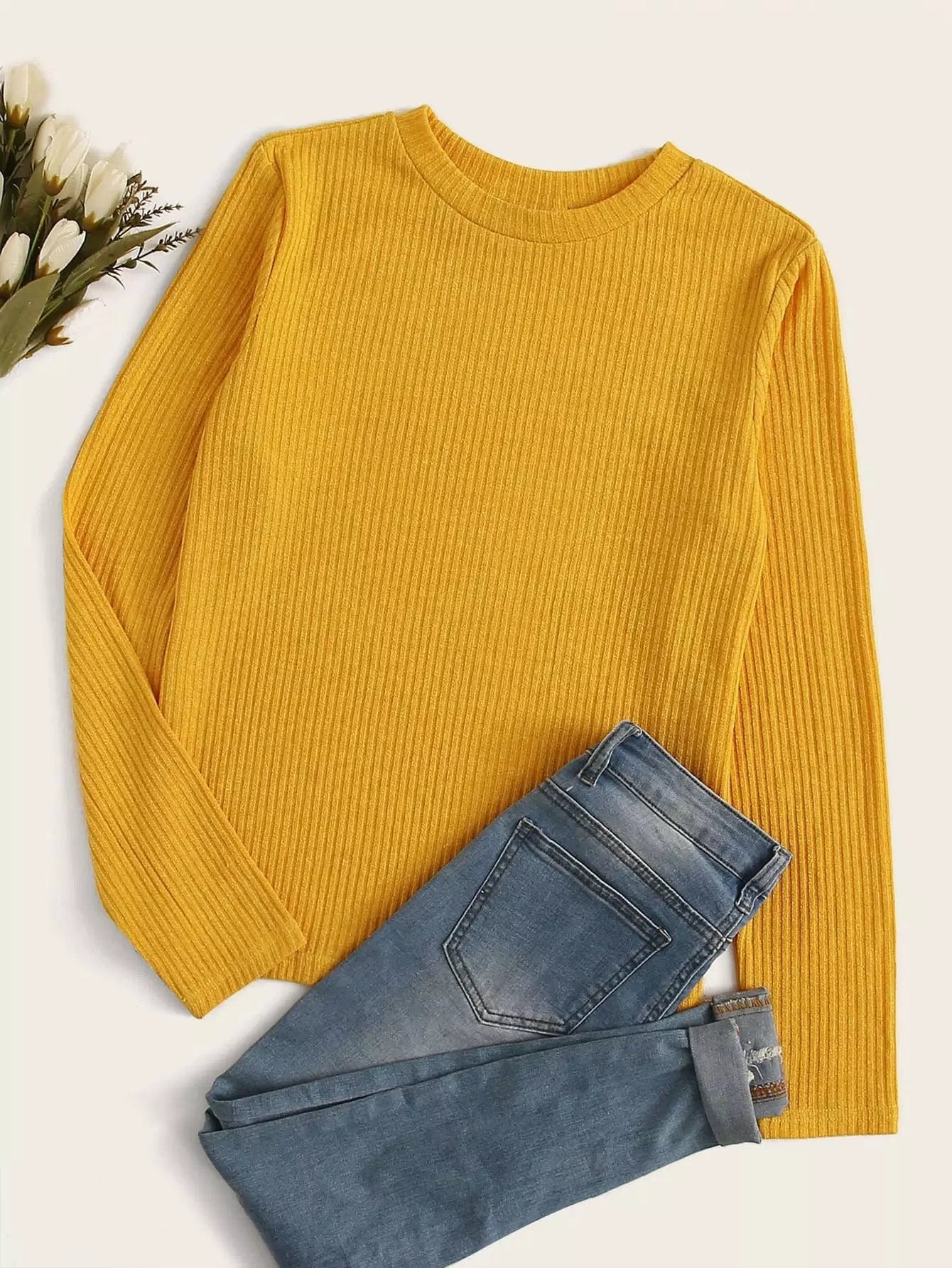 Solid Rib-knit Tee