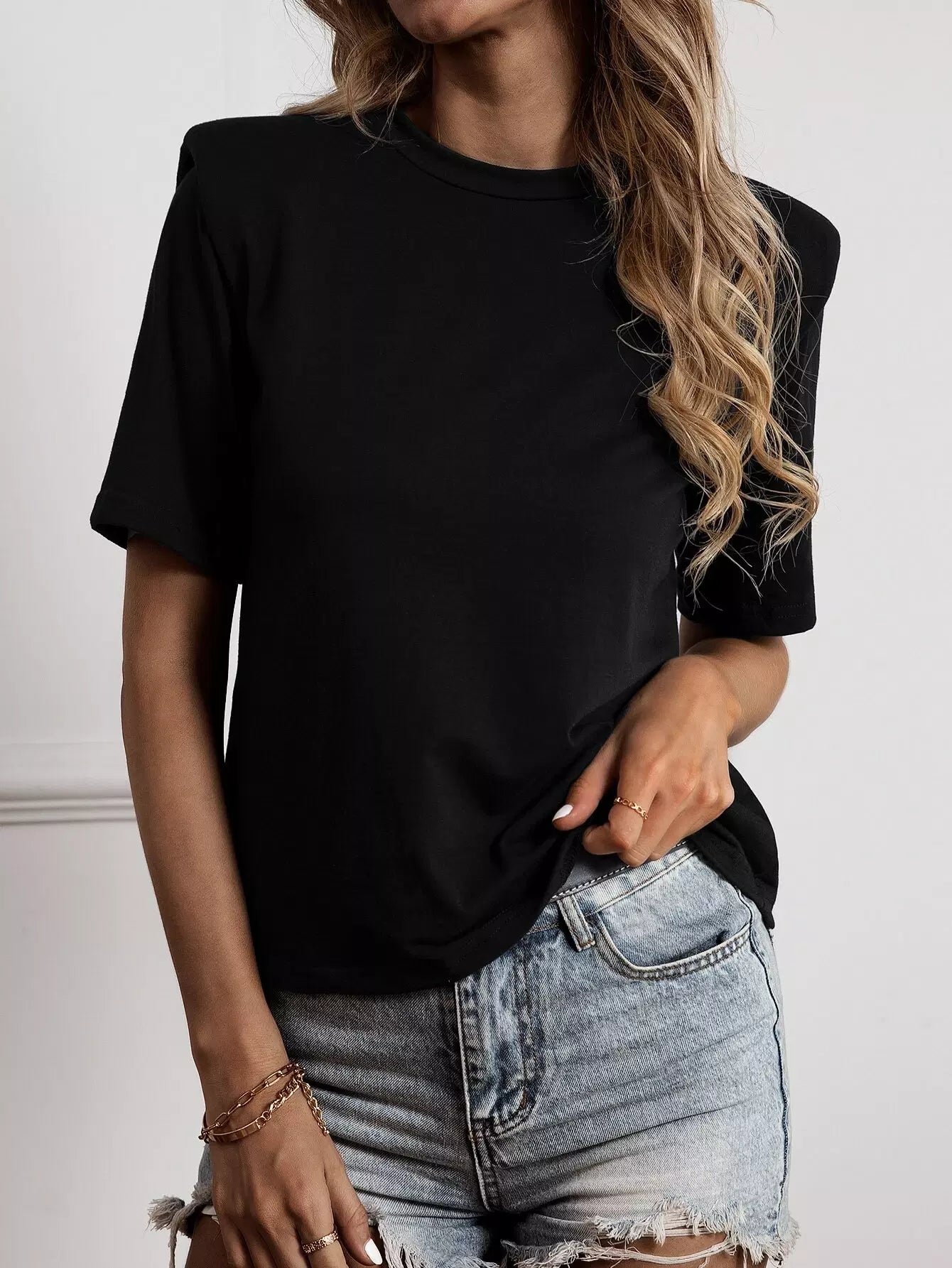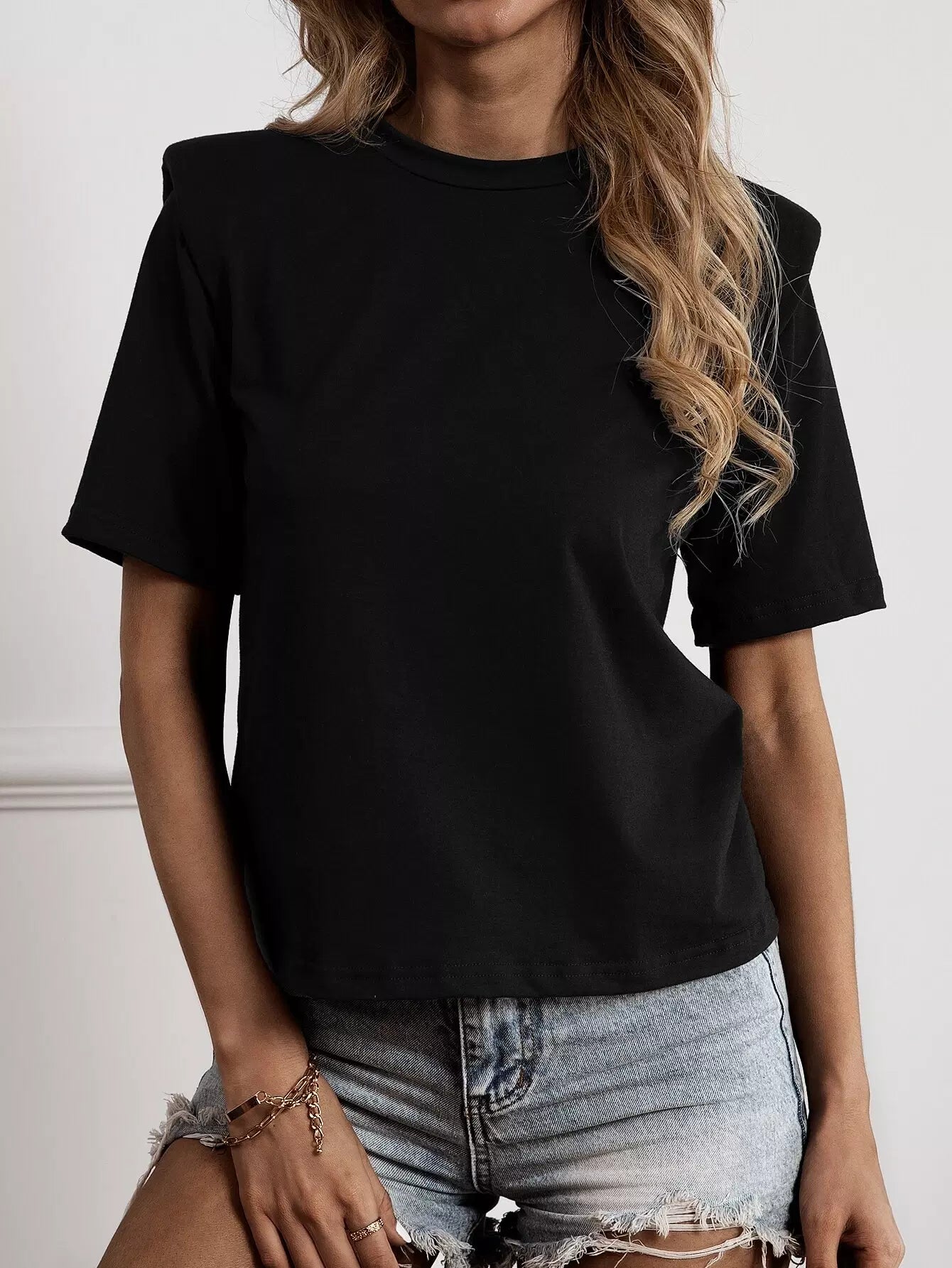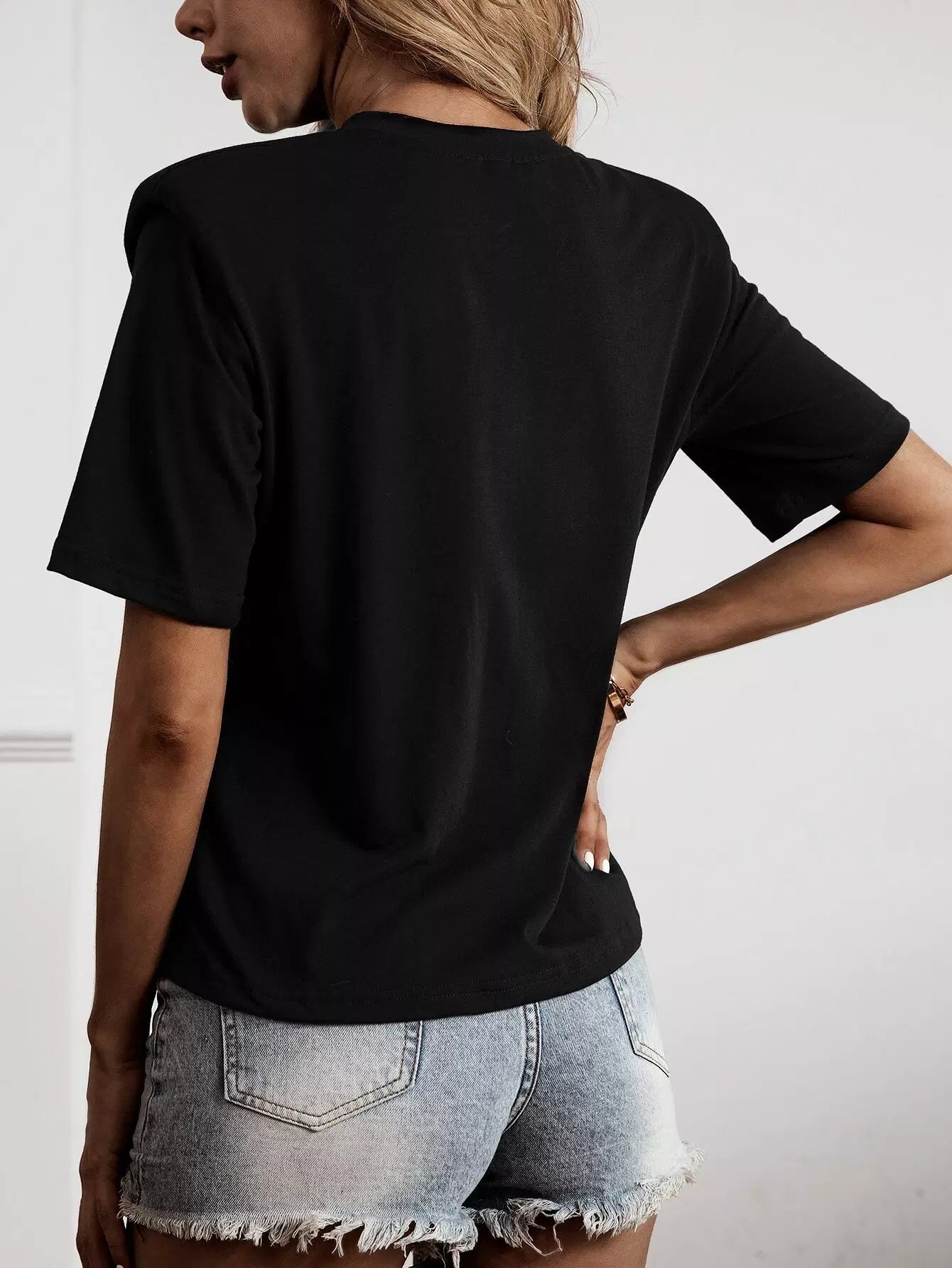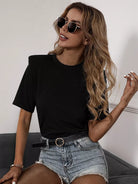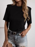 Solid Shoulder Pad Crew Neck Tee