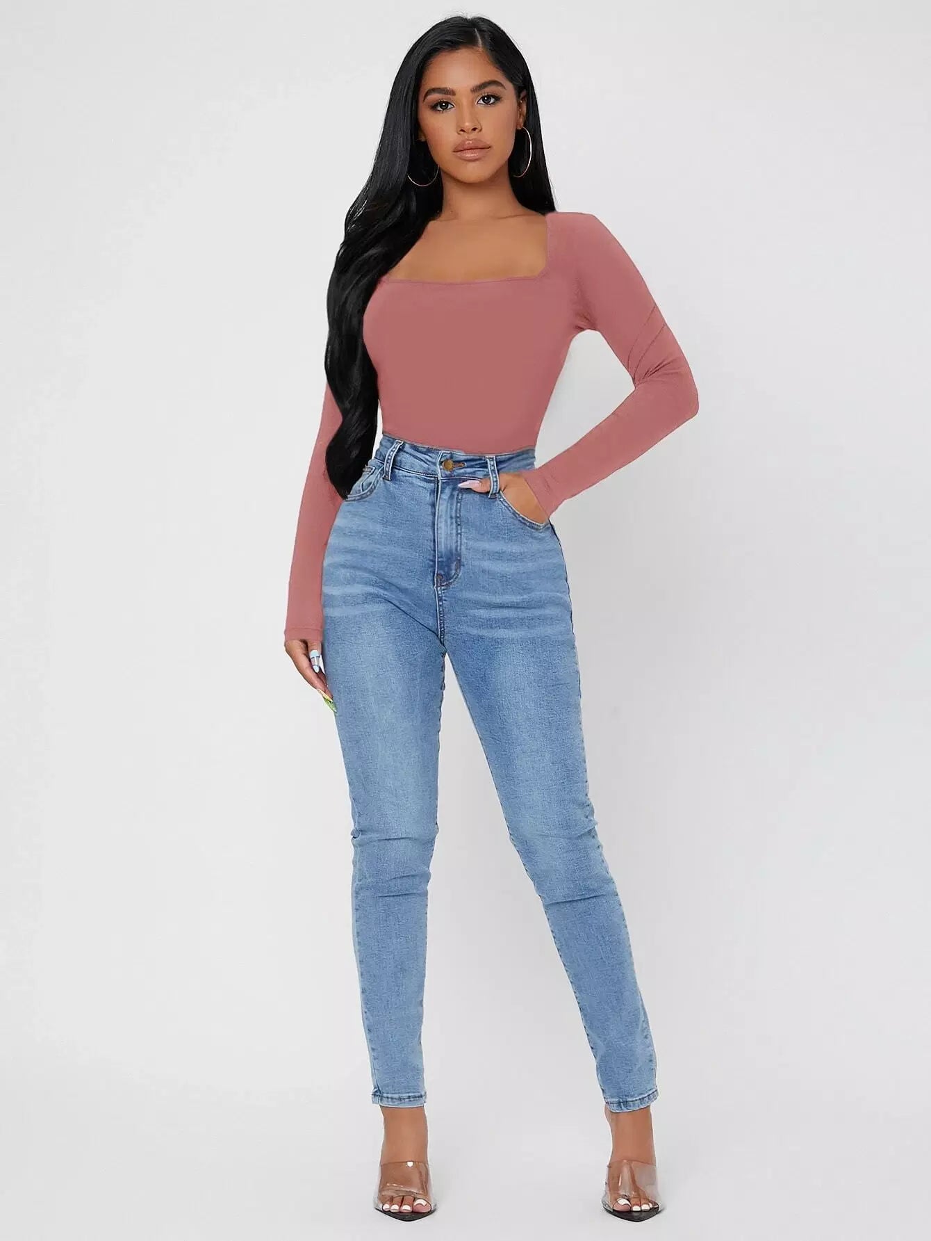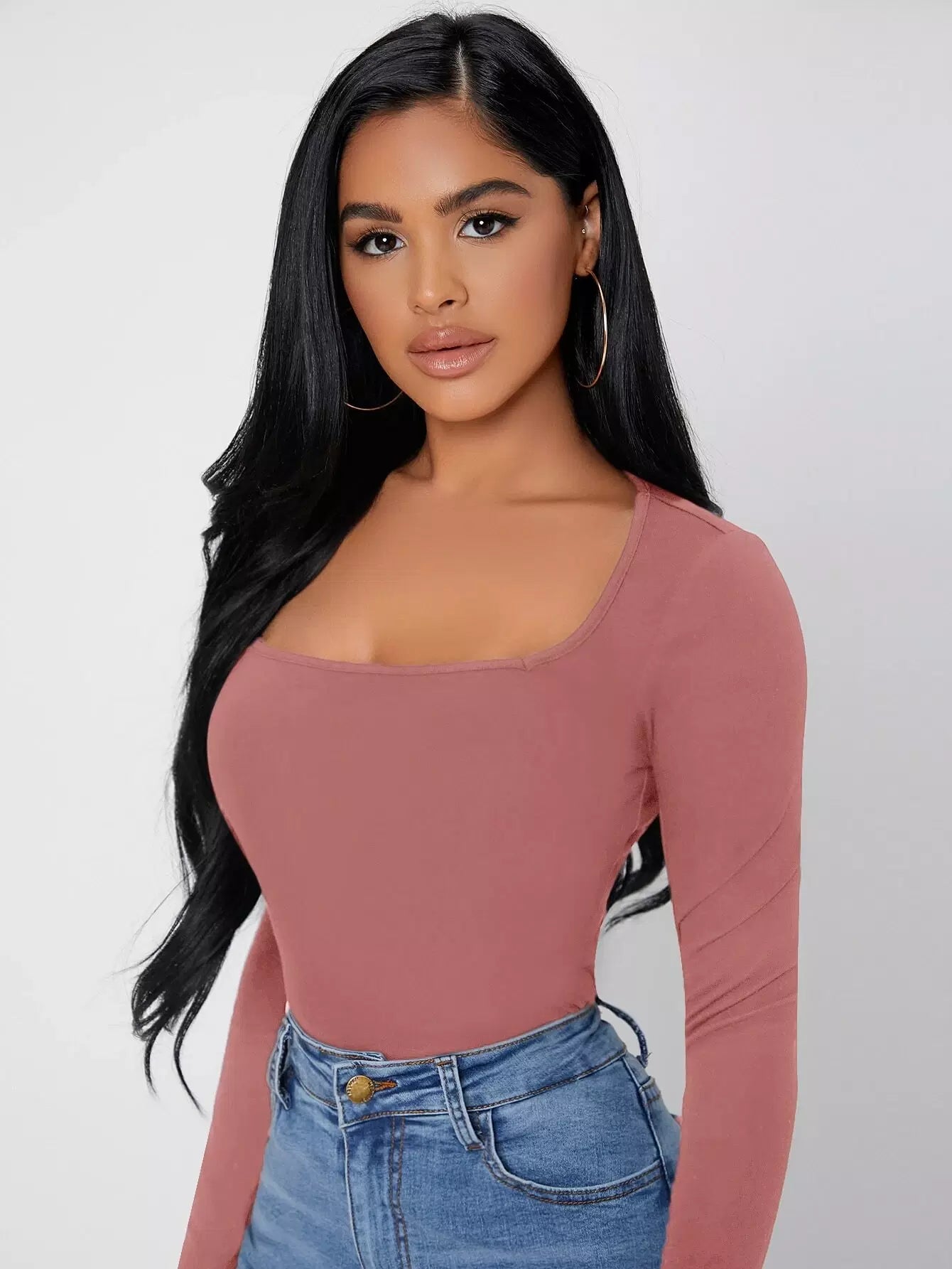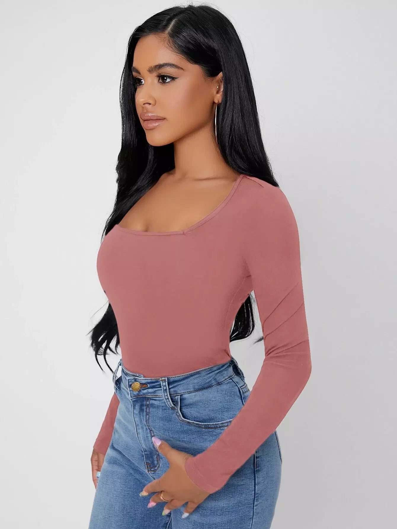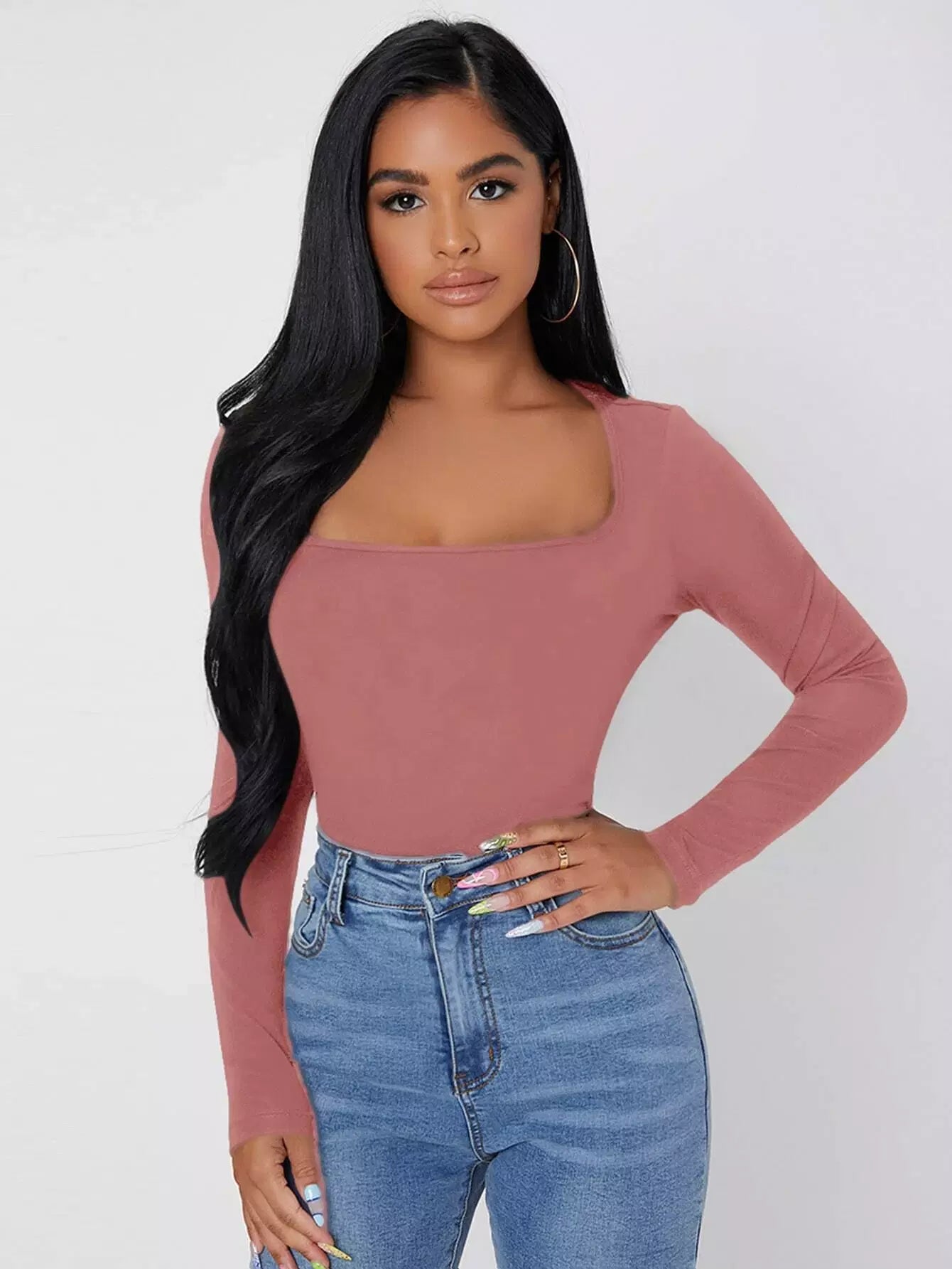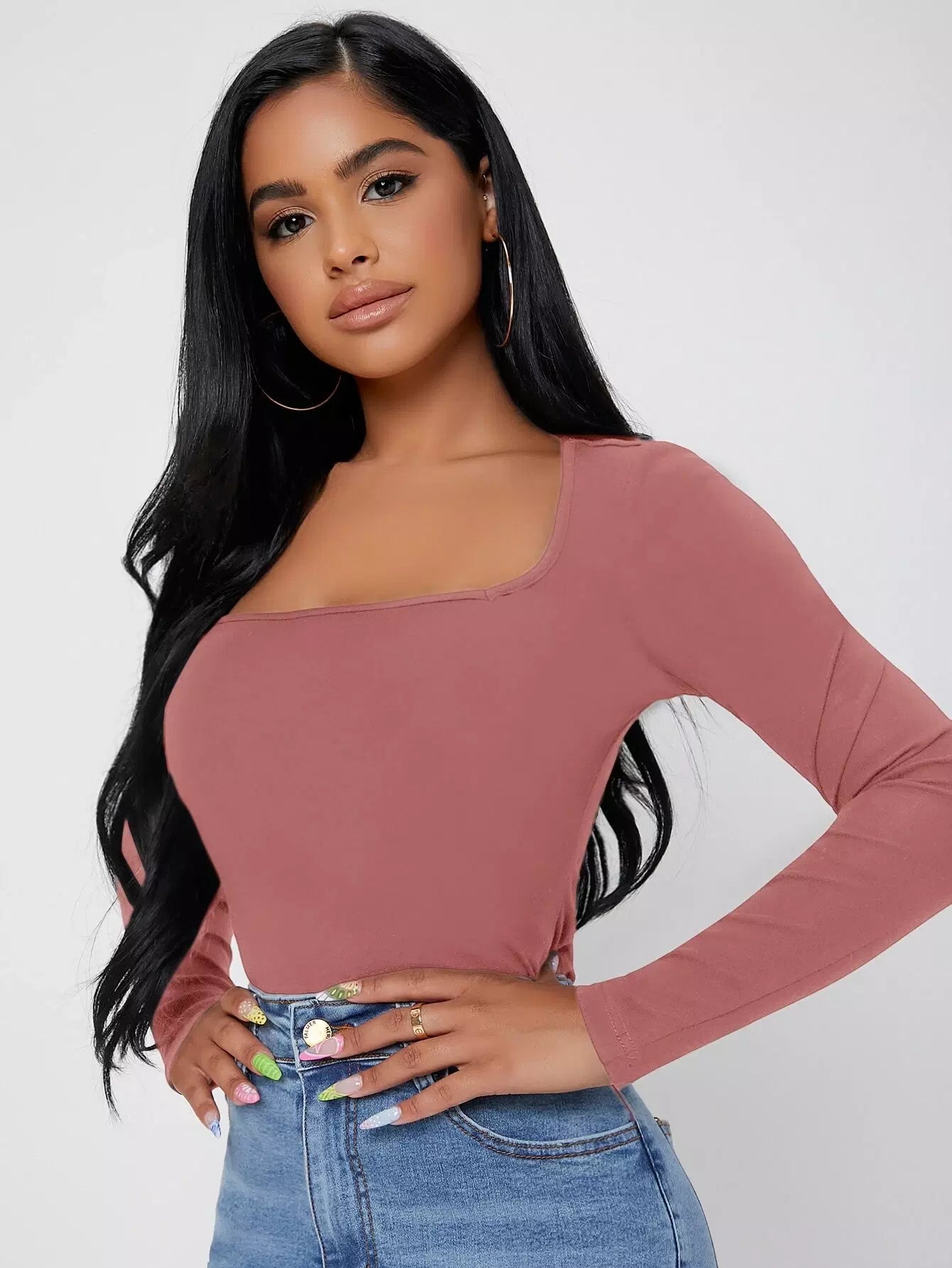 Solid Square Neck Slim Tee