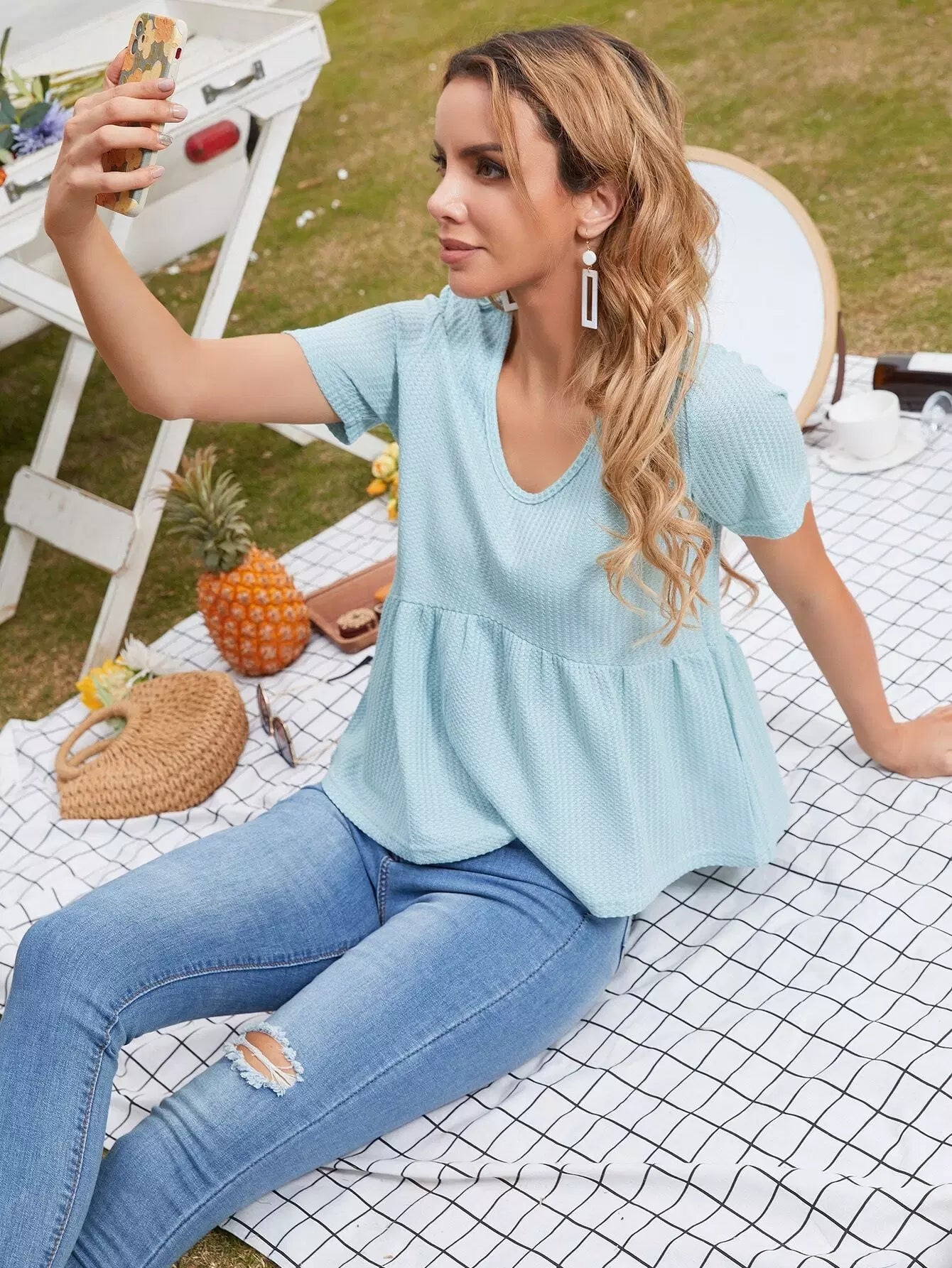 Solid Waffle Knit Smock Top