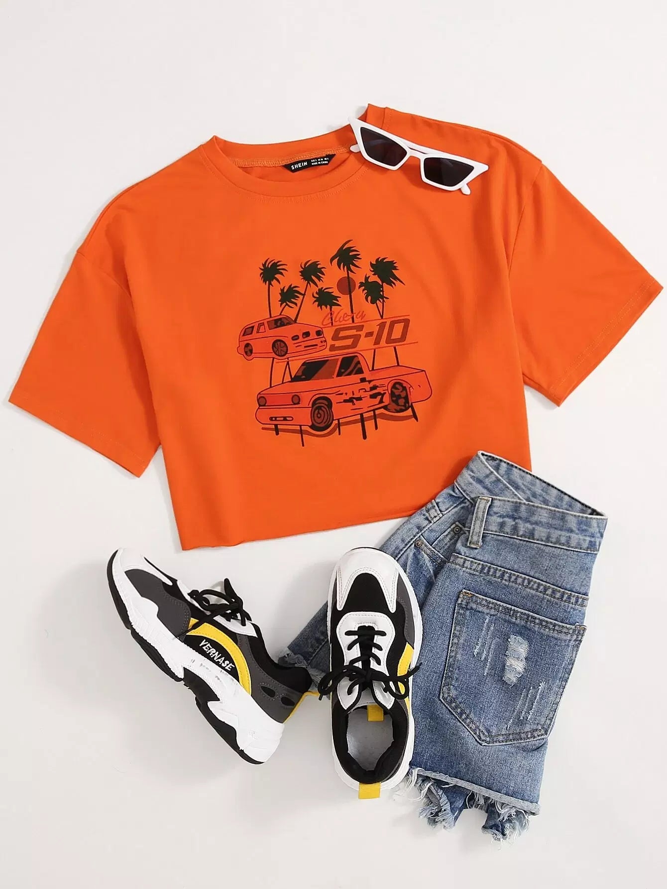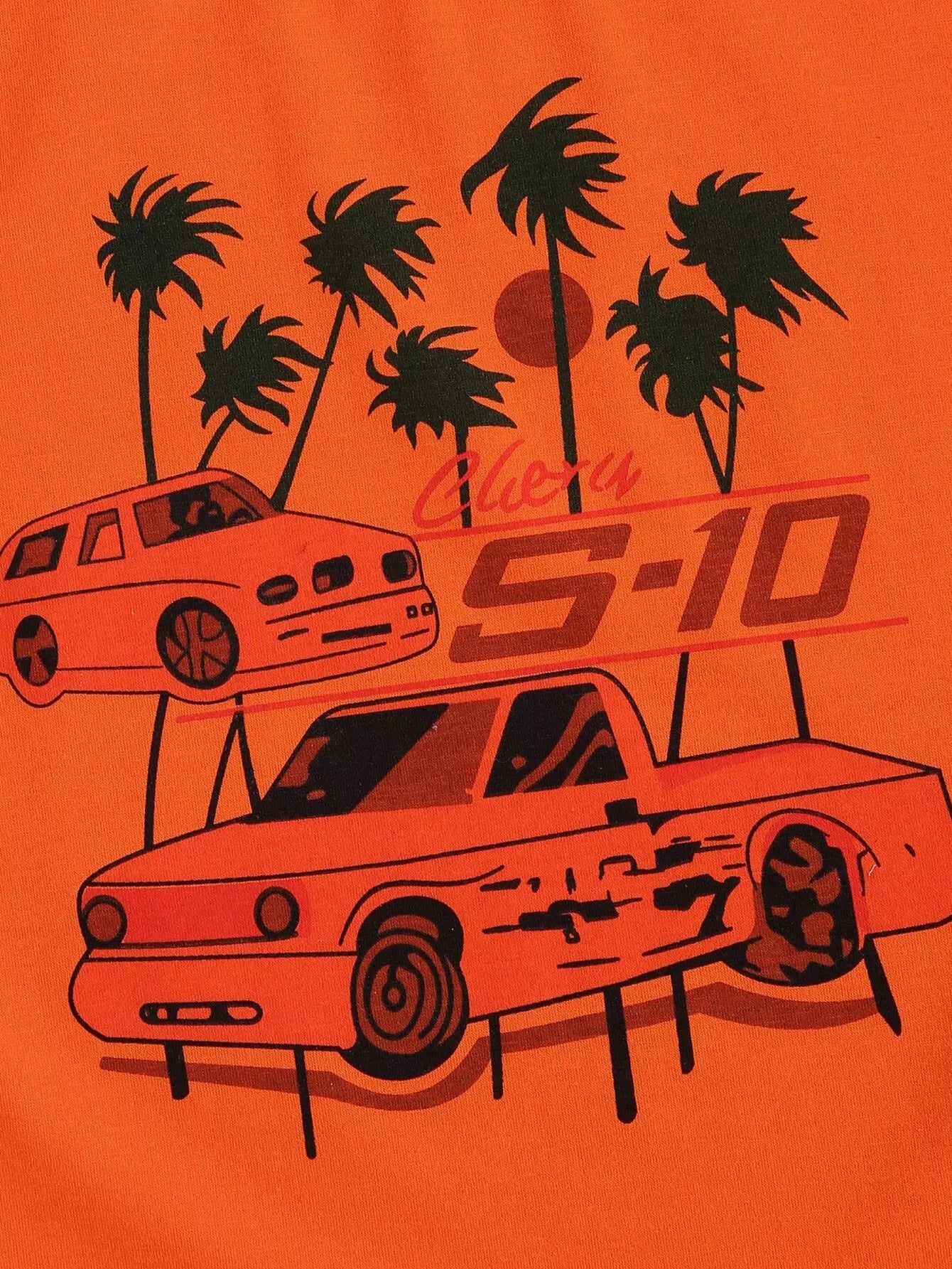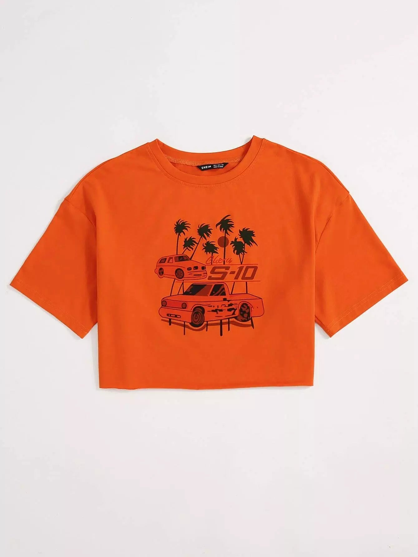 Tropical & Car Print Drop Shoulder Tee