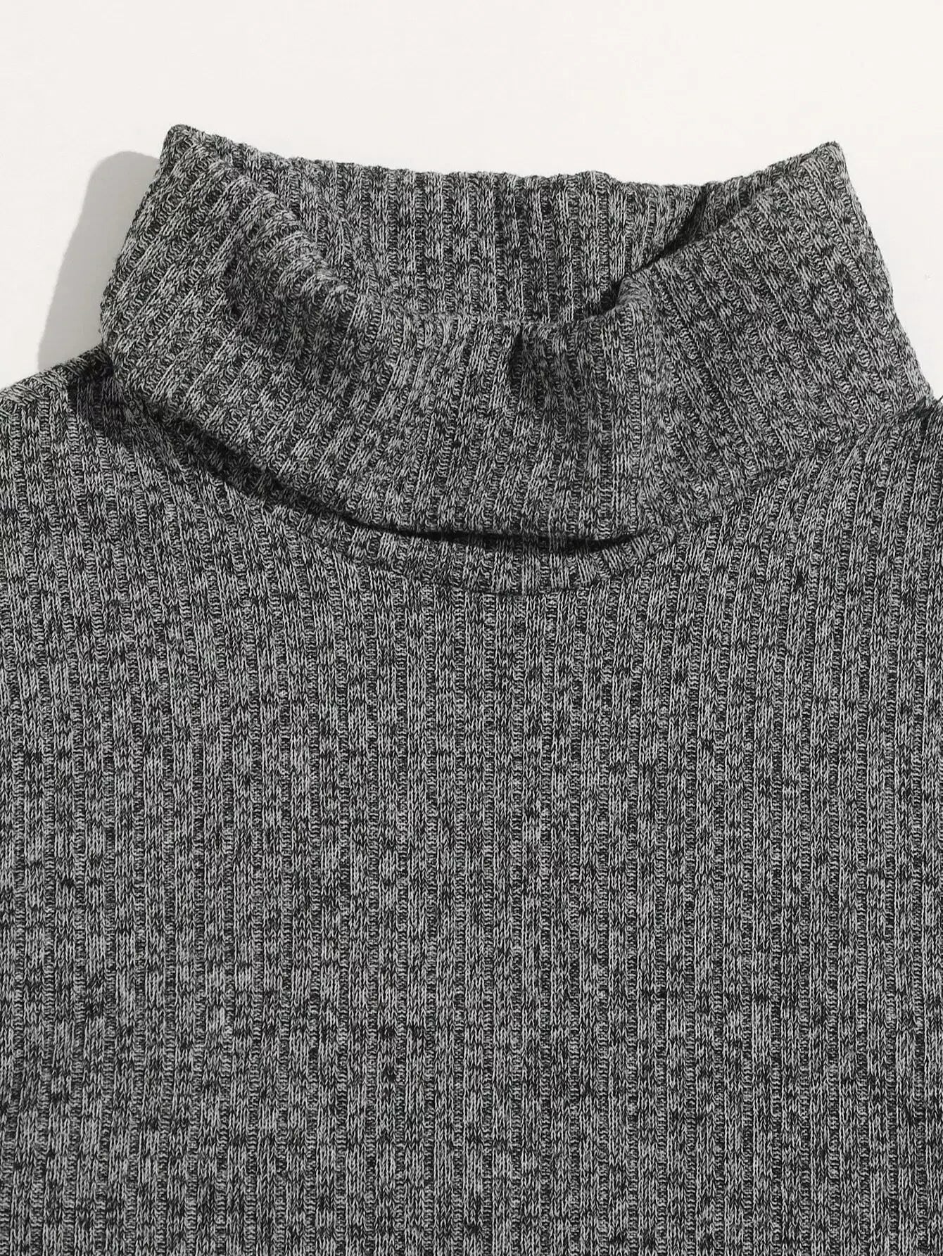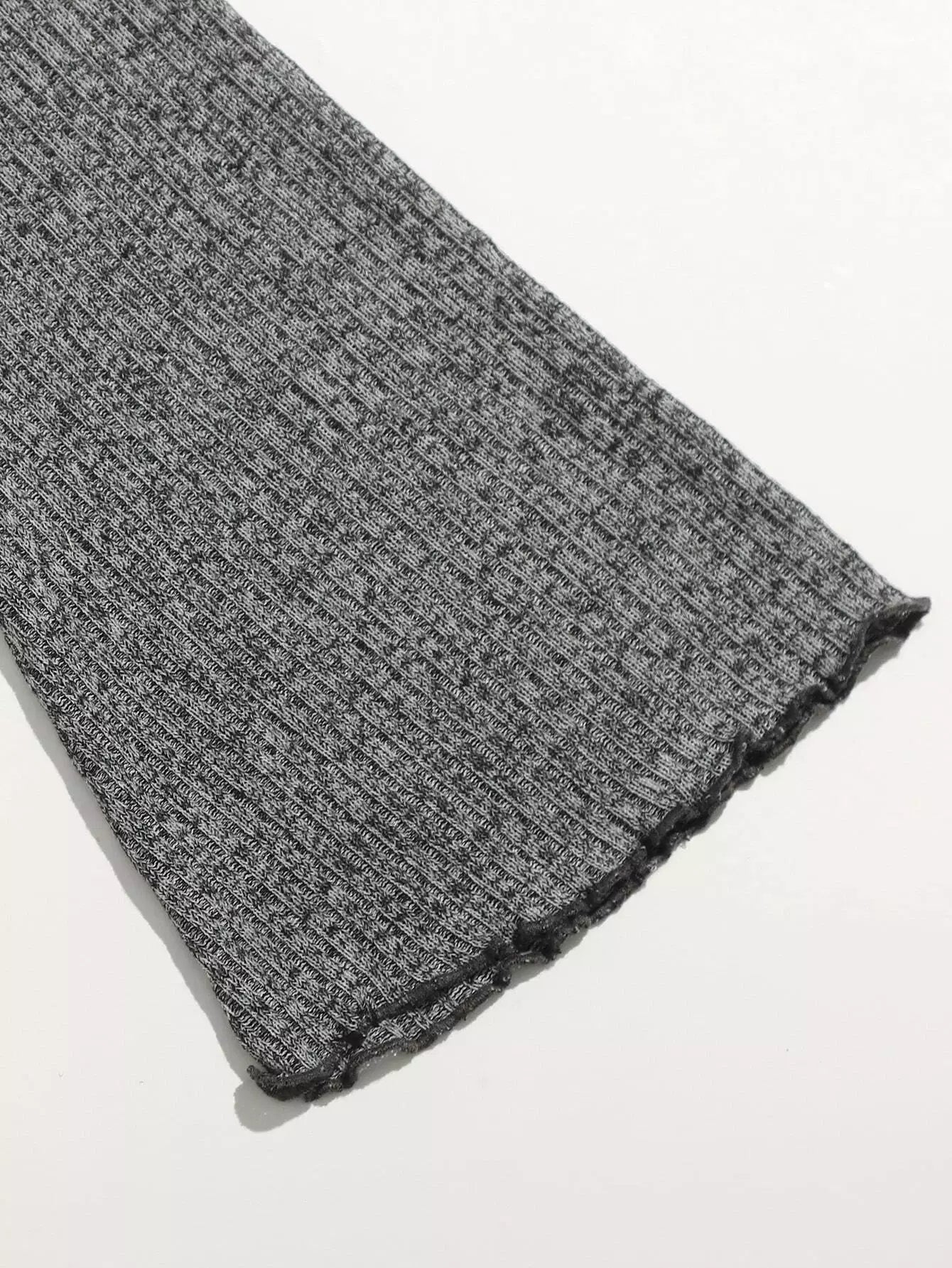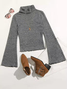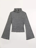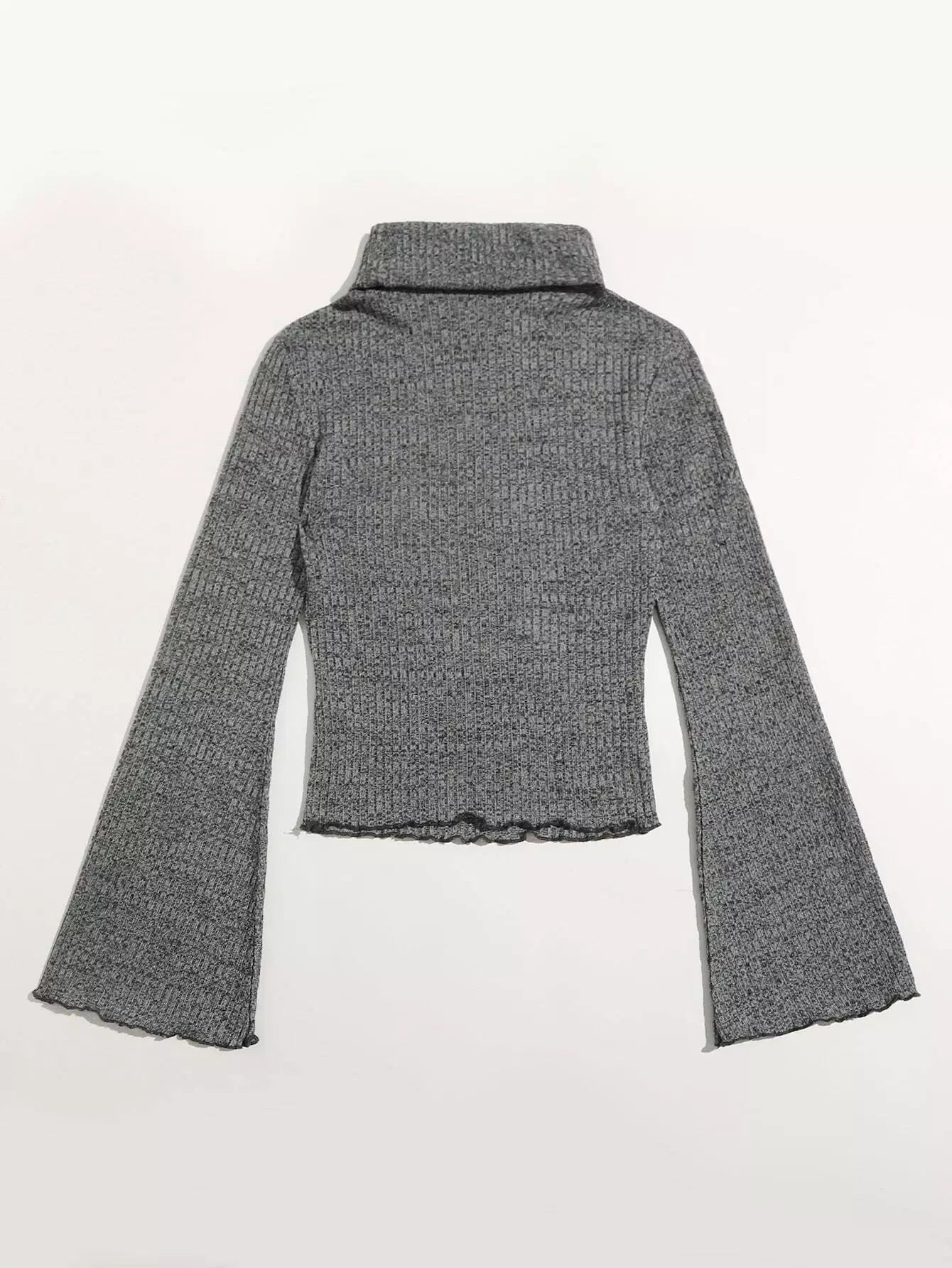 Turtle Neck Bell Sleeve Lettuce Trim Rib-knit Top