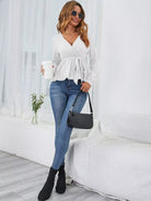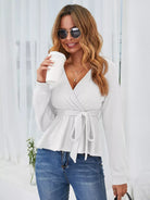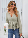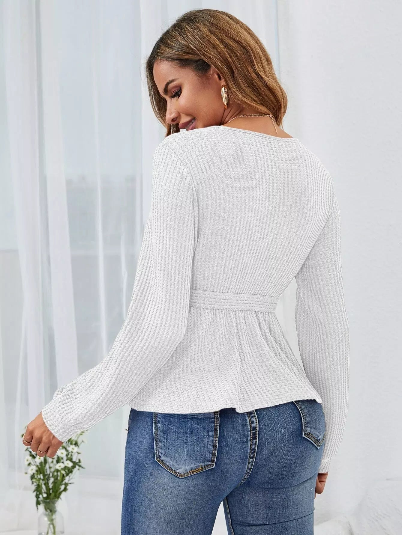 Waffle Knit Surplice Neck Peplum Tee Without Belt