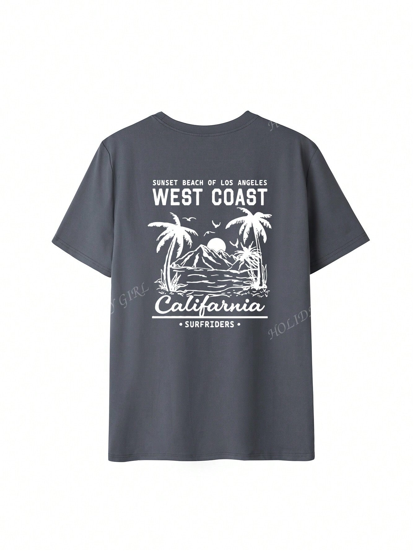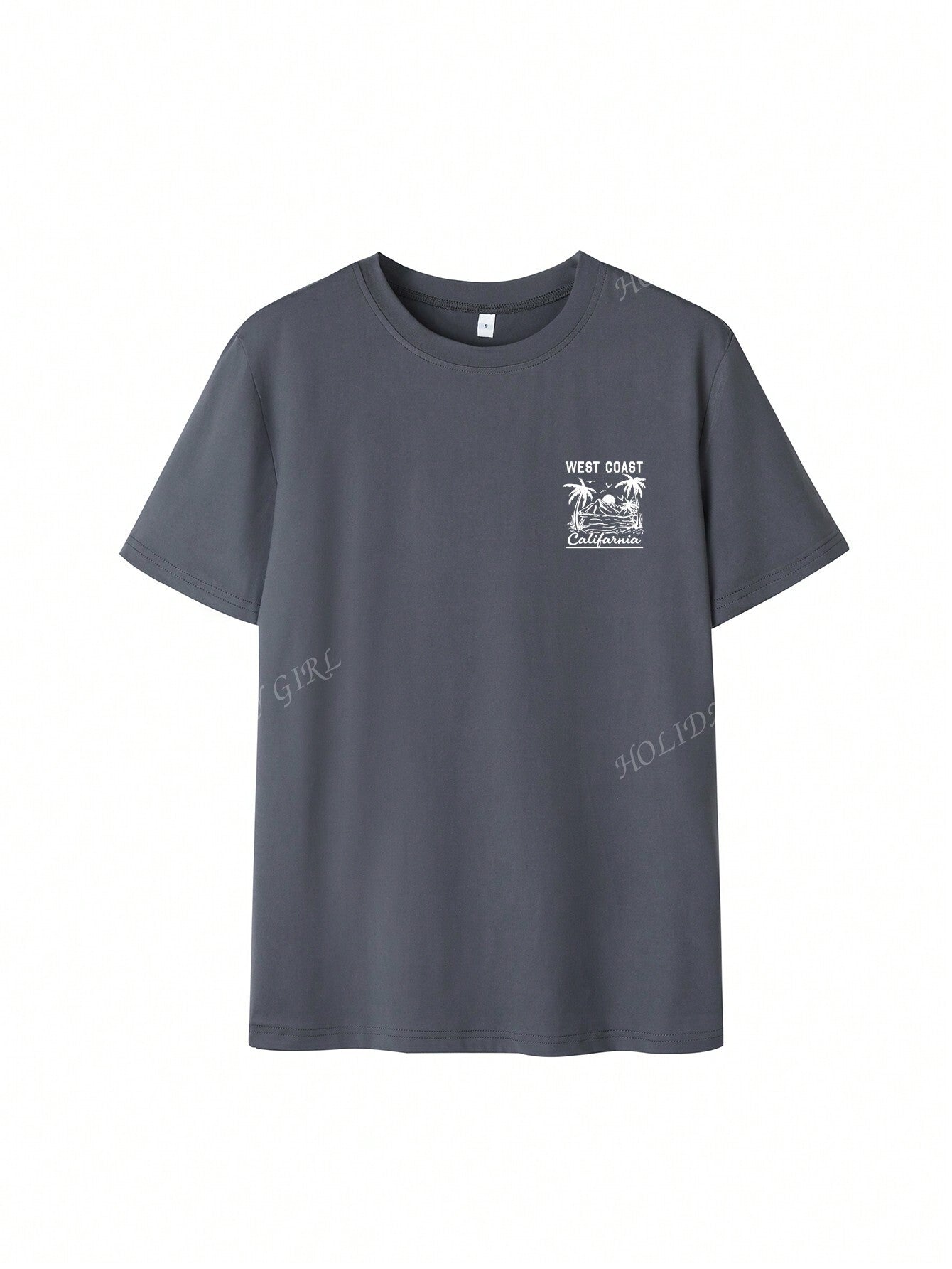 Women's New Summer Casual Round Neck Short Sleeved T-Shirt With Simple And Versatile Palm Tree Slogan