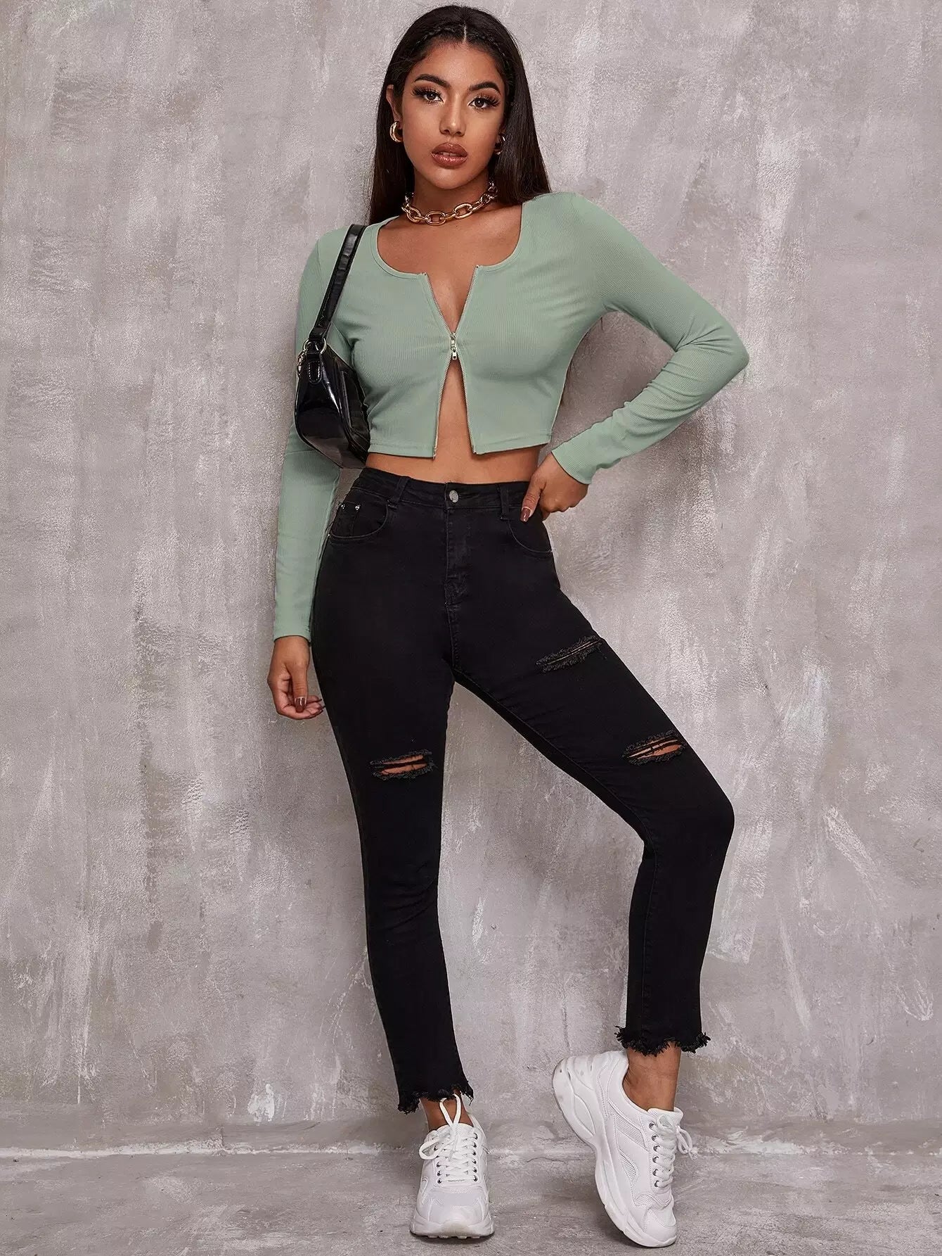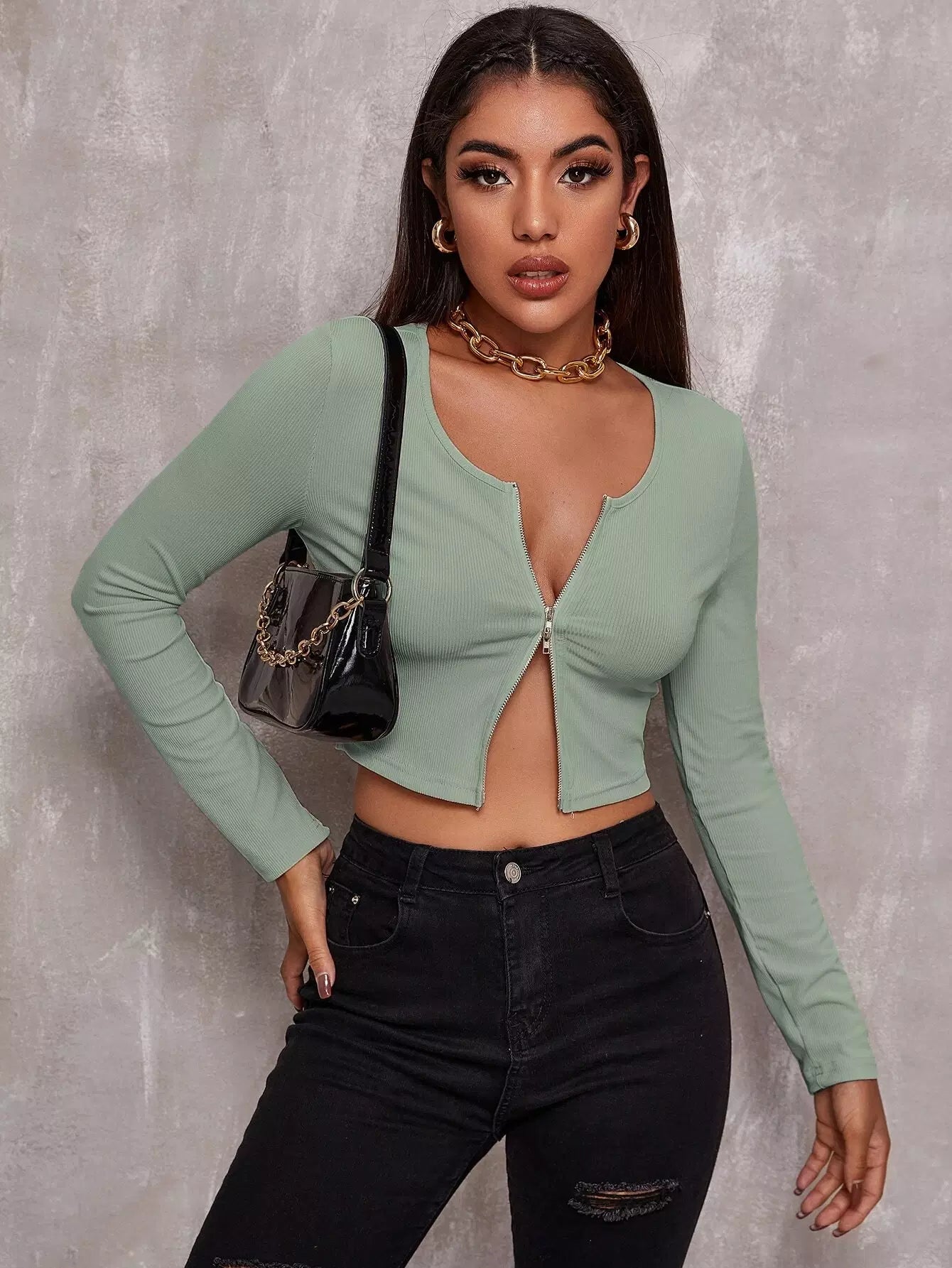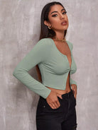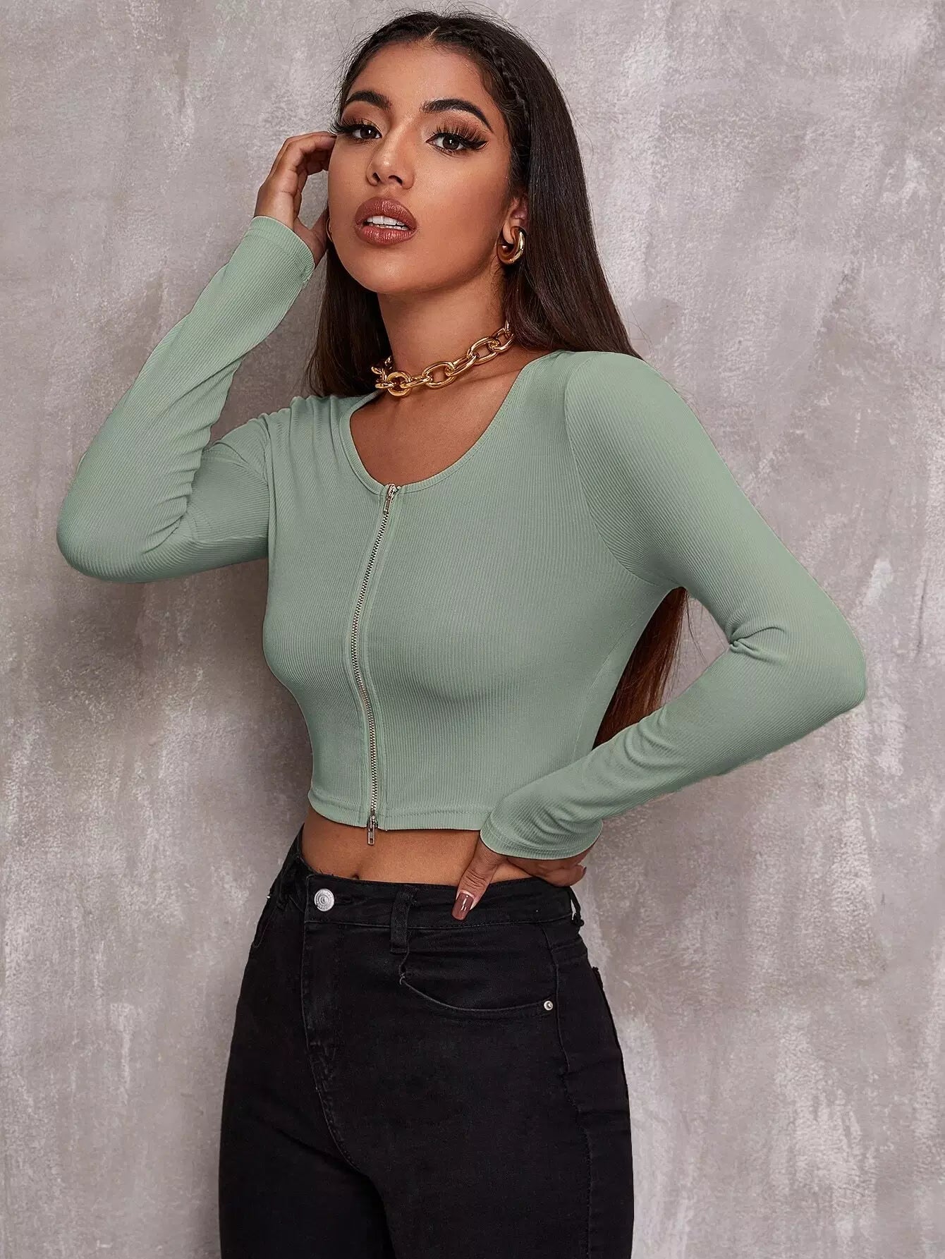 Zip Up Rib-knit Crop Top