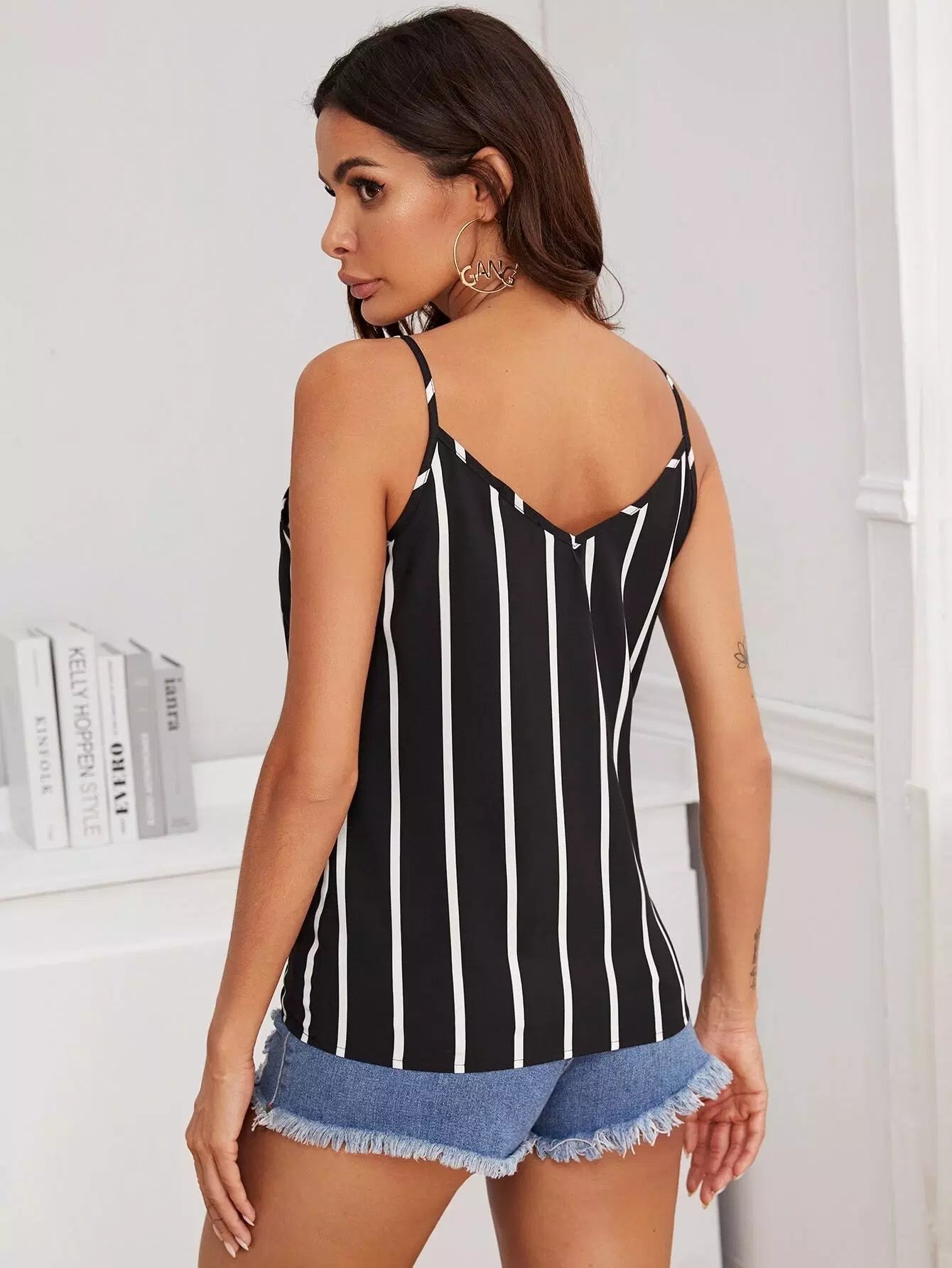 Button Front Striped Cami Top