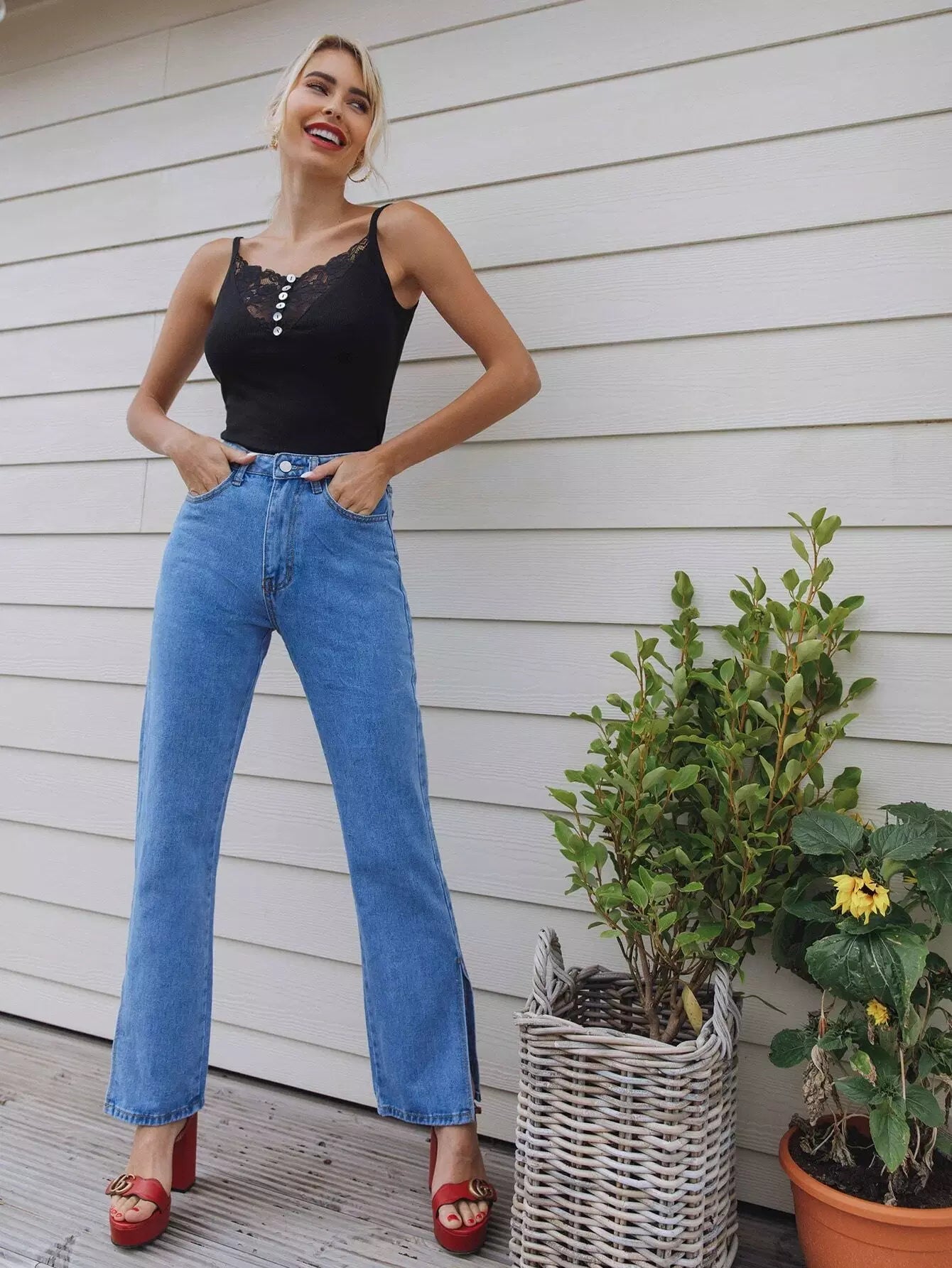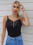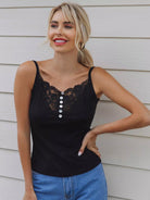 Buttoned Front Lace Yoke Cami Top