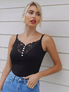Women - Buttoned Front Lace Yoke Cami Top