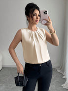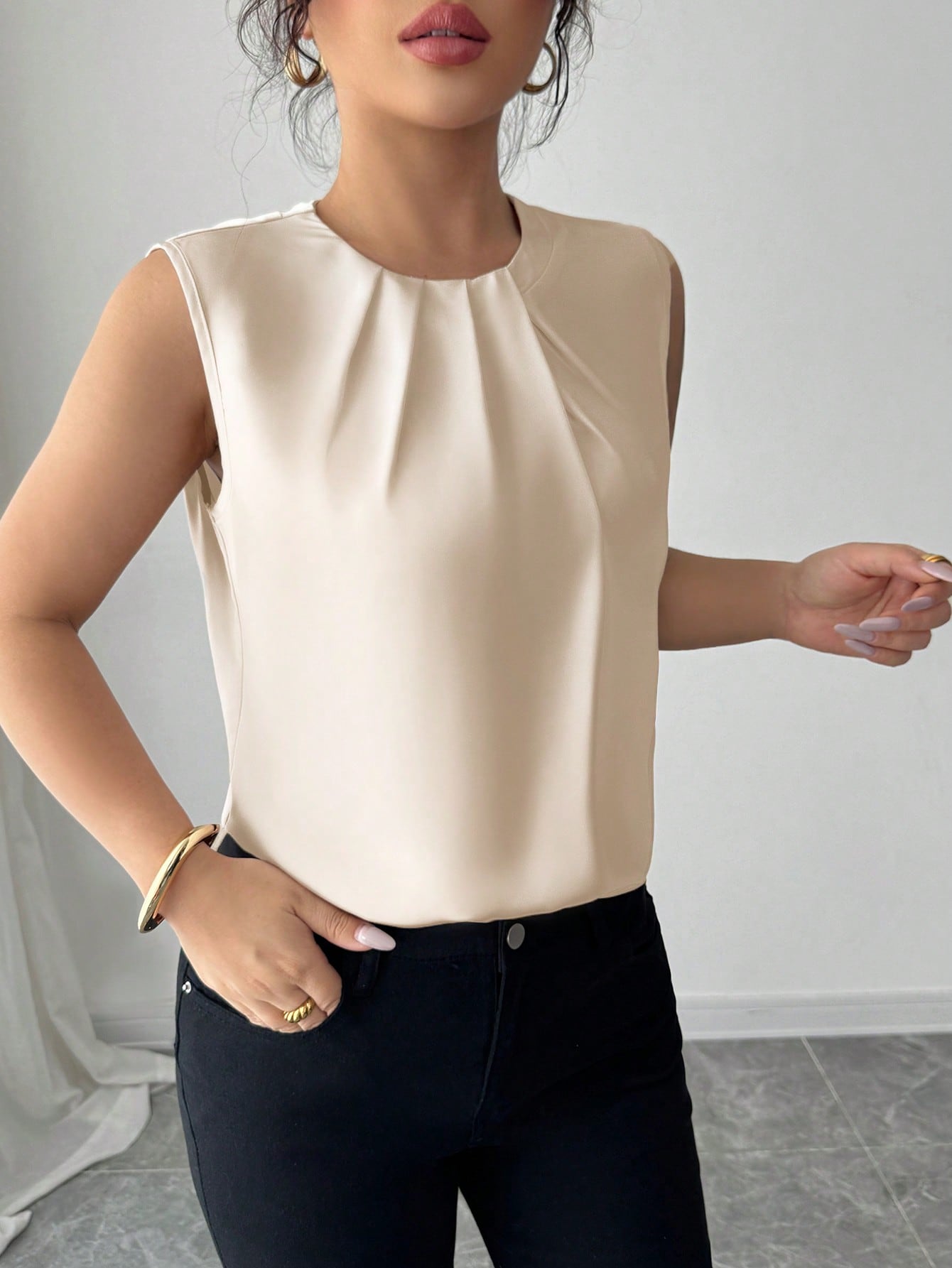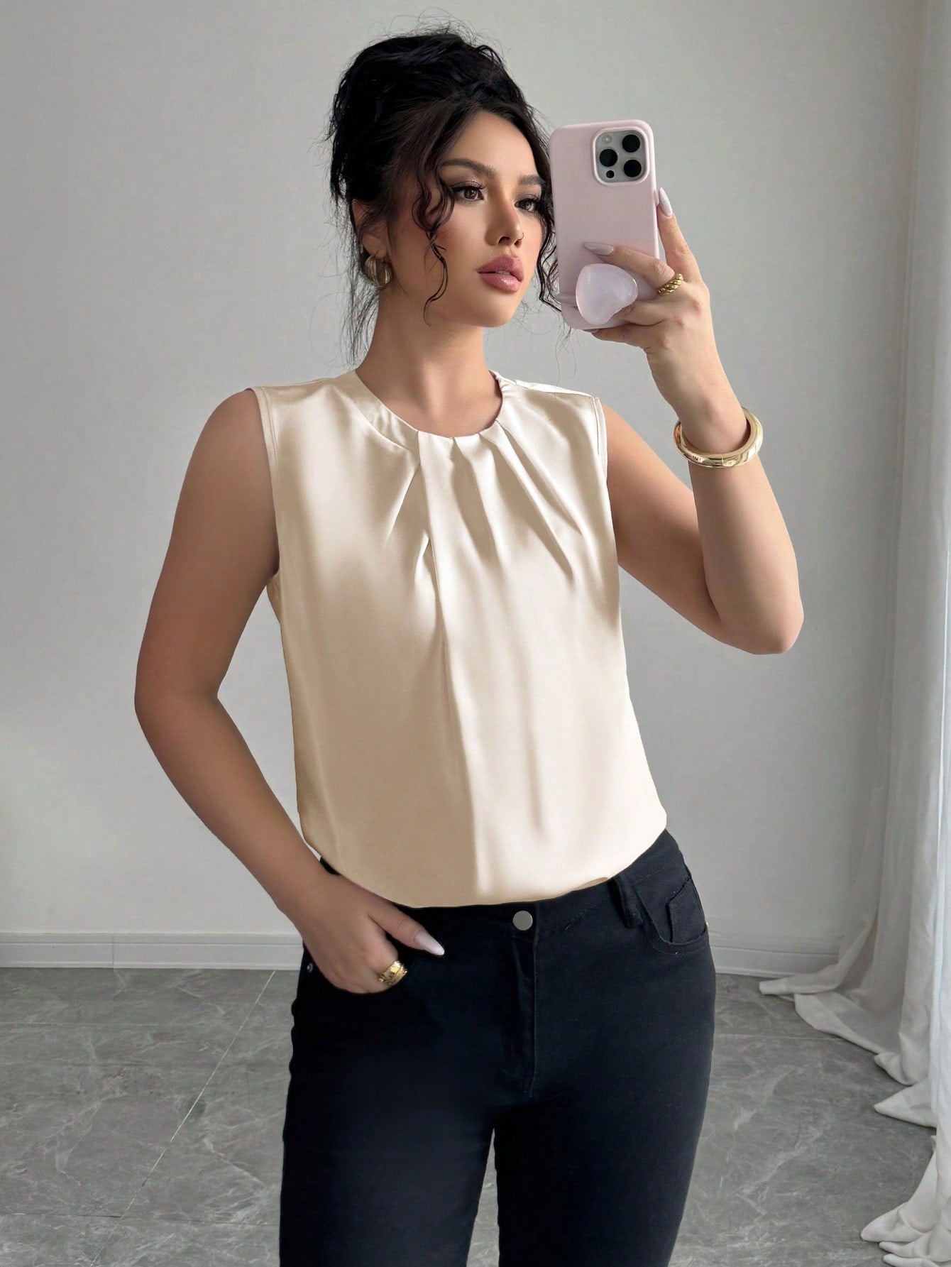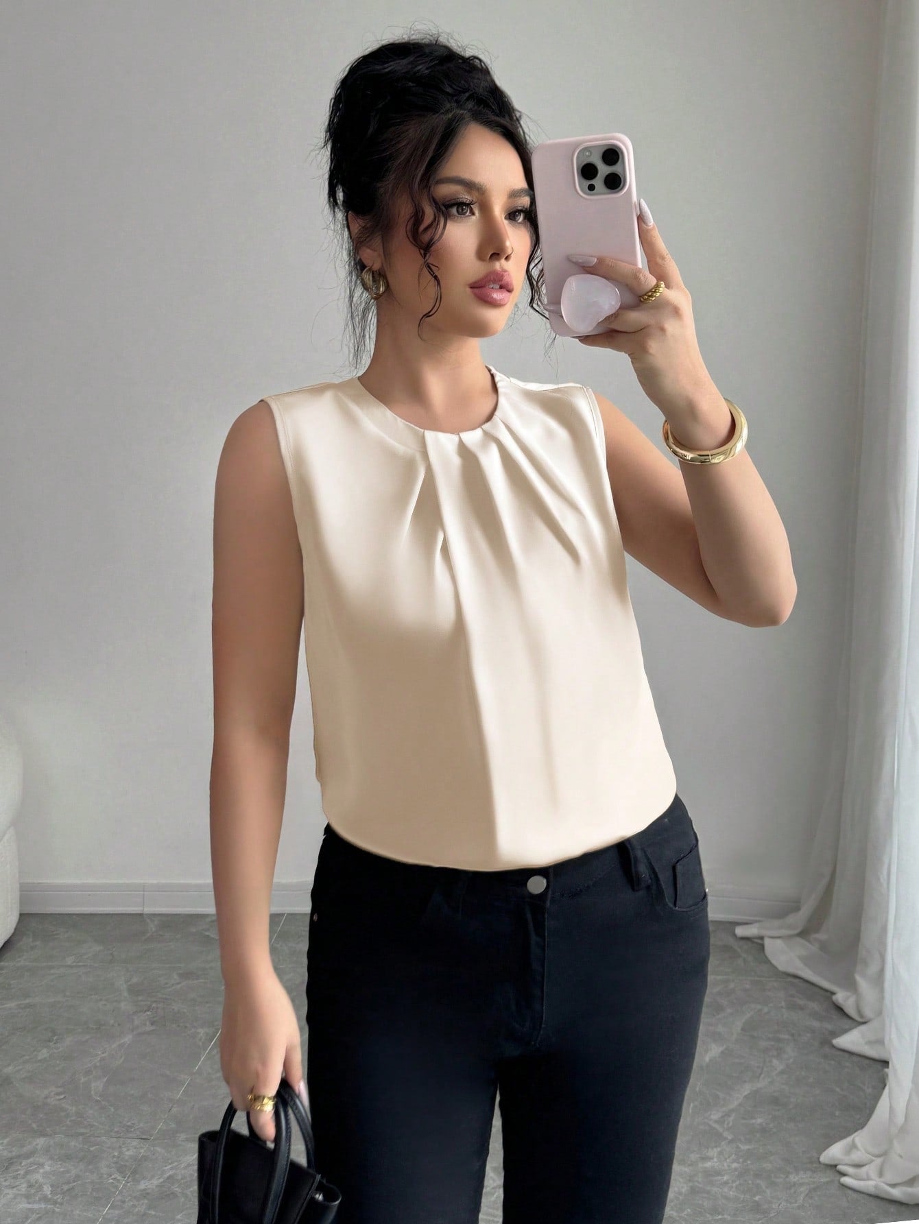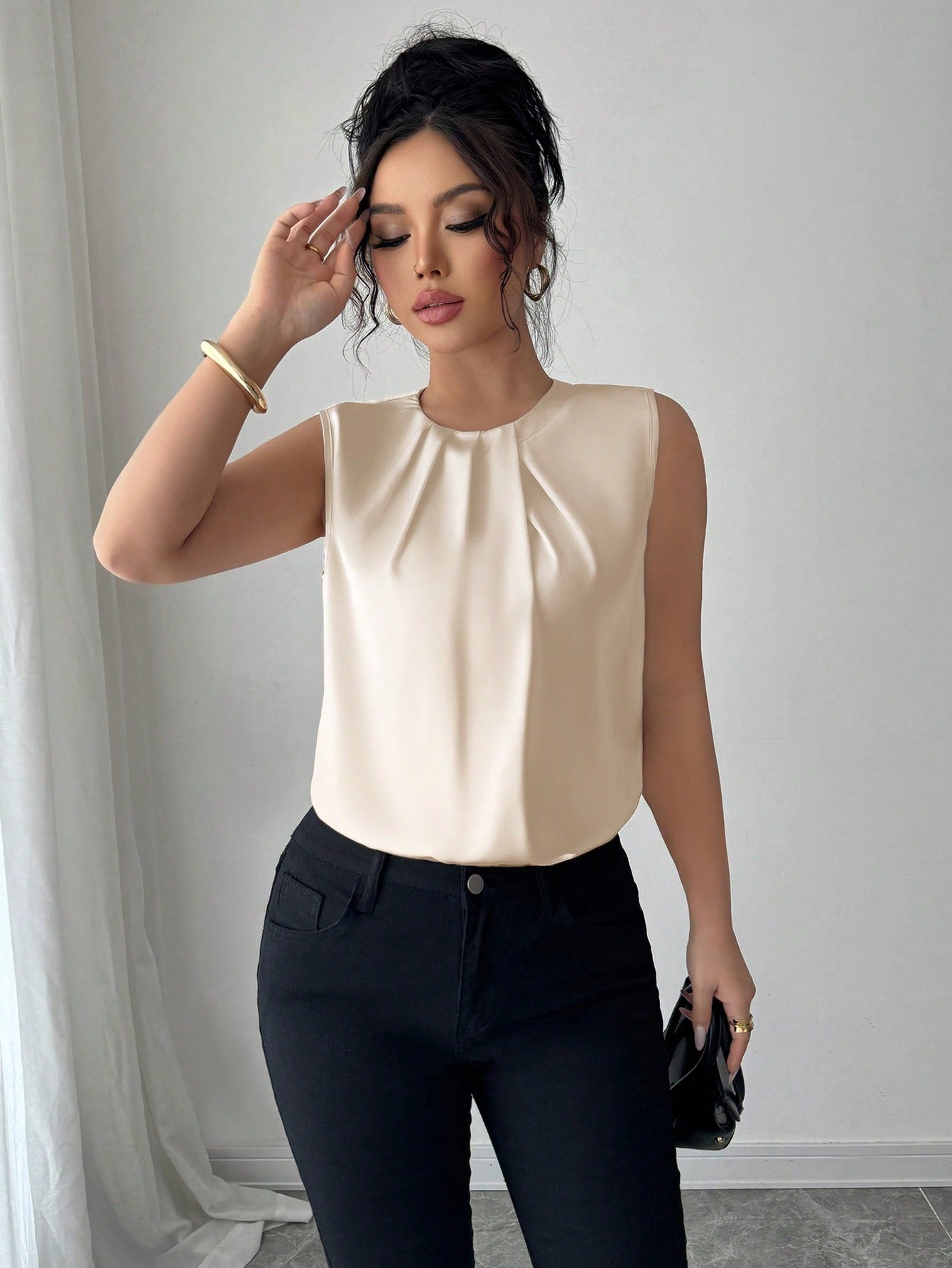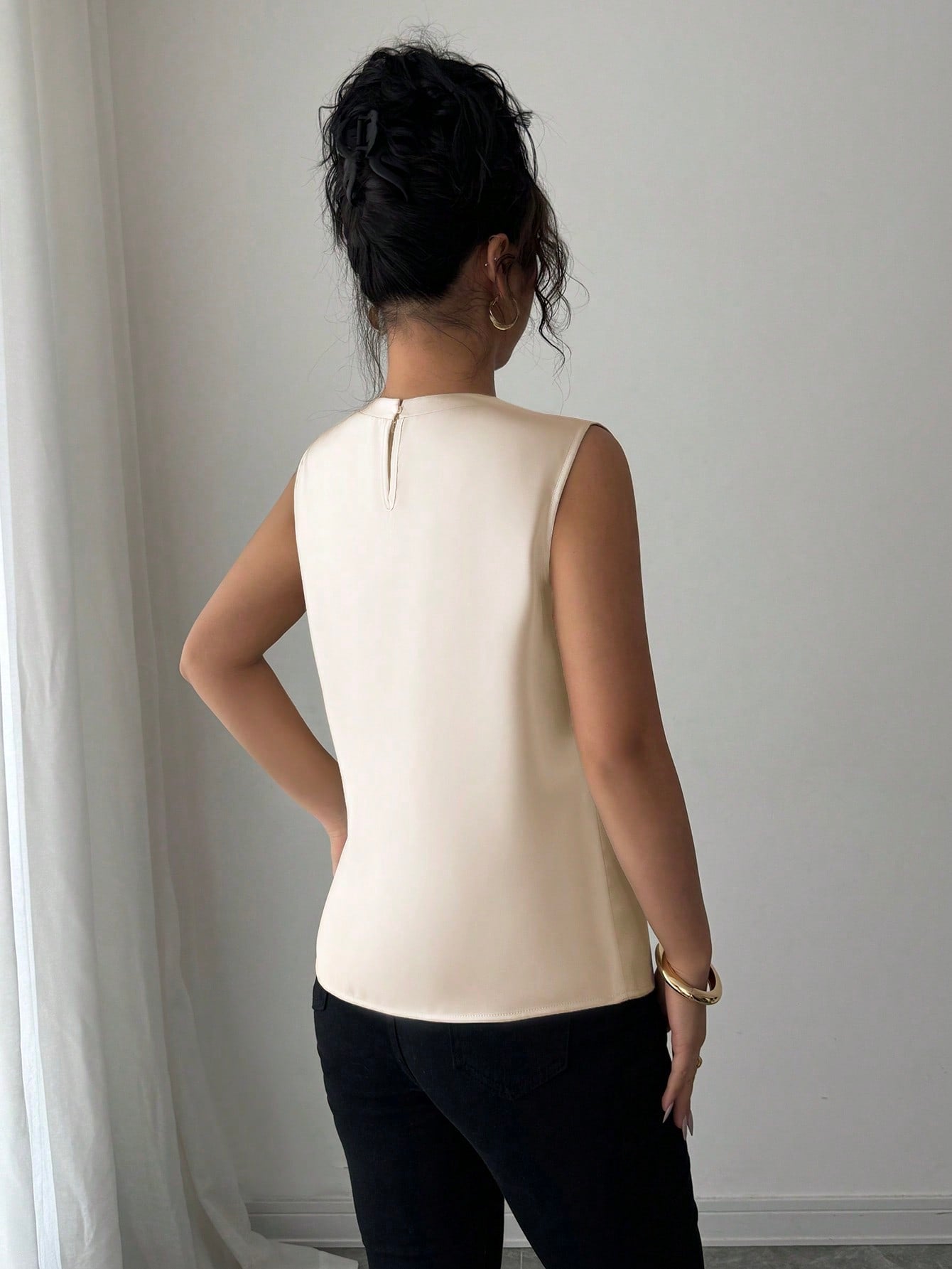 Chiquease Women Elegant Pleated Satin Camisole Top, Suitable For Commuting And Casual Wear