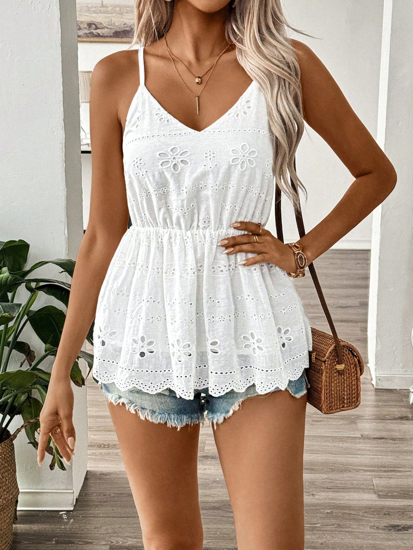 Chiquease Women's Fashionable Summer Sweet Lace Trimmed Waist Cinched A-Line Tank Top