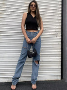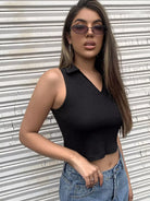 Collared Rib-knit Tank Top