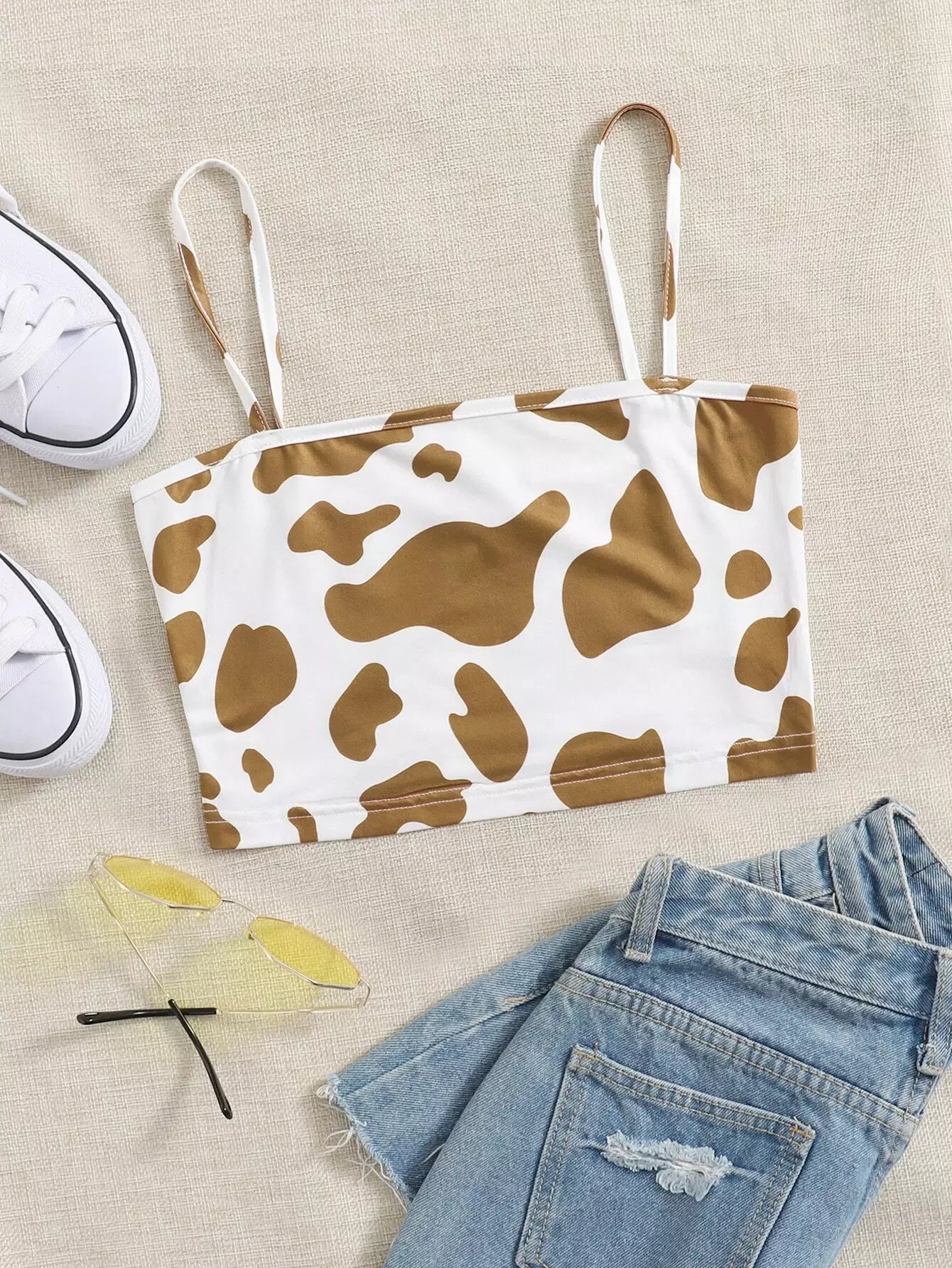 Cow Print Crop Cami Top