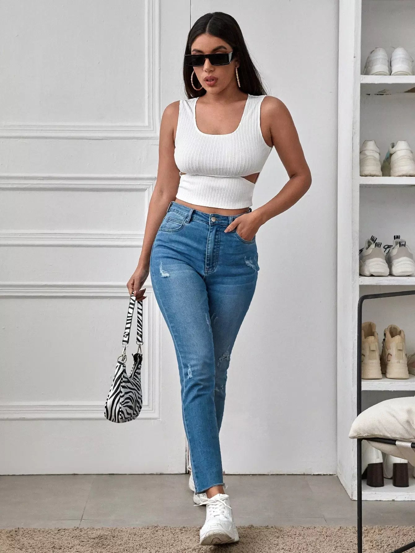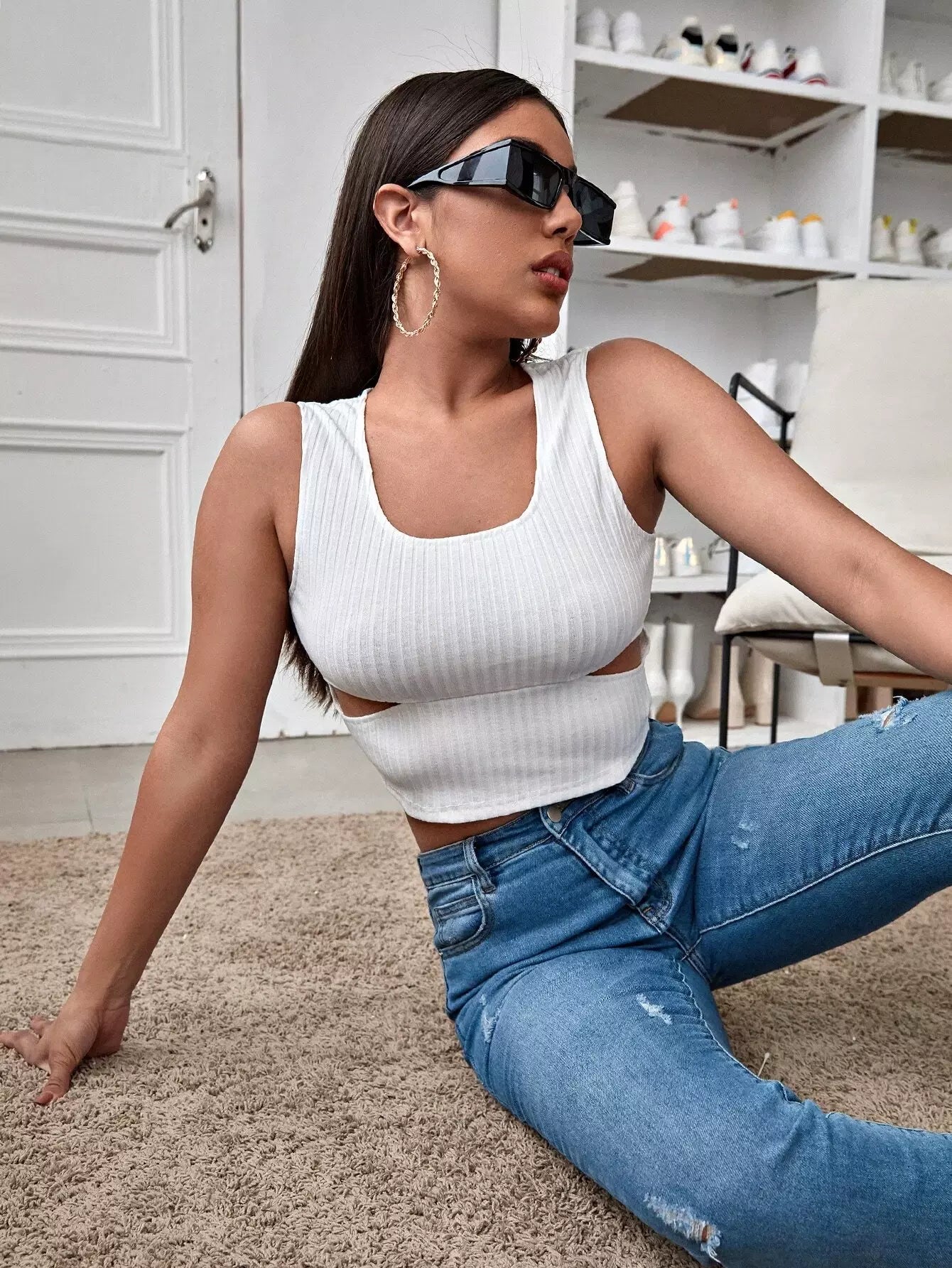 Cut Out Rib-knit Tank Top