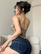 DAZY Snake Skin Print Backless Crop Cami Tops