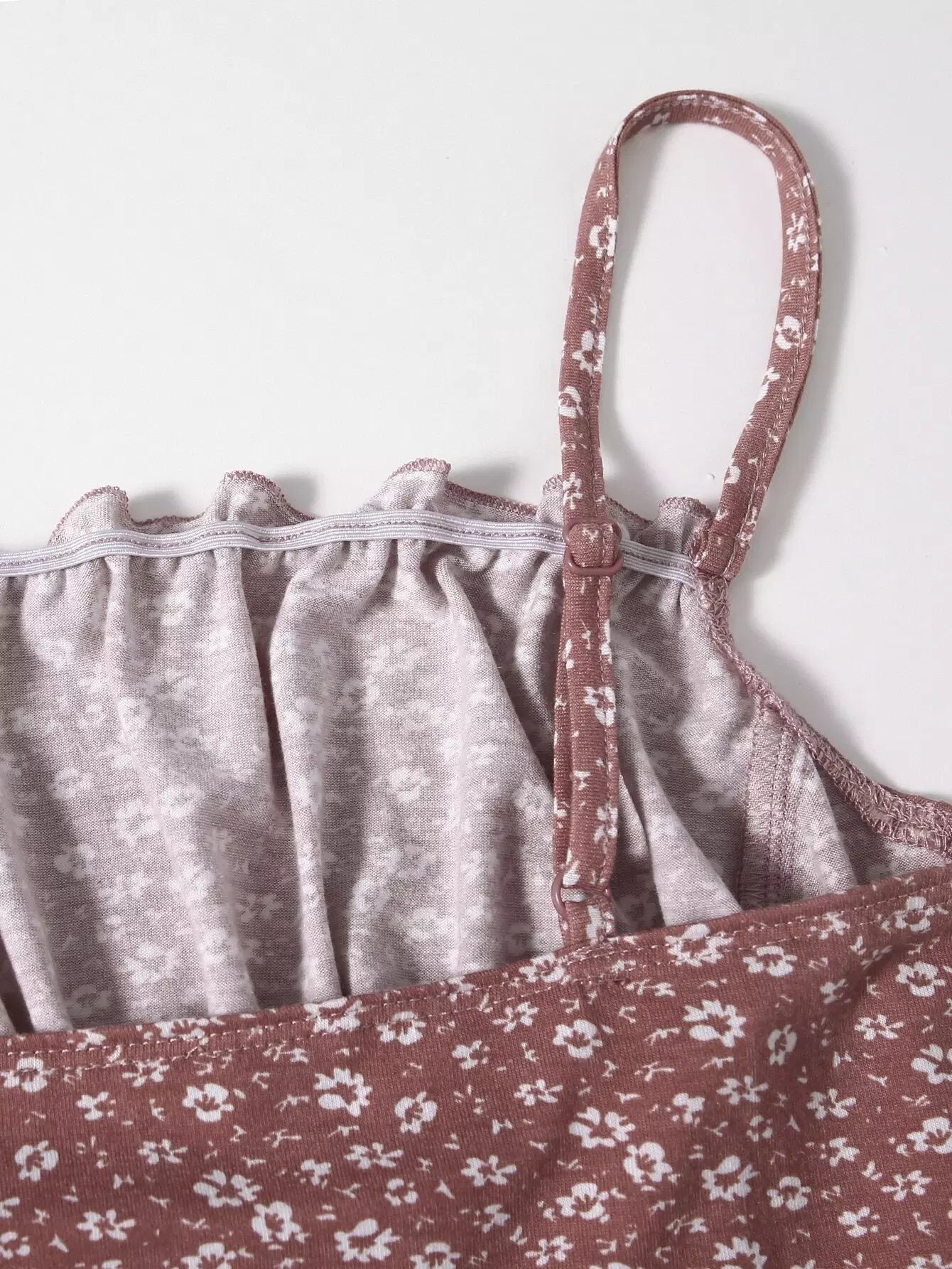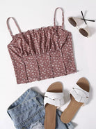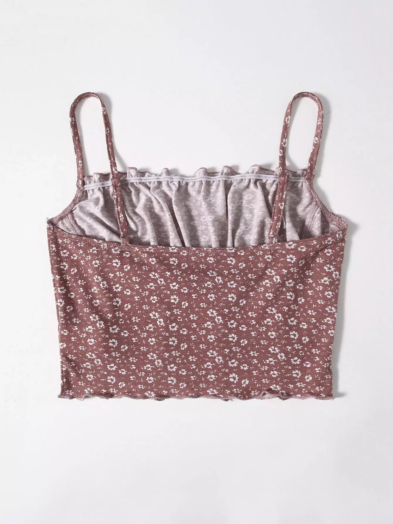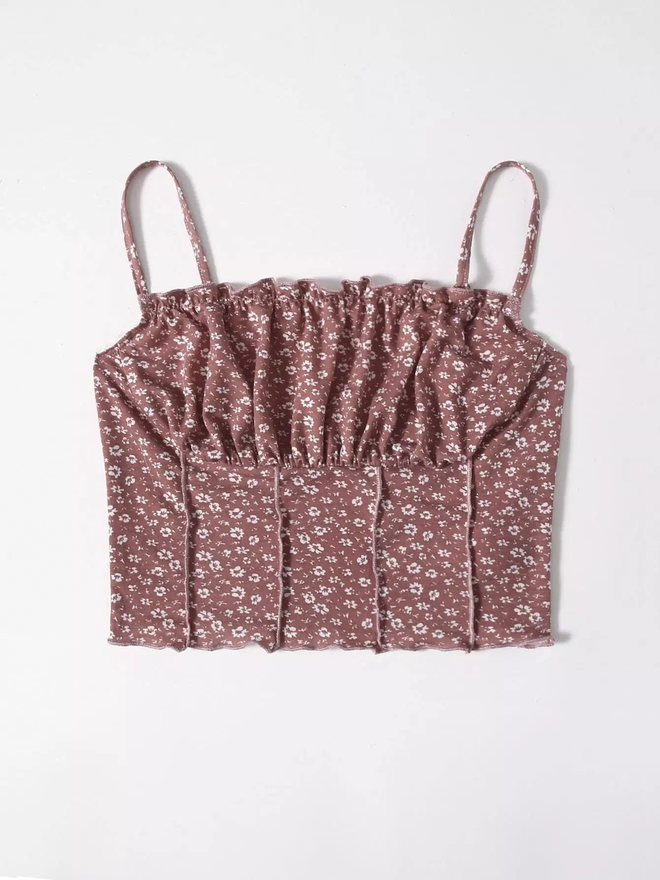 Ditsy Floral Ruched Bust Lettuce Trim Cami Top