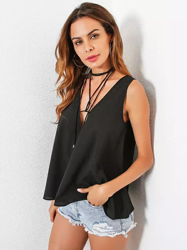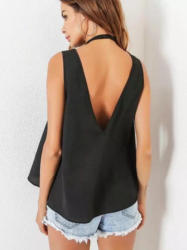 Double Plunging Tank Top With Wrap Choker