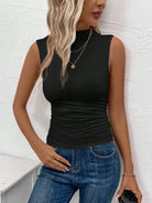 Easowa Mock Neck Ruched Tank Top