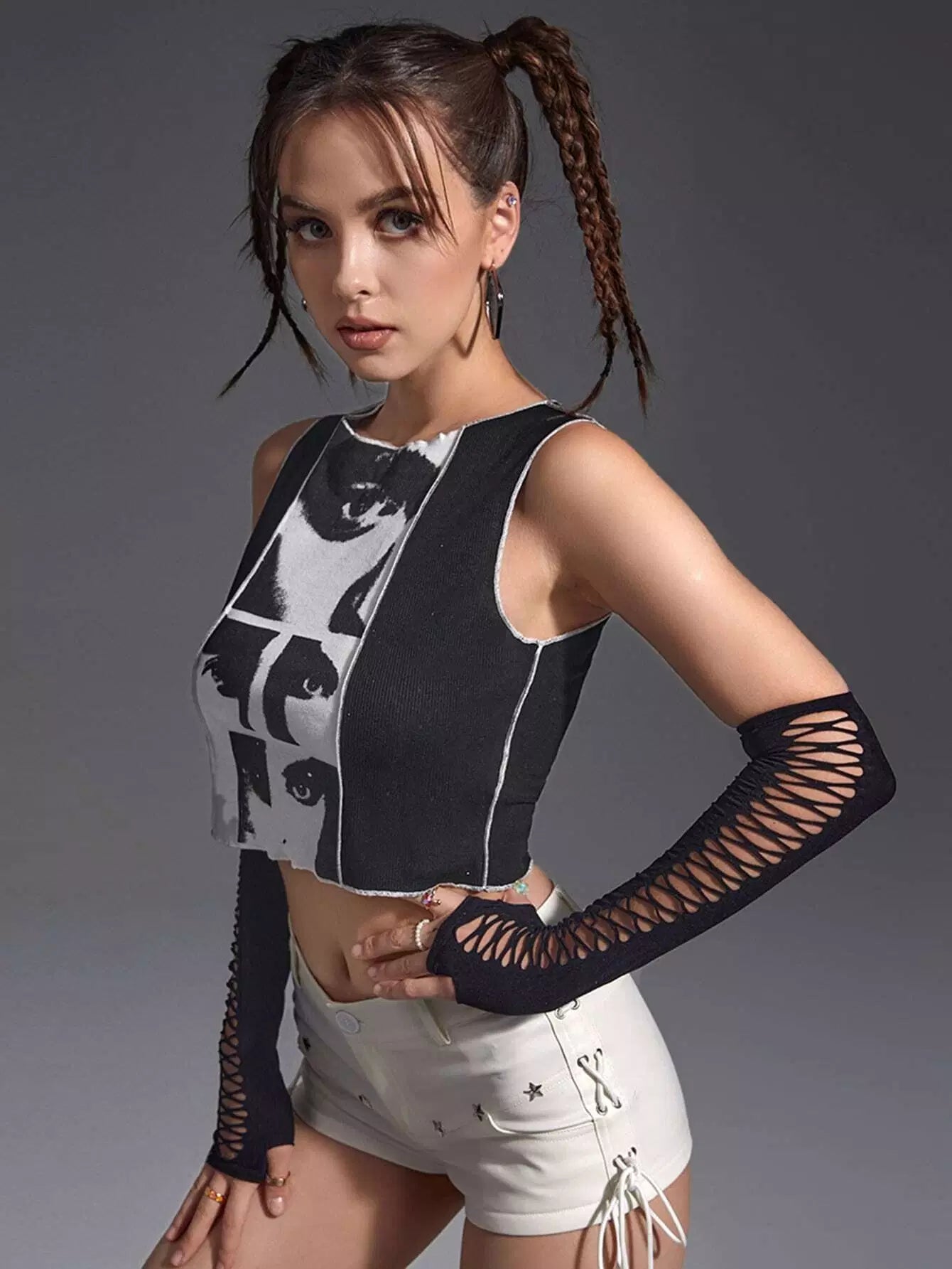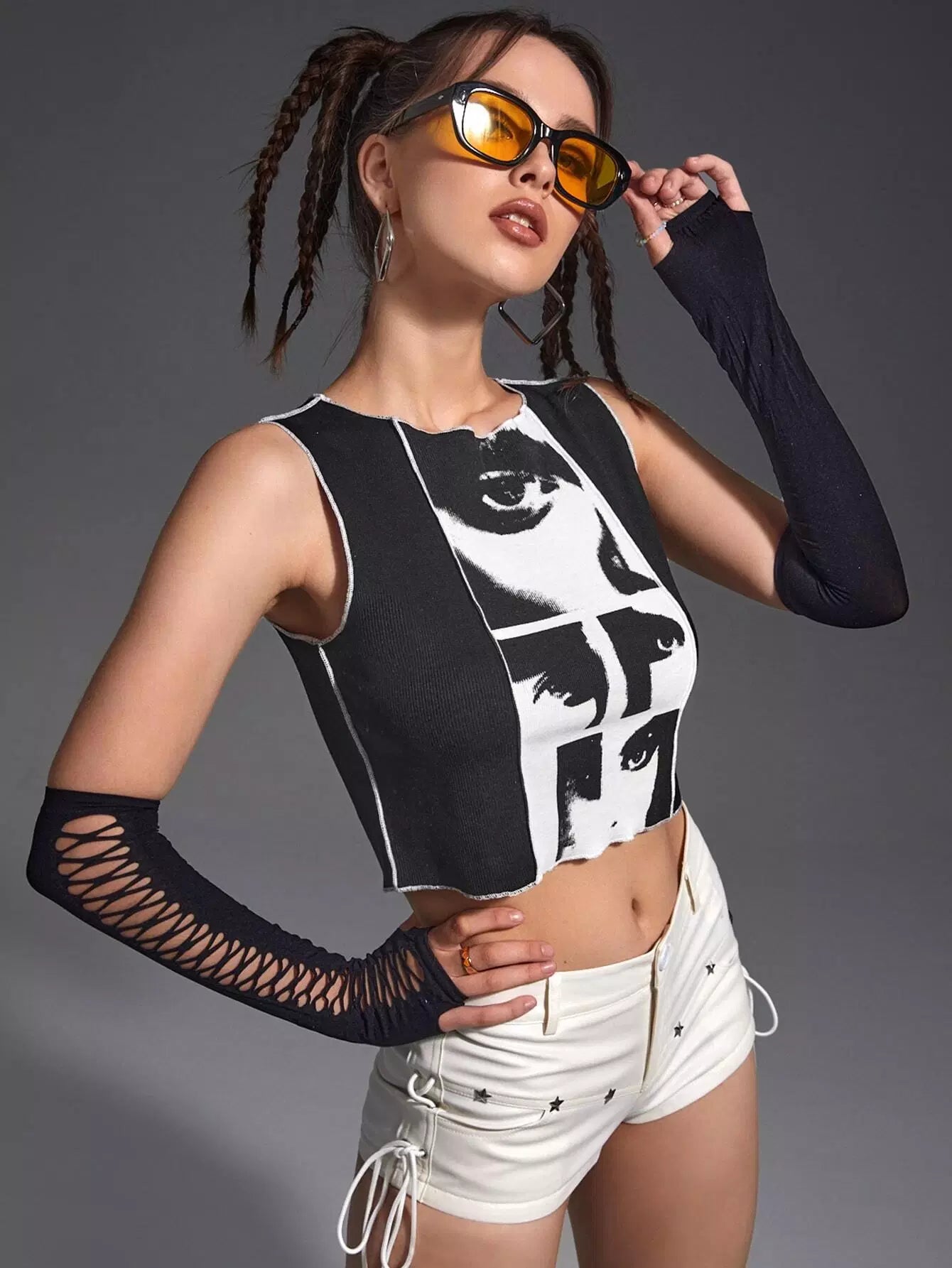 Figure Graphic Contrast Stitch Crop Tank Top Without Gloves