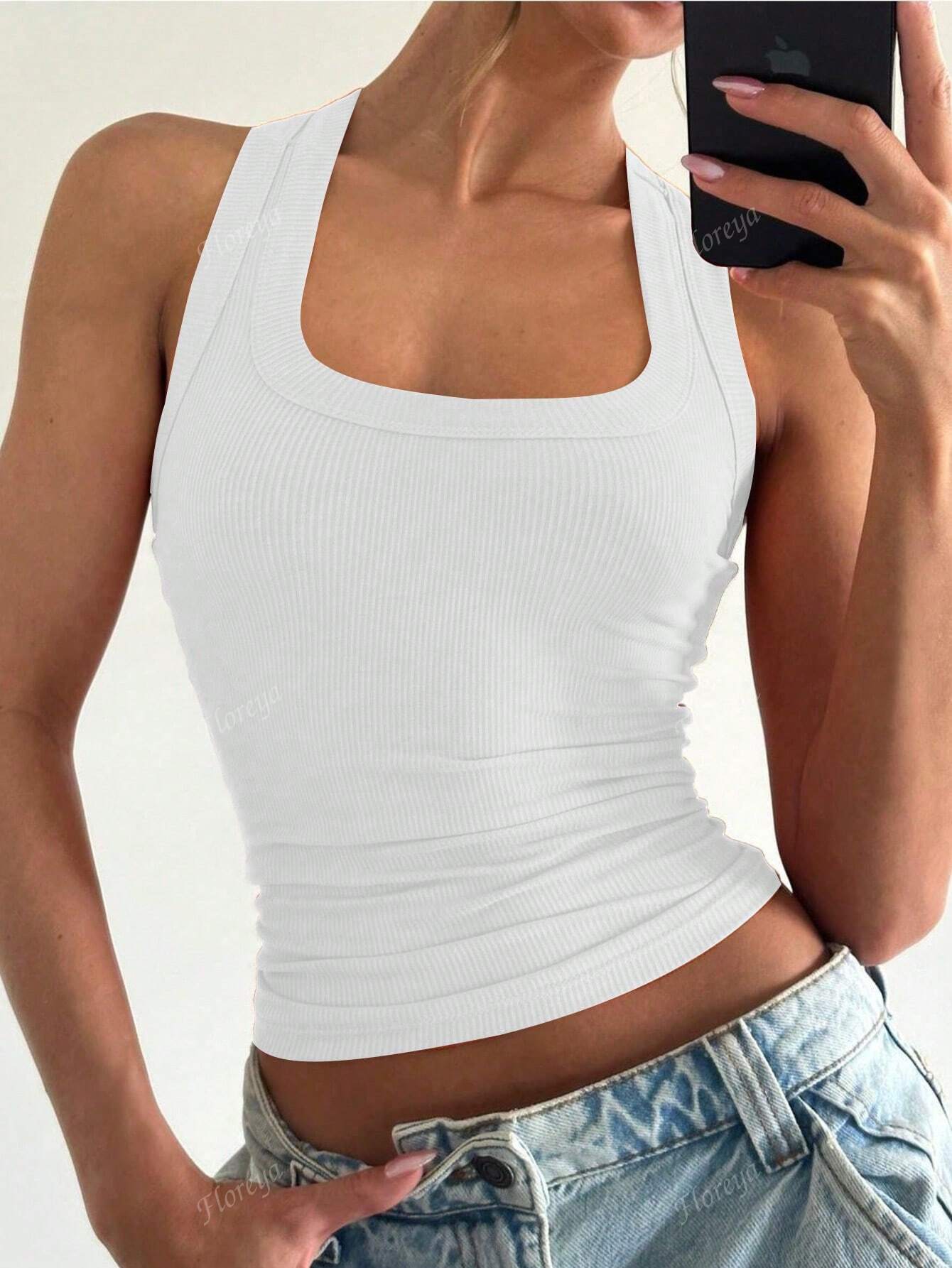 Floreya Square Neck Camisole For Women, Summer Slim Fit Sleeveless Casual Tank Top For Layering, Simple