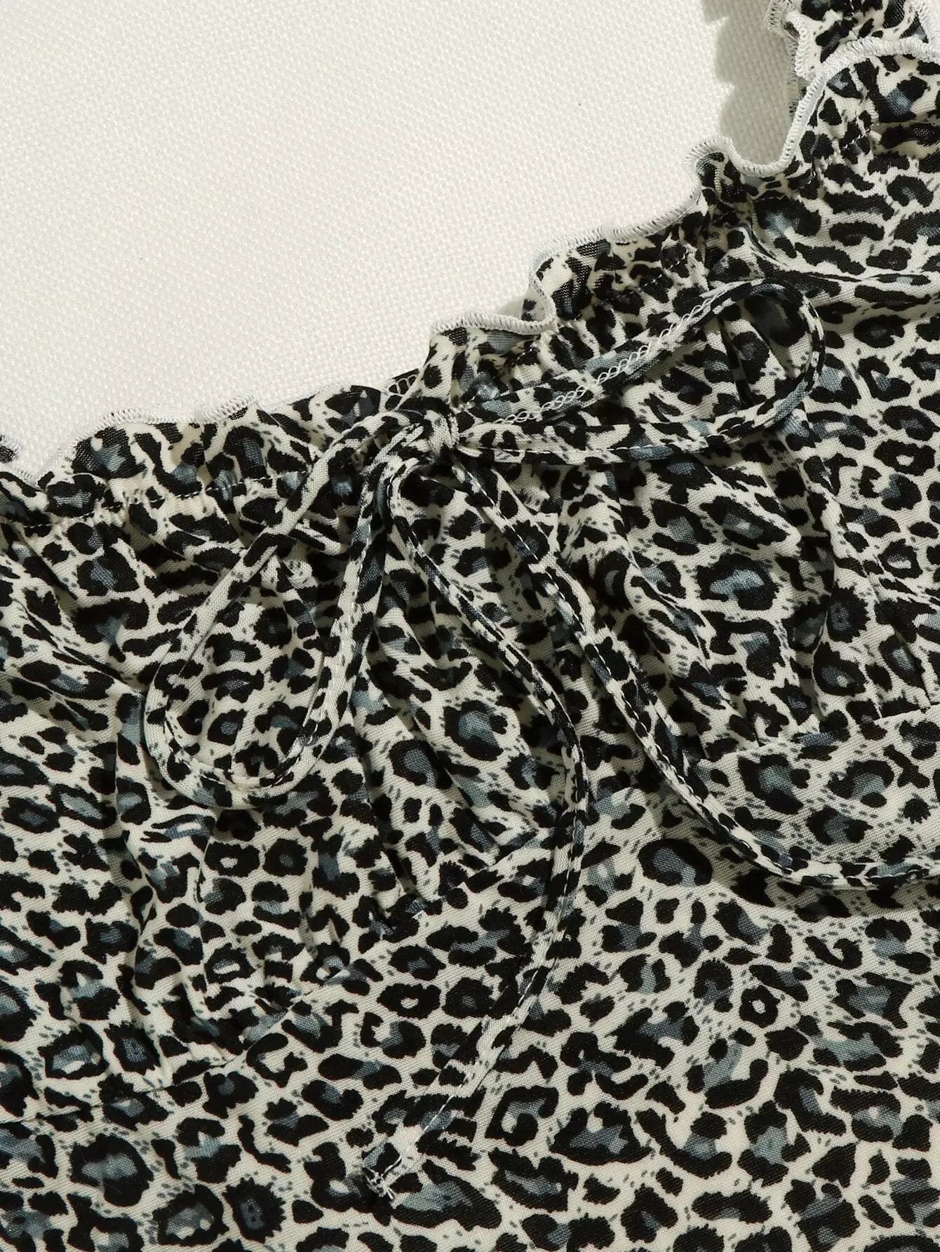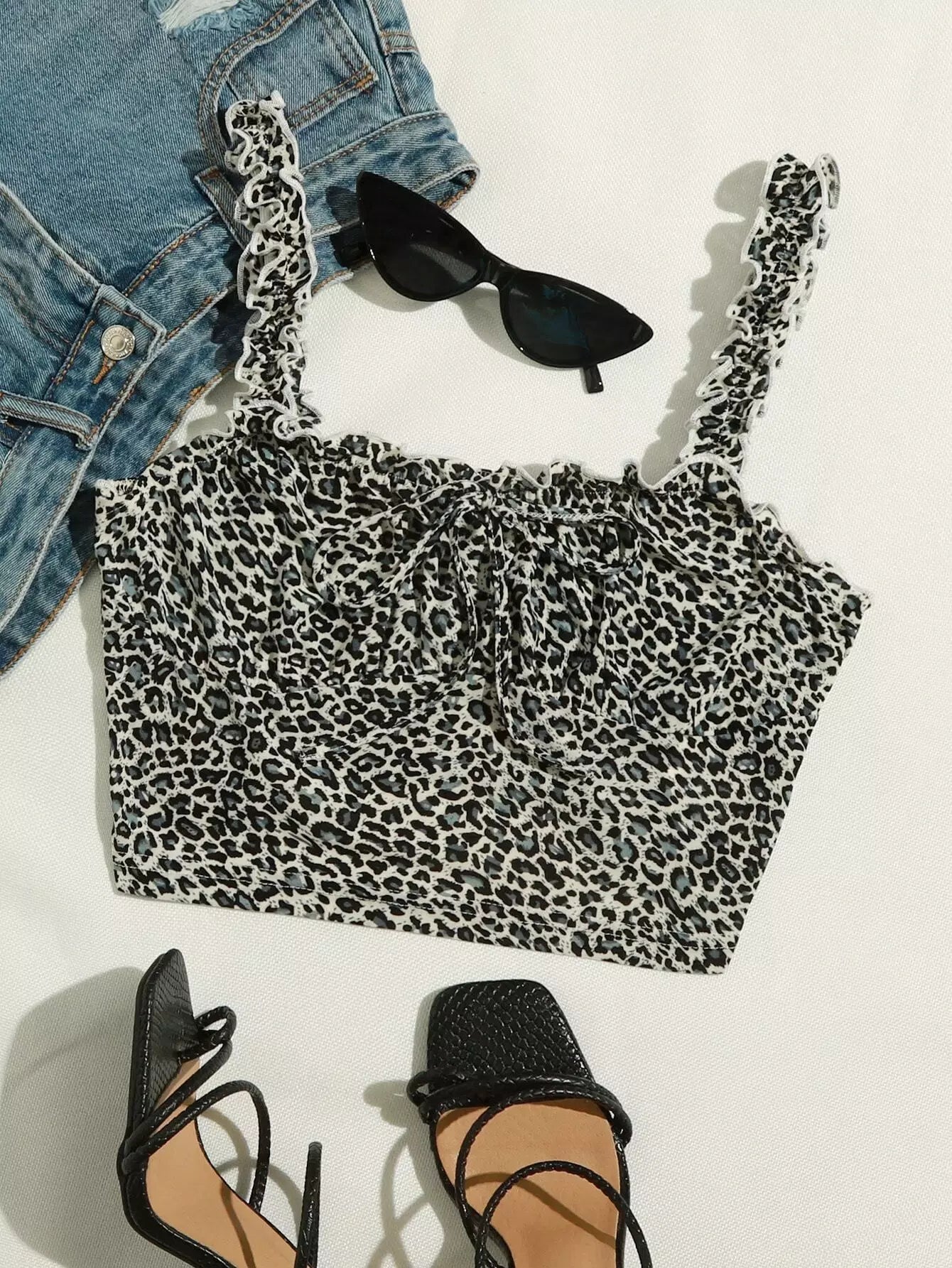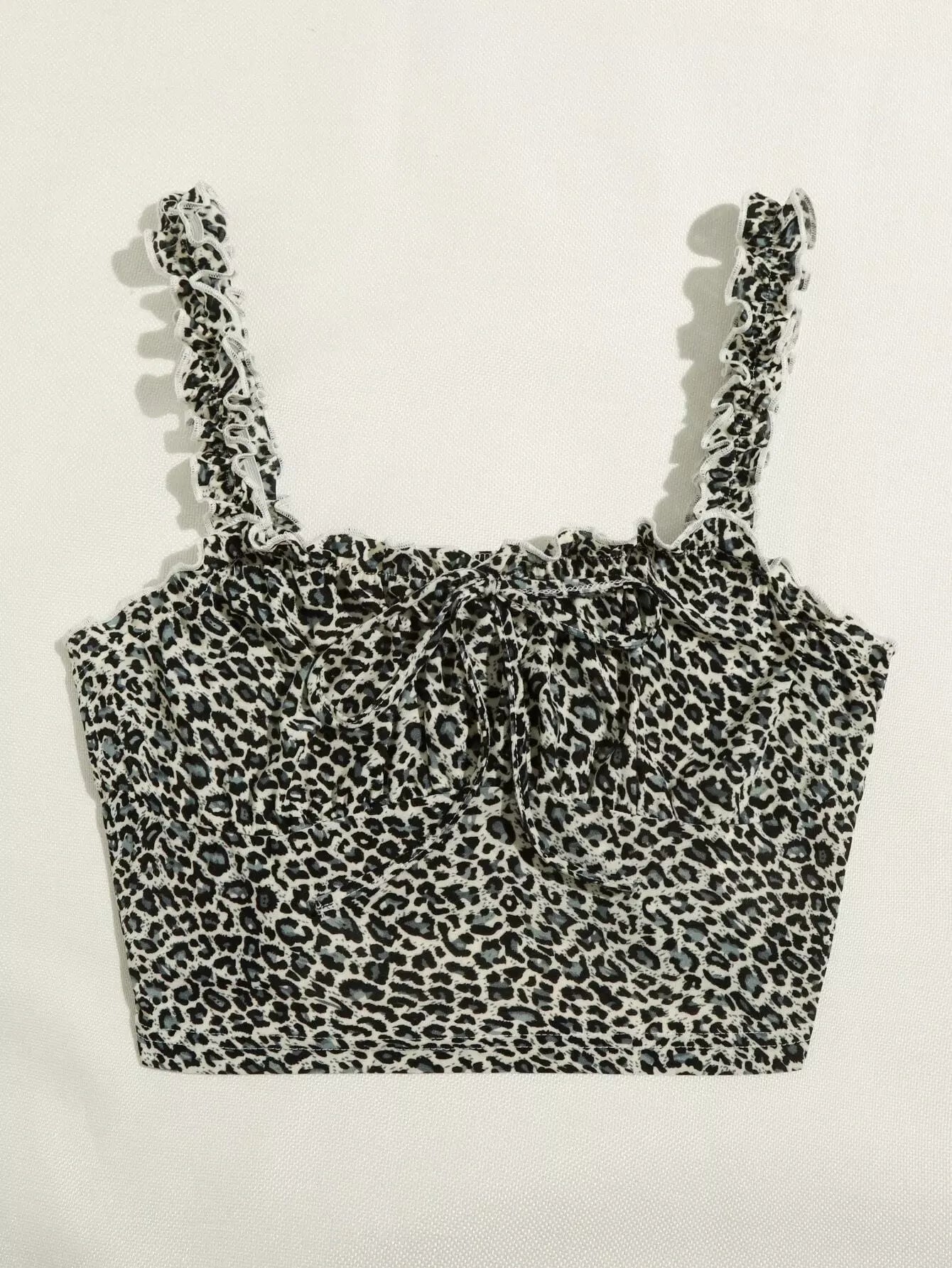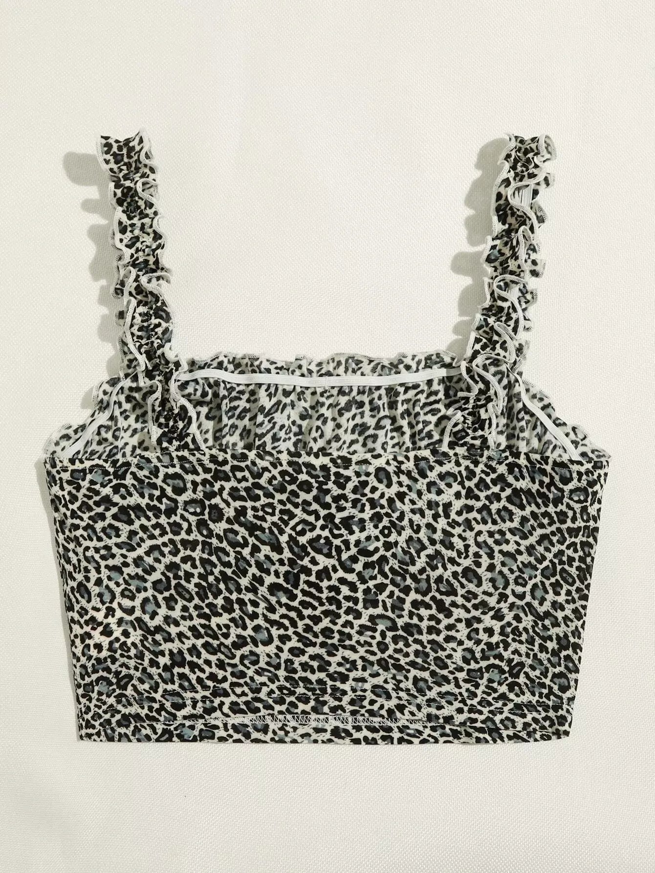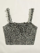 Frill Straps Ruched Bust Leopard Print Crop Top