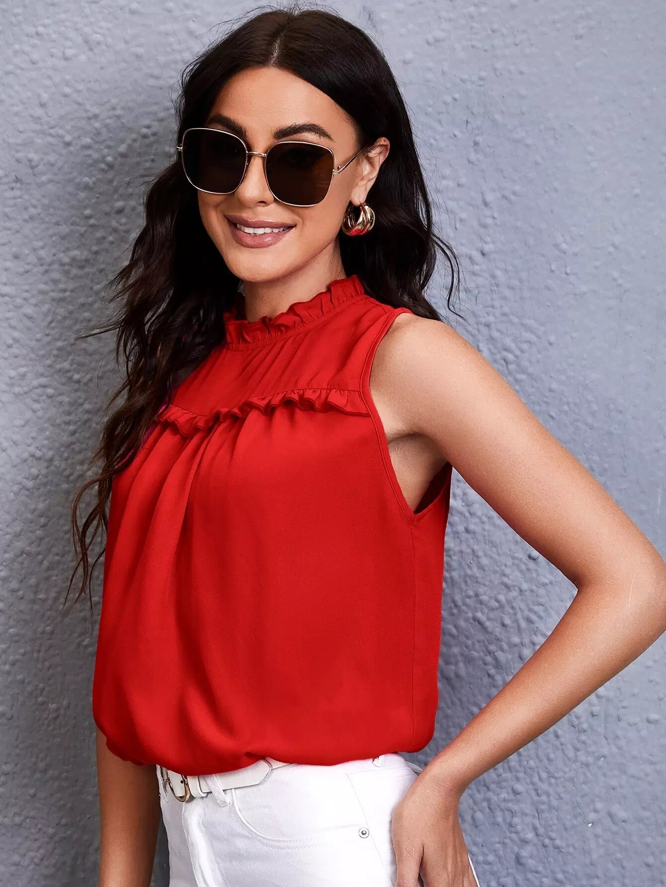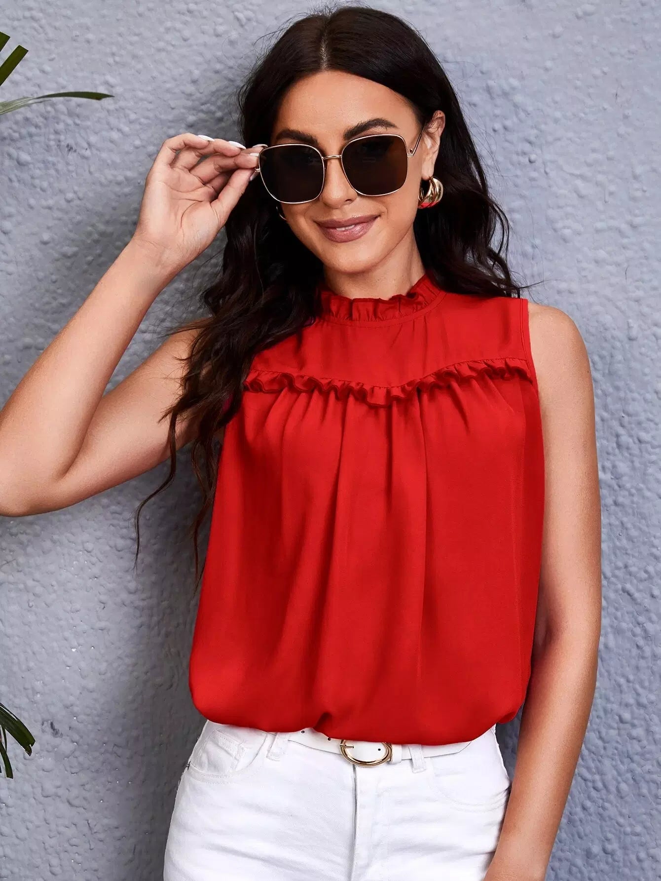 Frill Trim Plicated Tank Top